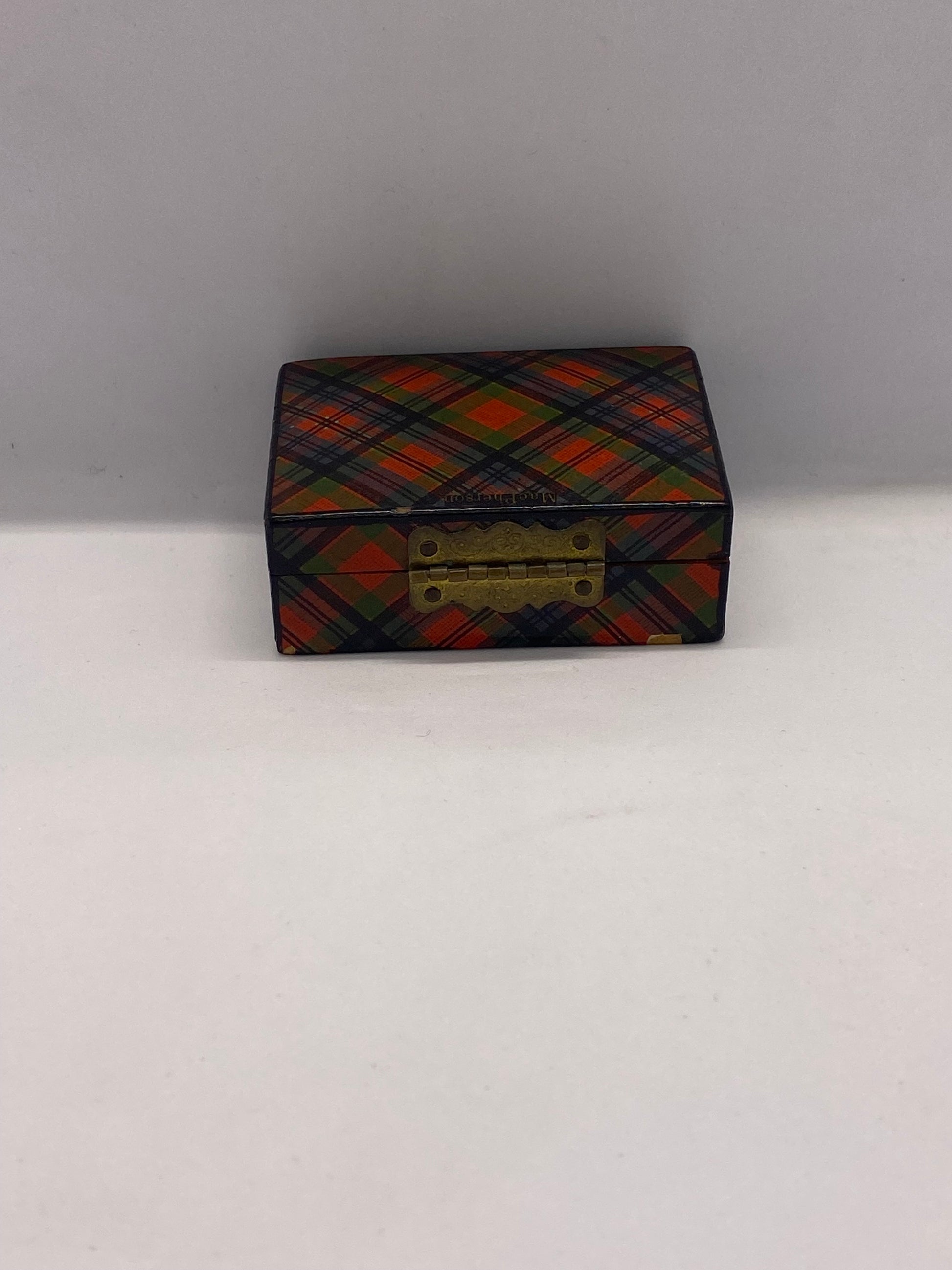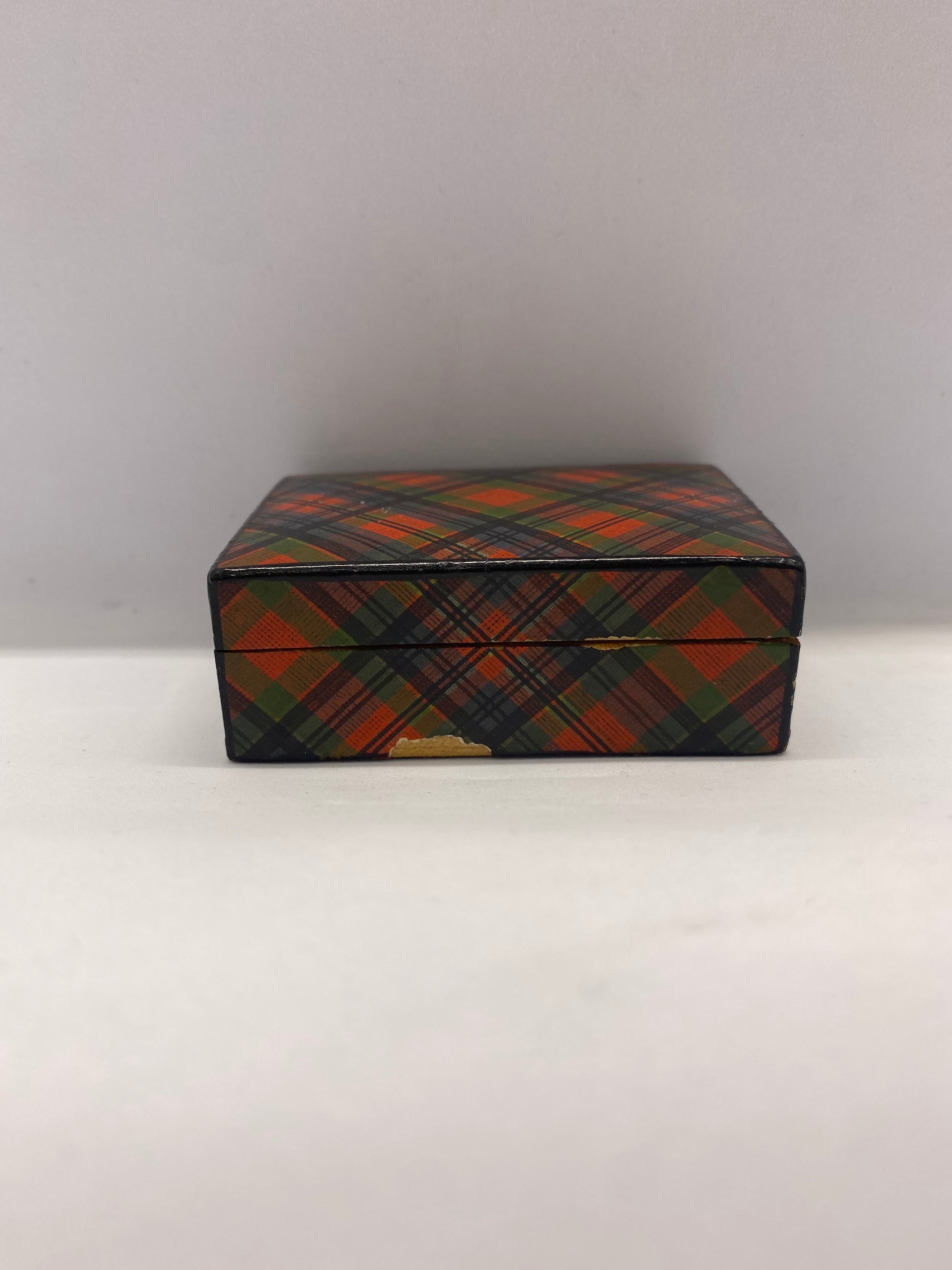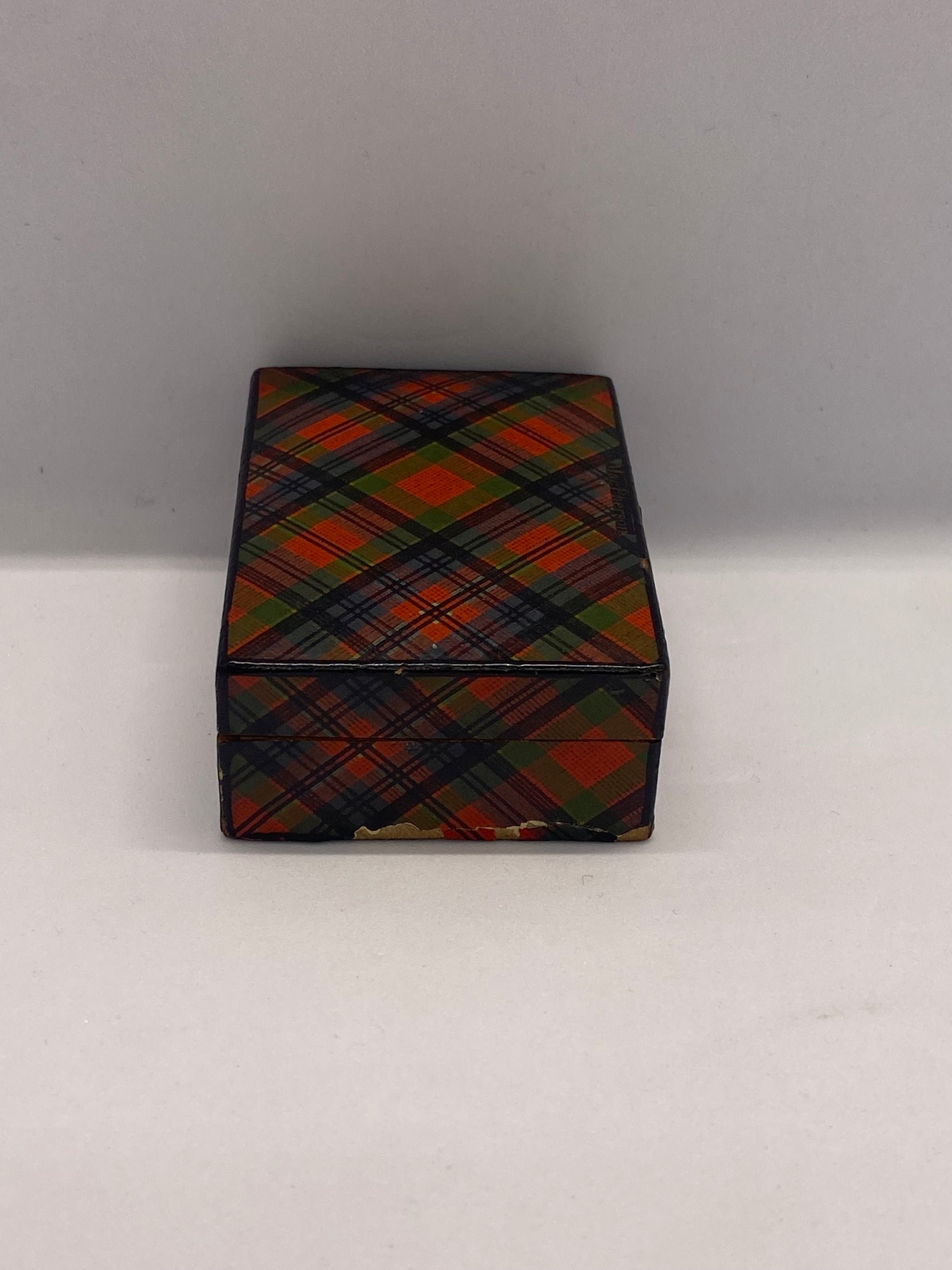 This late 19th century tartanware case is rather special piece with two compartments for stamps within.