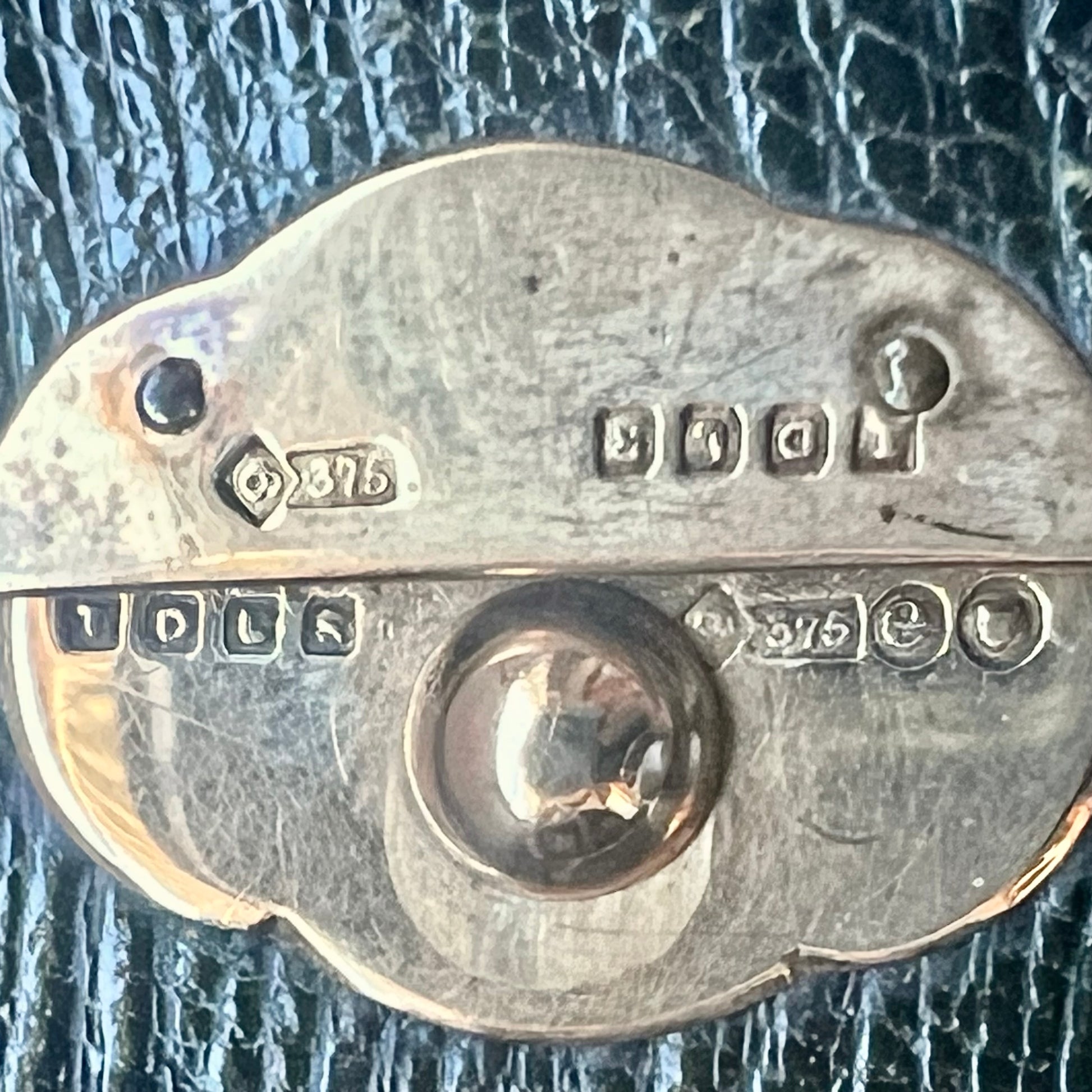Antique English leather bound address book with 9ct gold clasp and corner details, all hallmarked for London, 1900, Thomas de la Rue & Co.