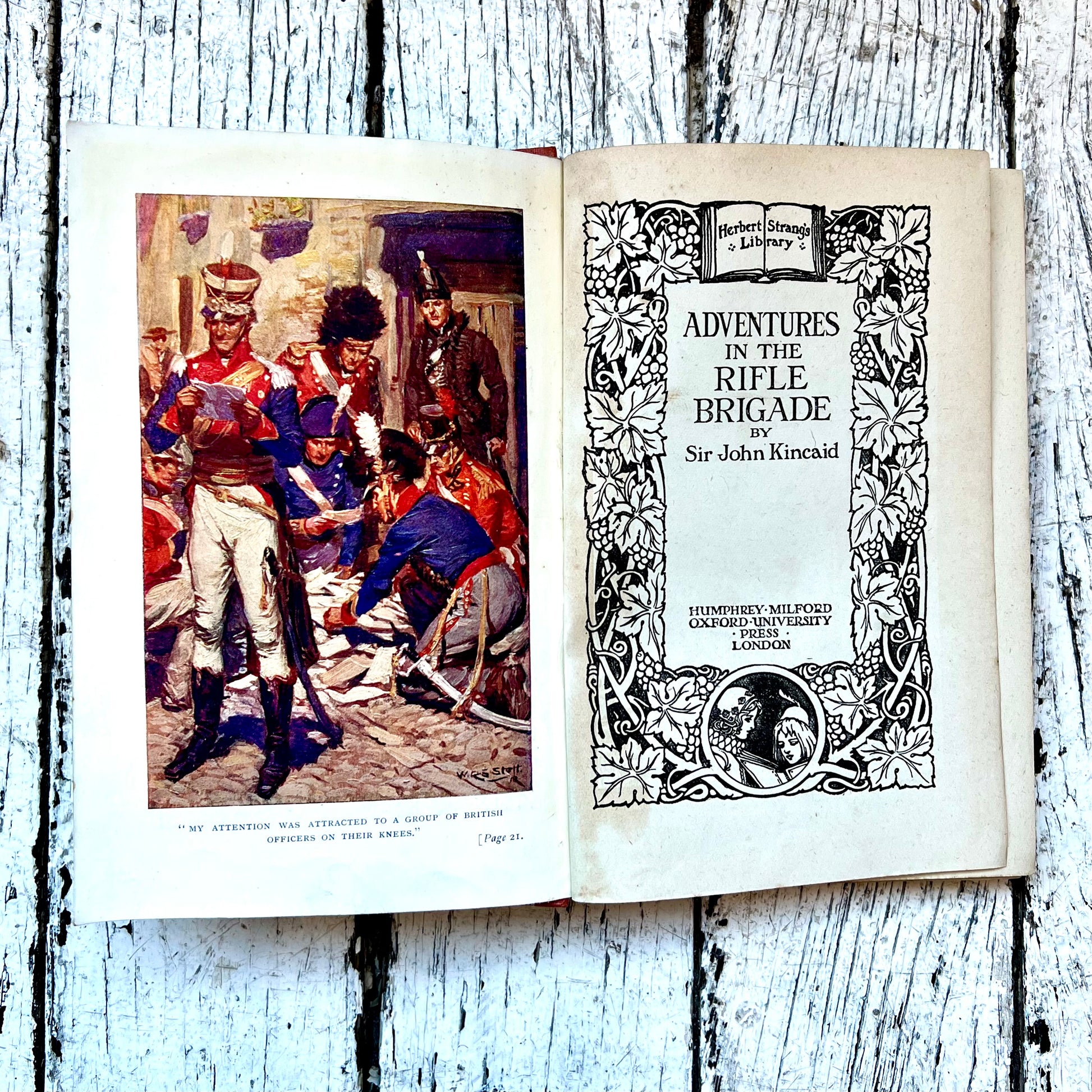 Antique hardcover “Adventures in the Rifle Brigade” book by Sir John Kincaid, Herbert Strang’s Library, 1919 edition.