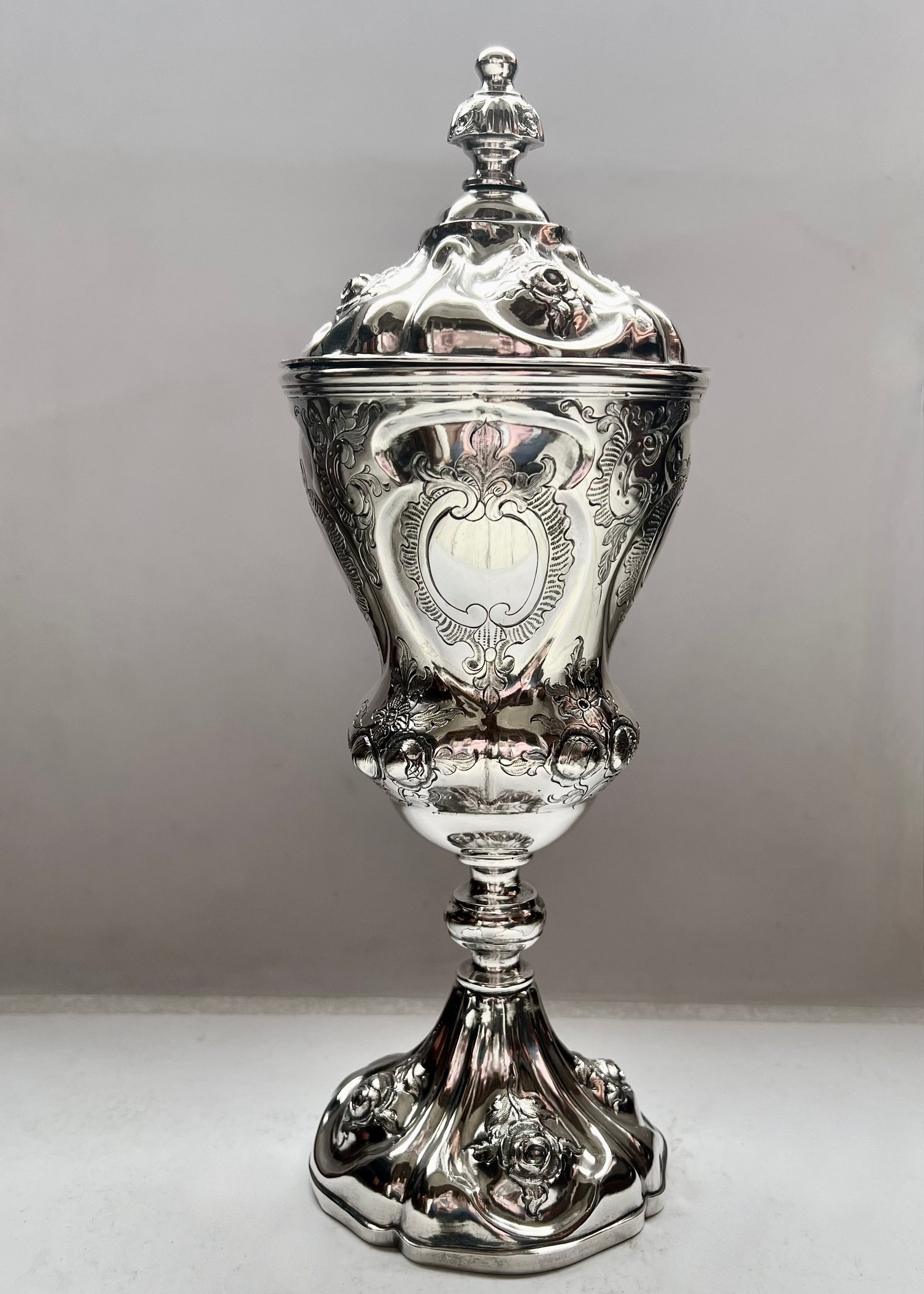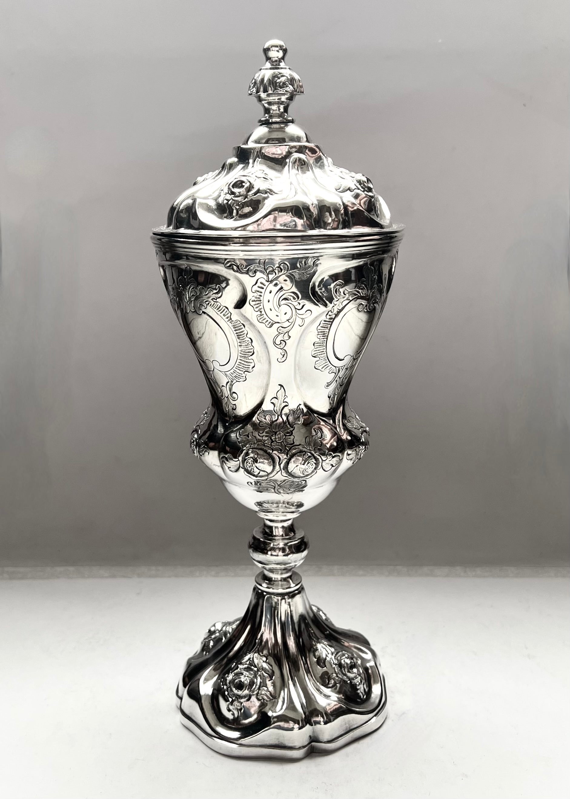 Antique Mid 19th Century Viennese .812 Silver Lidded Chalice Cup