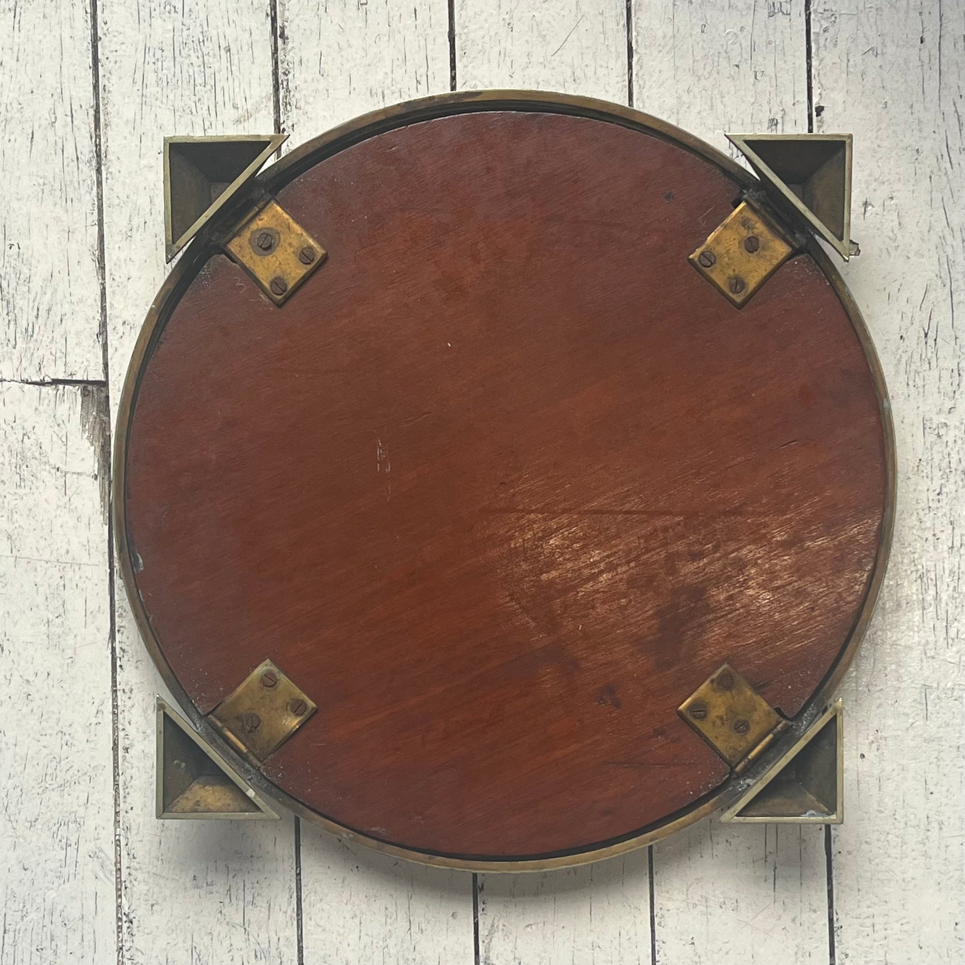 Rare Aesthetic Movement European mirrored plateau tray, circa late 19th century to turn of the century. Solid brass base with wooden backing to mirror. Beautiful chased pattern to the brass, this is a beautiful example of craftsmanship. All components, including mirror and threads, original to the piece and period.