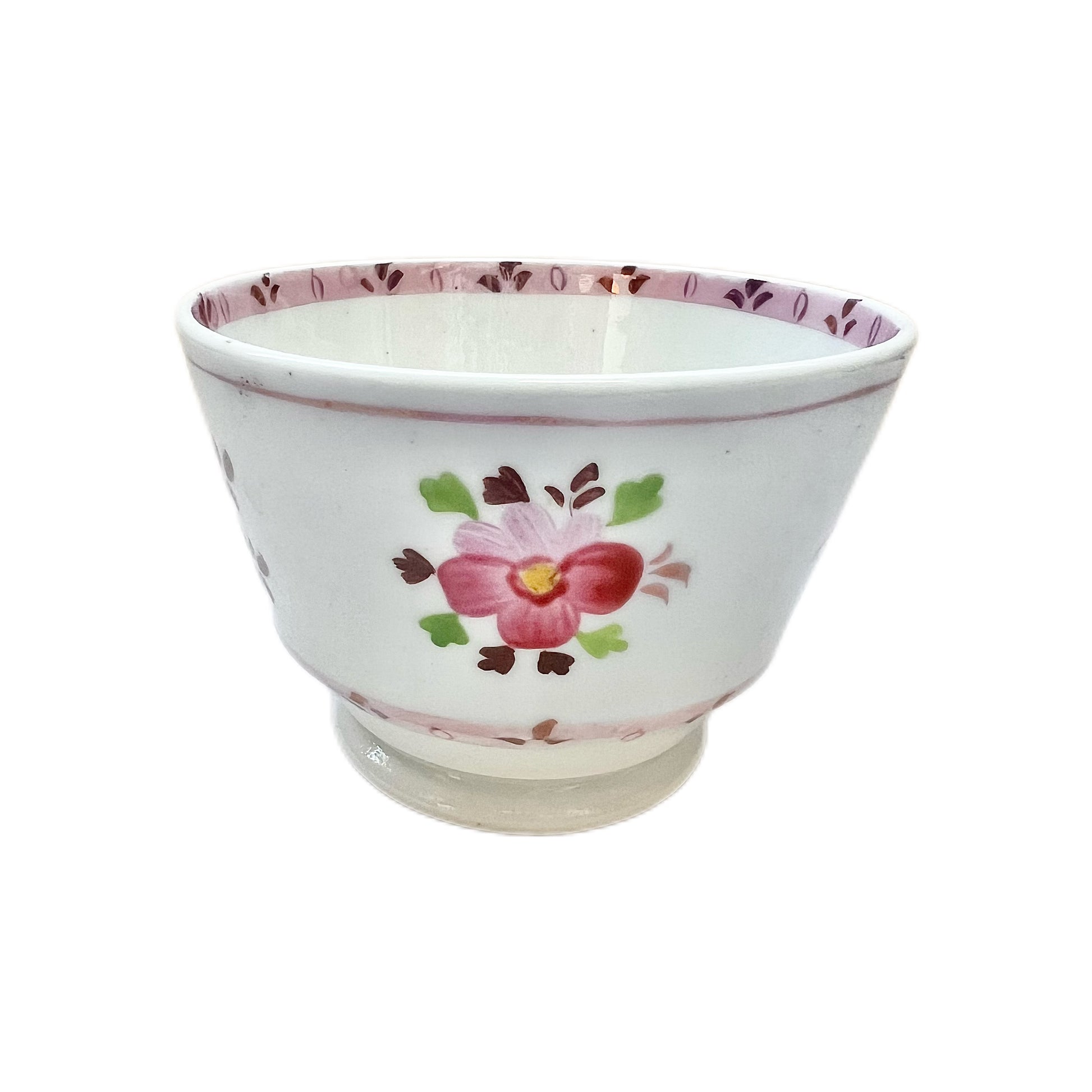 A beautiful early 19th century tea bowl and matching saucer circa 1810s-20s with floral motifs, Elegantly done with hand-painted florals throughout.