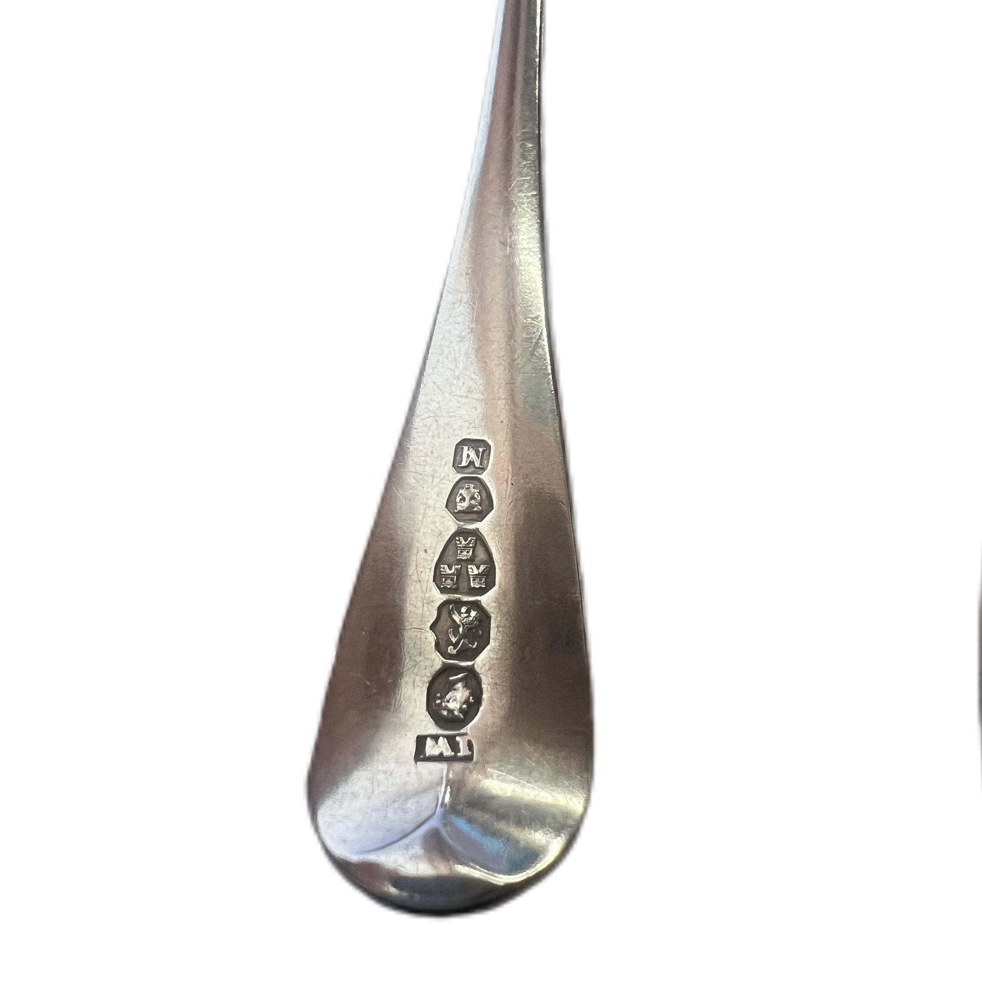 An elegant set of four 19th century Newcastle sterling silver teaspoons. One William IV teaspoon with marks for Newcastle, 1836. The other three Victorian teaspoons with marks for Newcastle, 1851. All four with marks for and made by John Walton. Active from 1821 to 1866, his premises were in Painter Heugh, Newcastle. All engraved with the letter ’N” to handle in script of the period.
