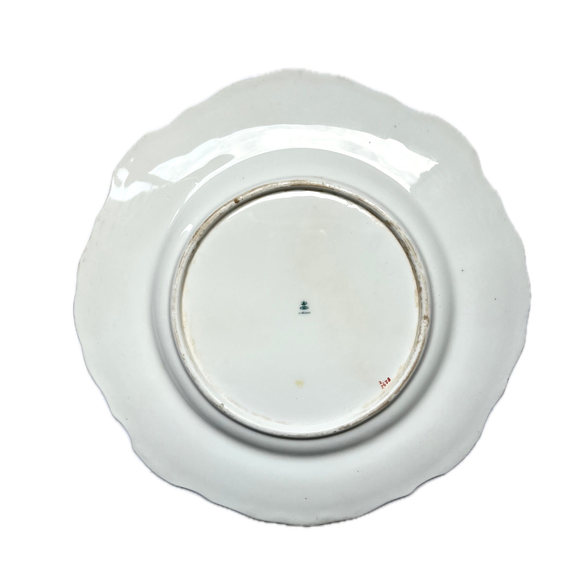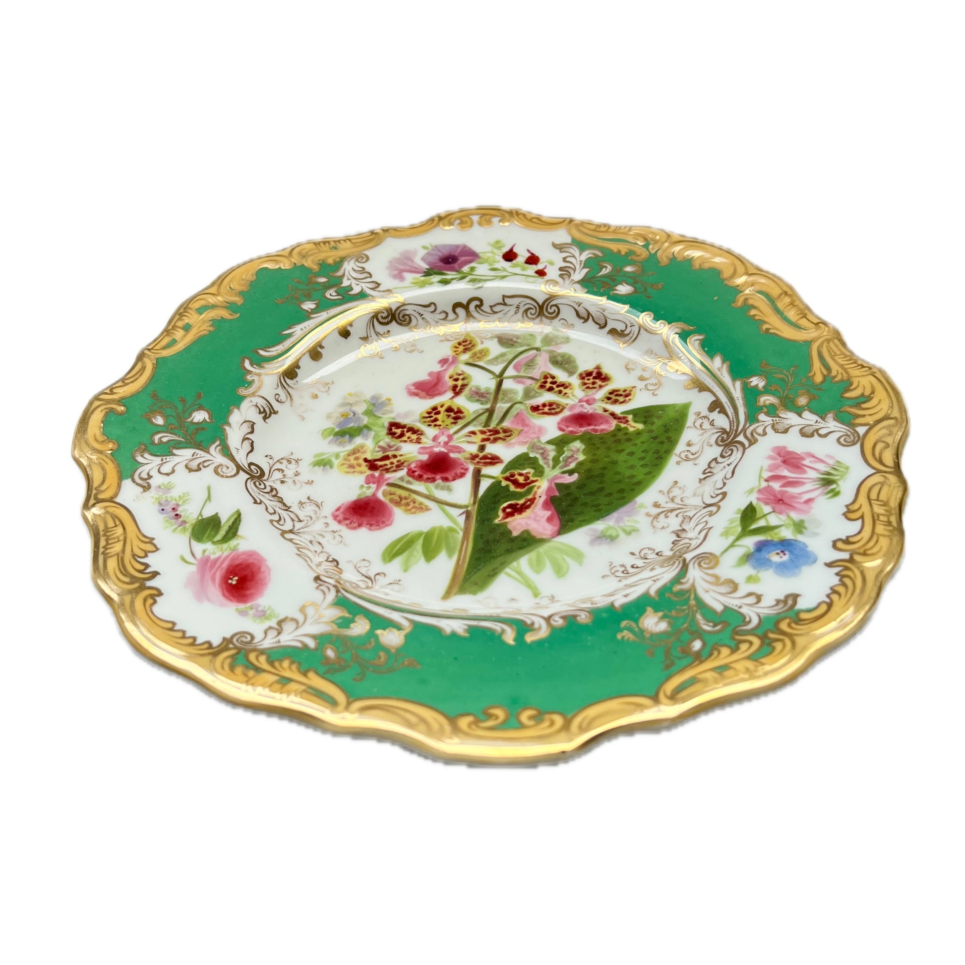 Lovely late 19th century Copeland porcelain handpainted plate, executed in a Rockingham style manner. This trend, popular in High Victorian times, was known for its extravagant Rococo-inspired flourishes. This particular plate has a handpainted central motifs of orchids. Early Copeland mark to the base which was used circa 1851 to 1867