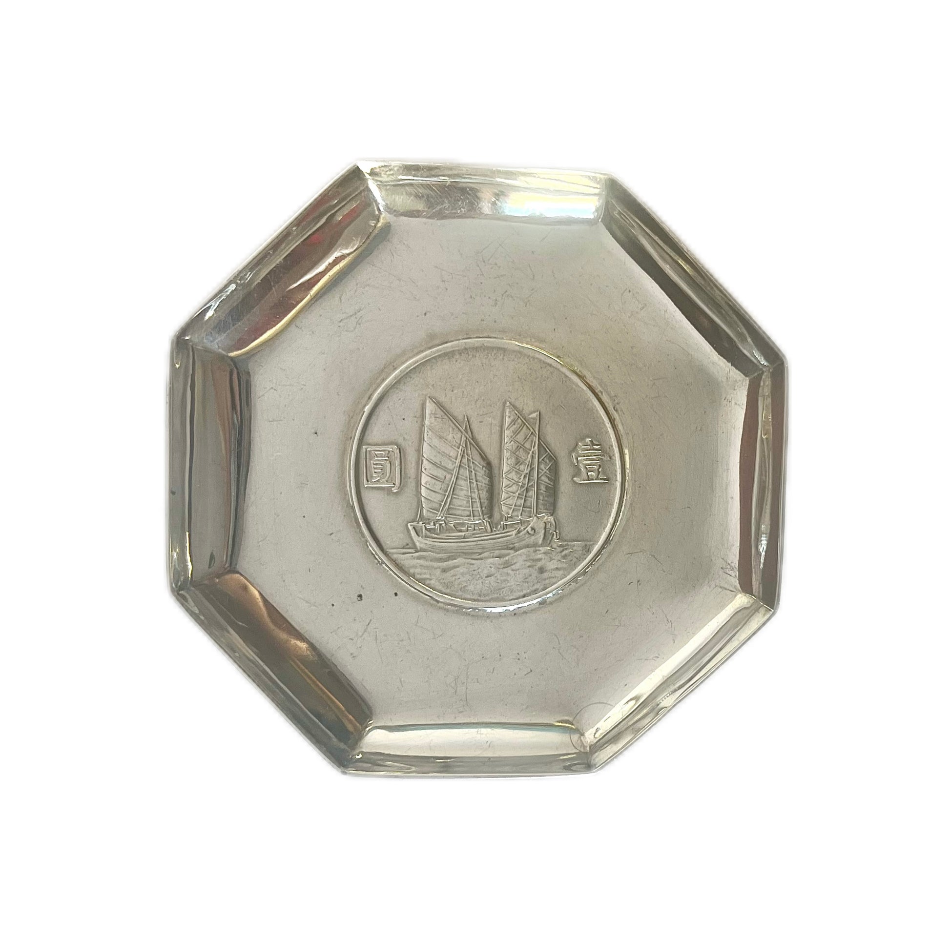Near antique Chinese export silver 1933 'Junk Dollar' trinket dish