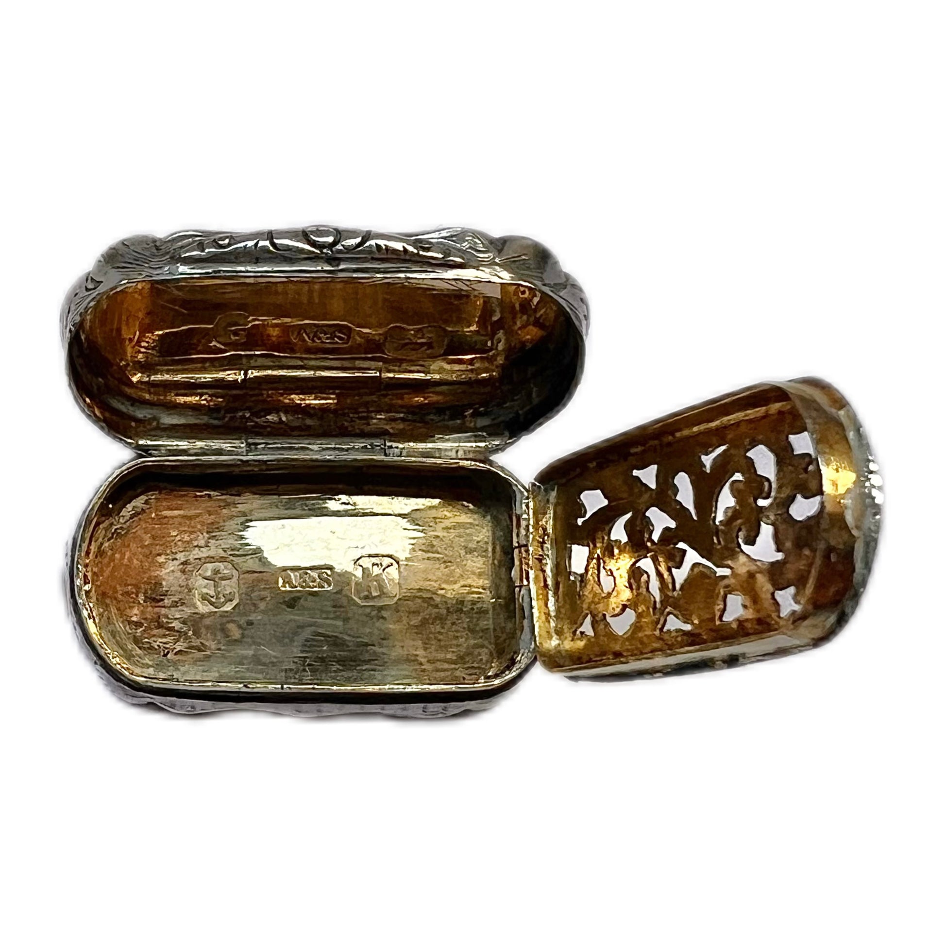 Sterling silver High Victorian vinaigrette with marks for Aston & Son, Birmingham, 1859.