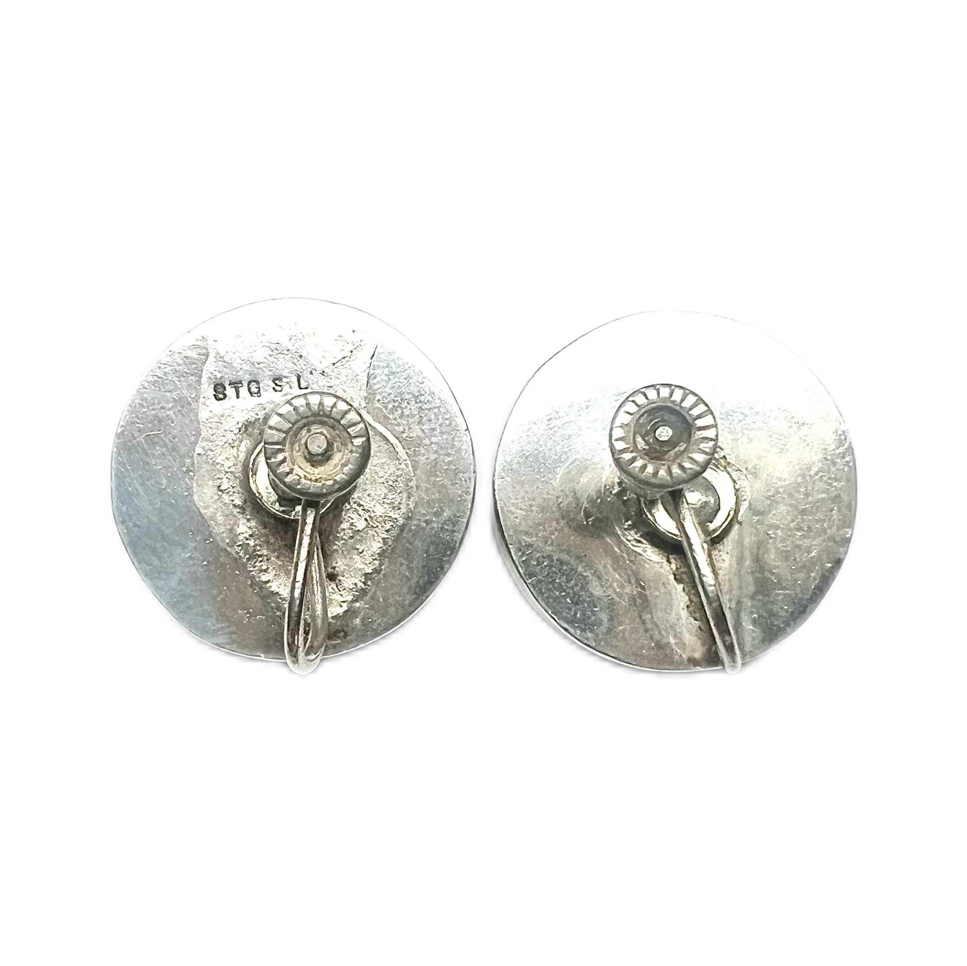 Vintage Japanese Satsuma porcelain and sterling silver screw back earrings