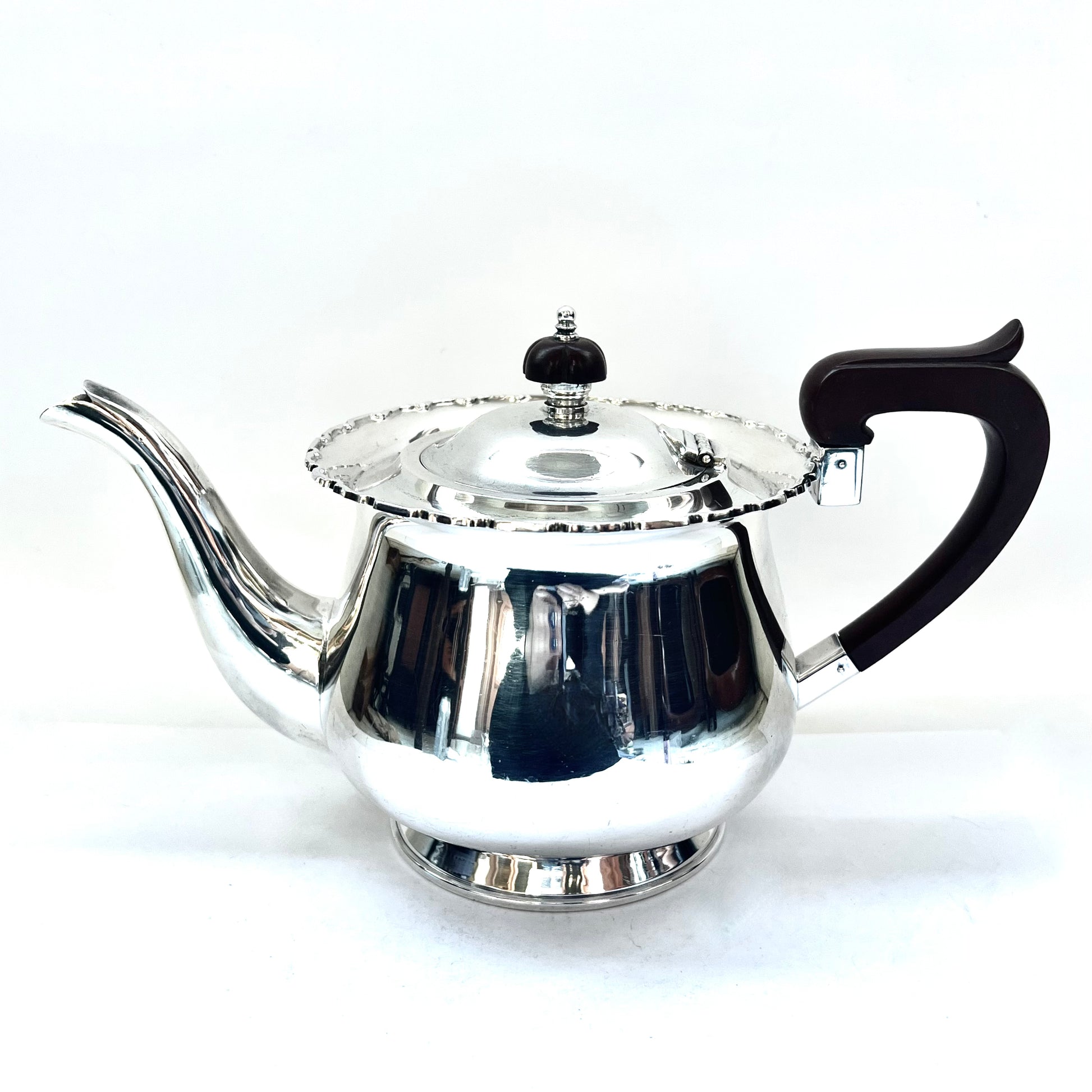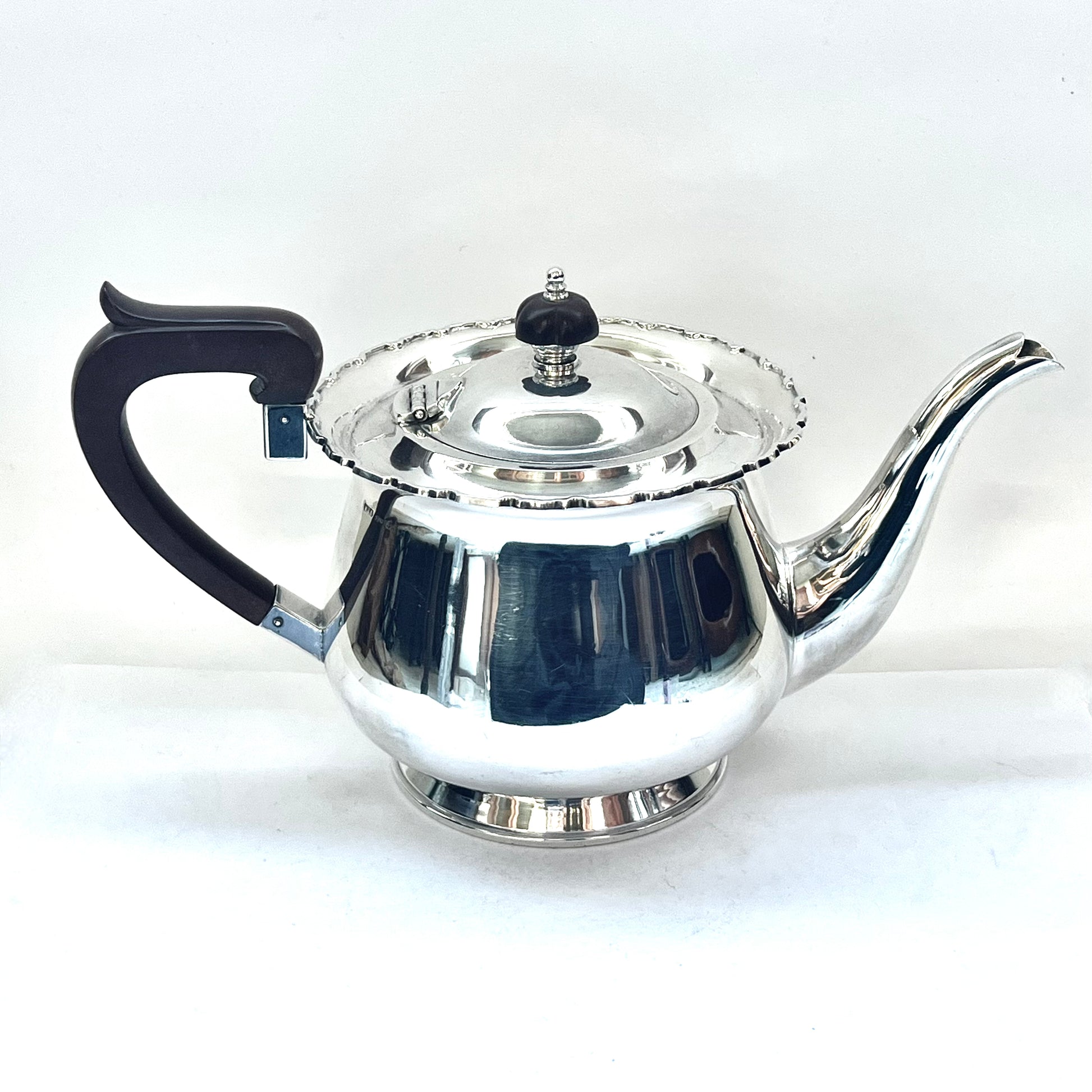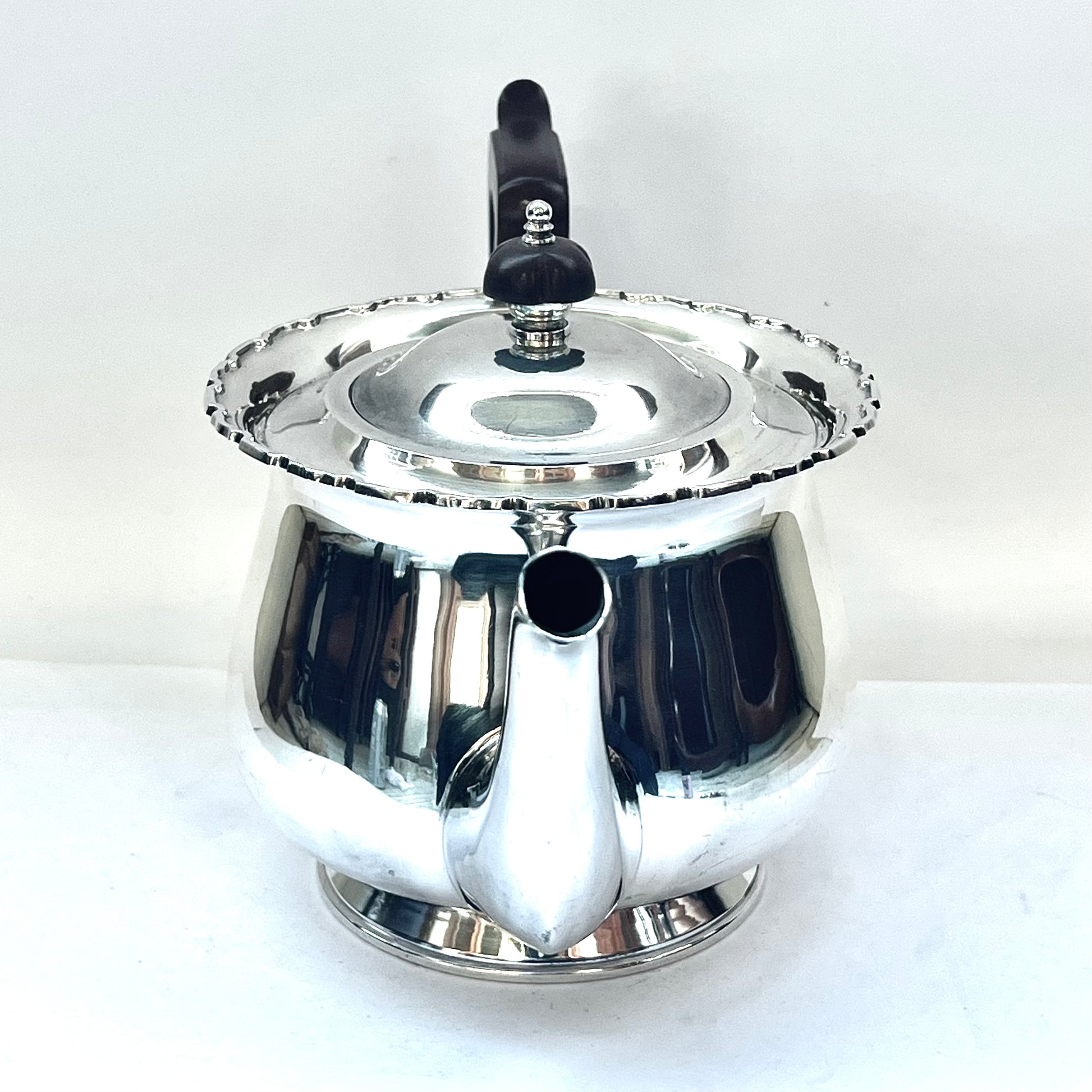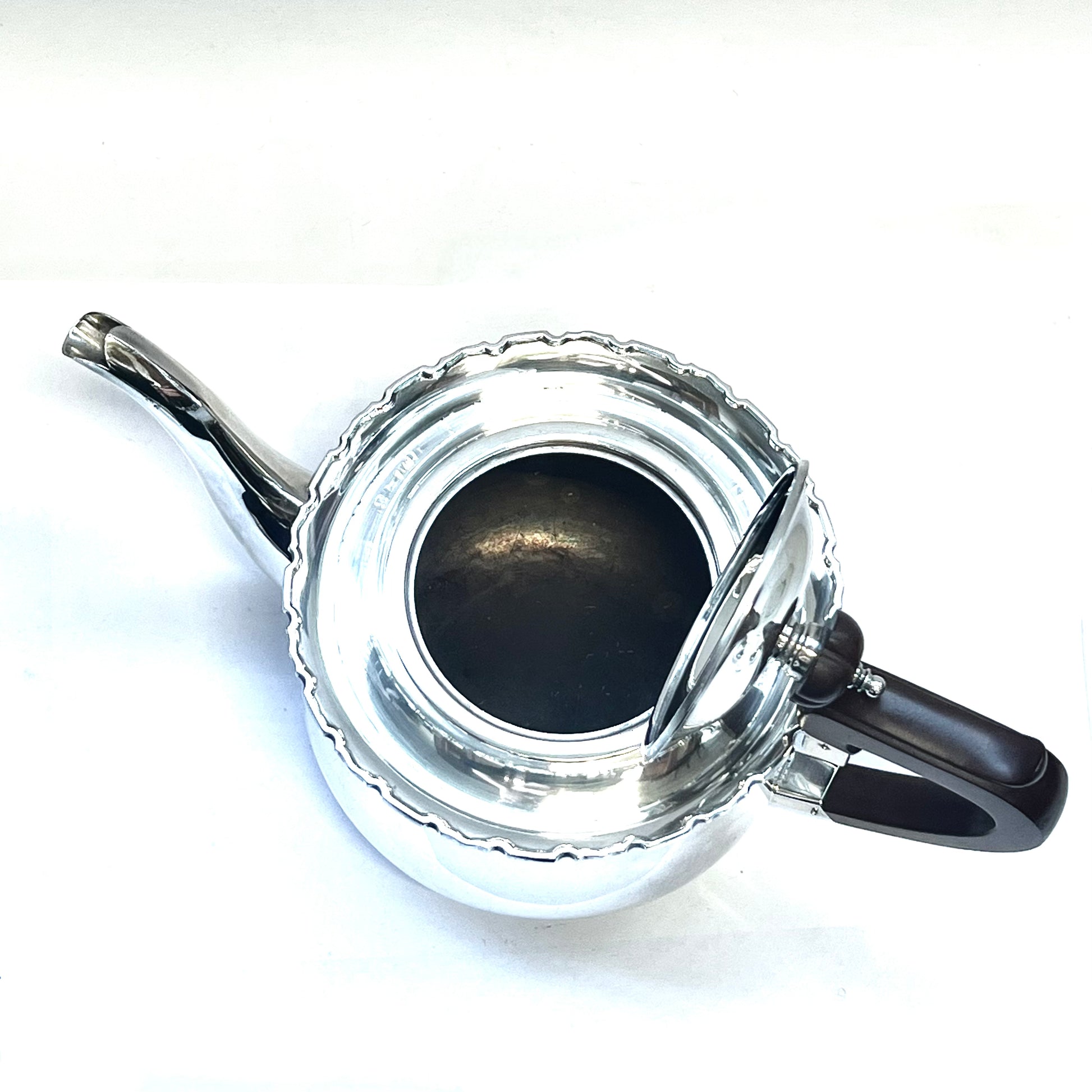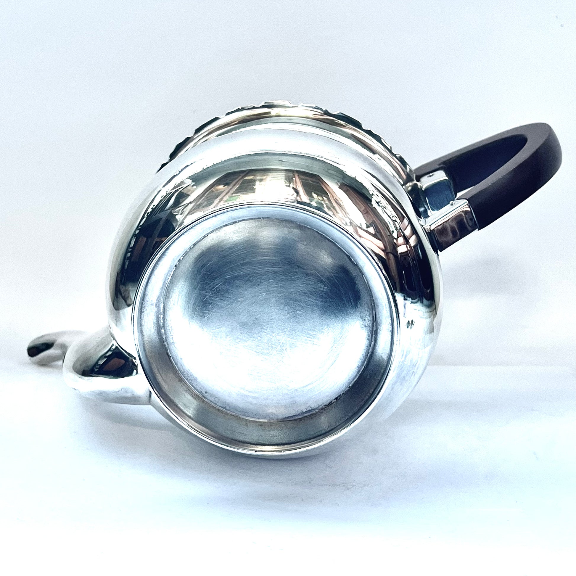 Tetera australiana de plata esterlina WJ Sanders de la década de 1930 con remate y asas Art Decó, probablemente de baquelita.