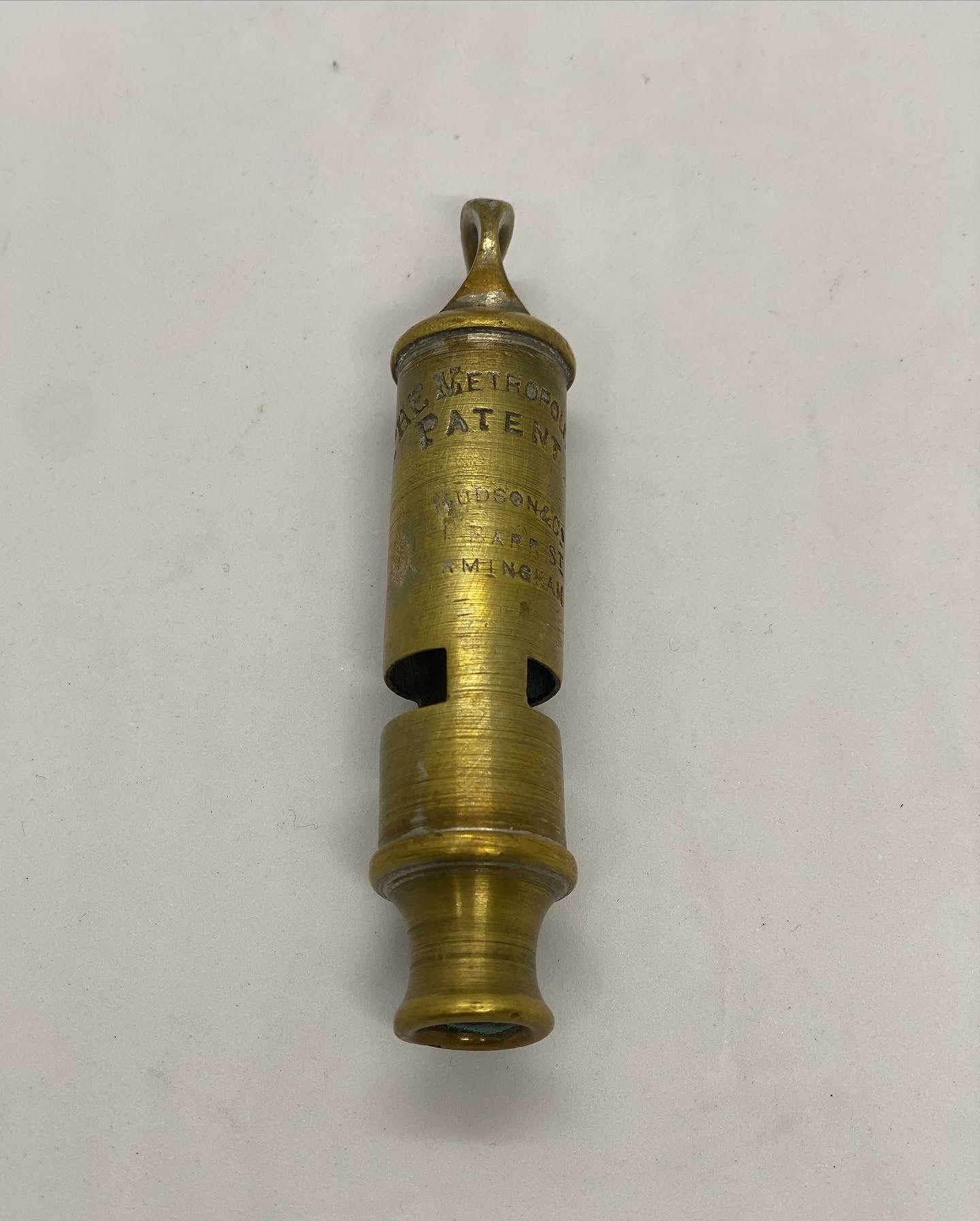 Silbato antiguo inglés de latón “The Metropolitan” de J Hudson and Co
