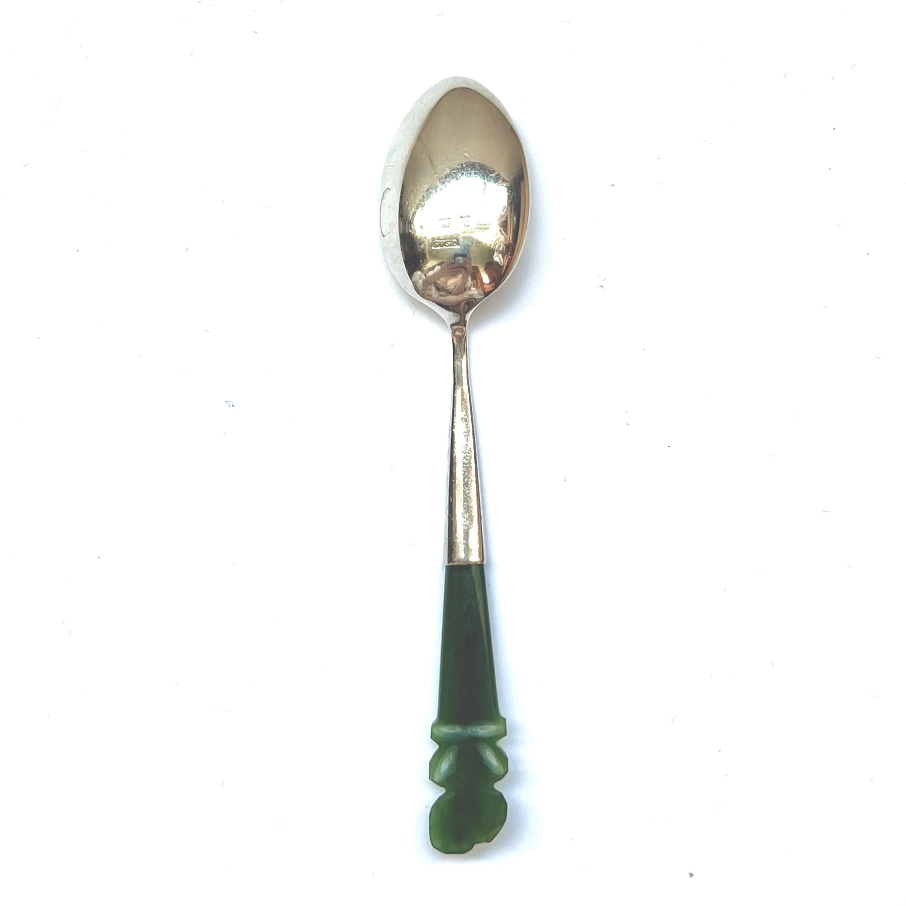 Cuchara de té antigua de plata esterlina y nefrita de Nueva Zelanda, marcas de Birmingham, James Swann & Son