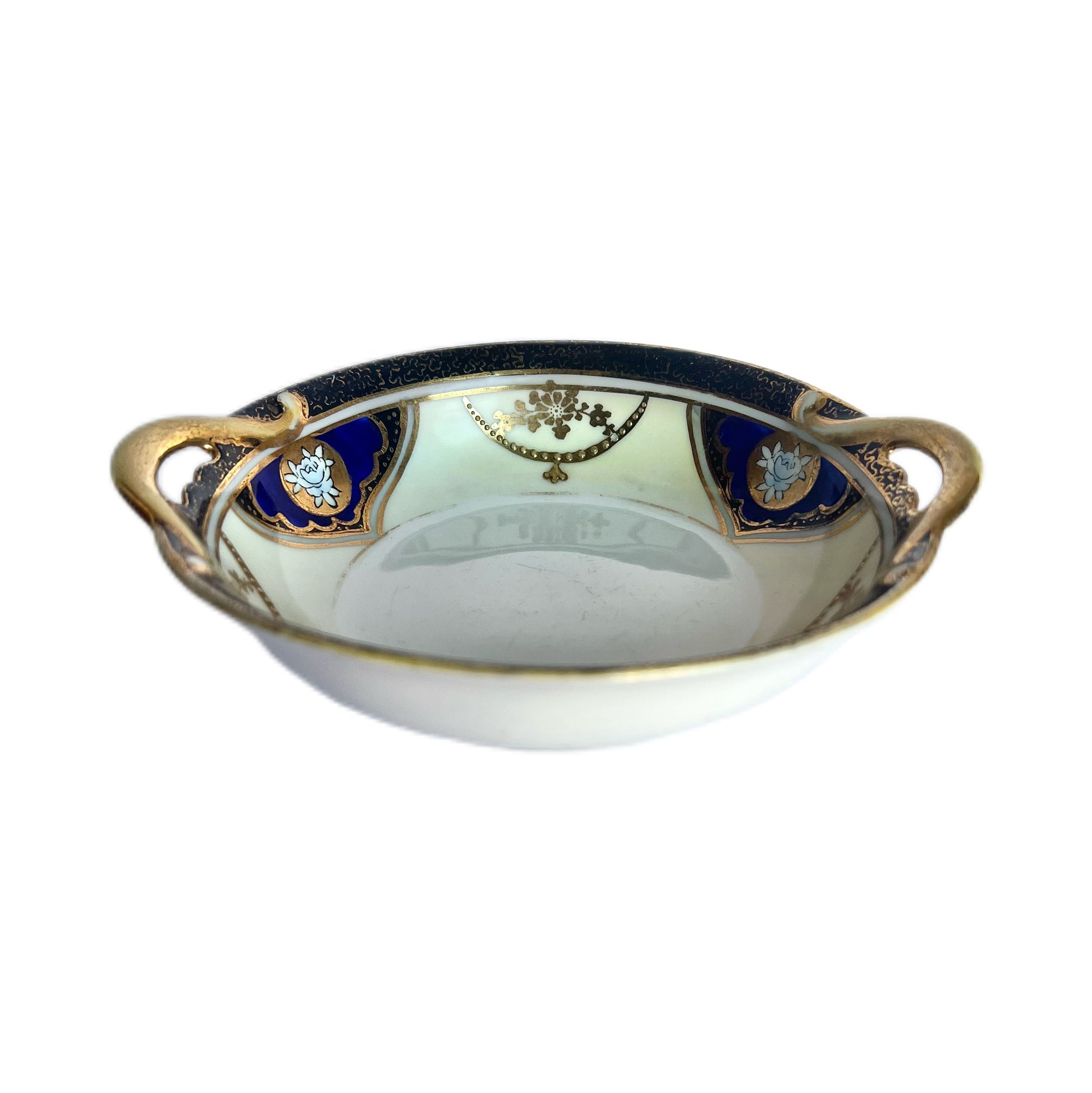 Antique Noritake cobalt and gold porcelain nappy dish