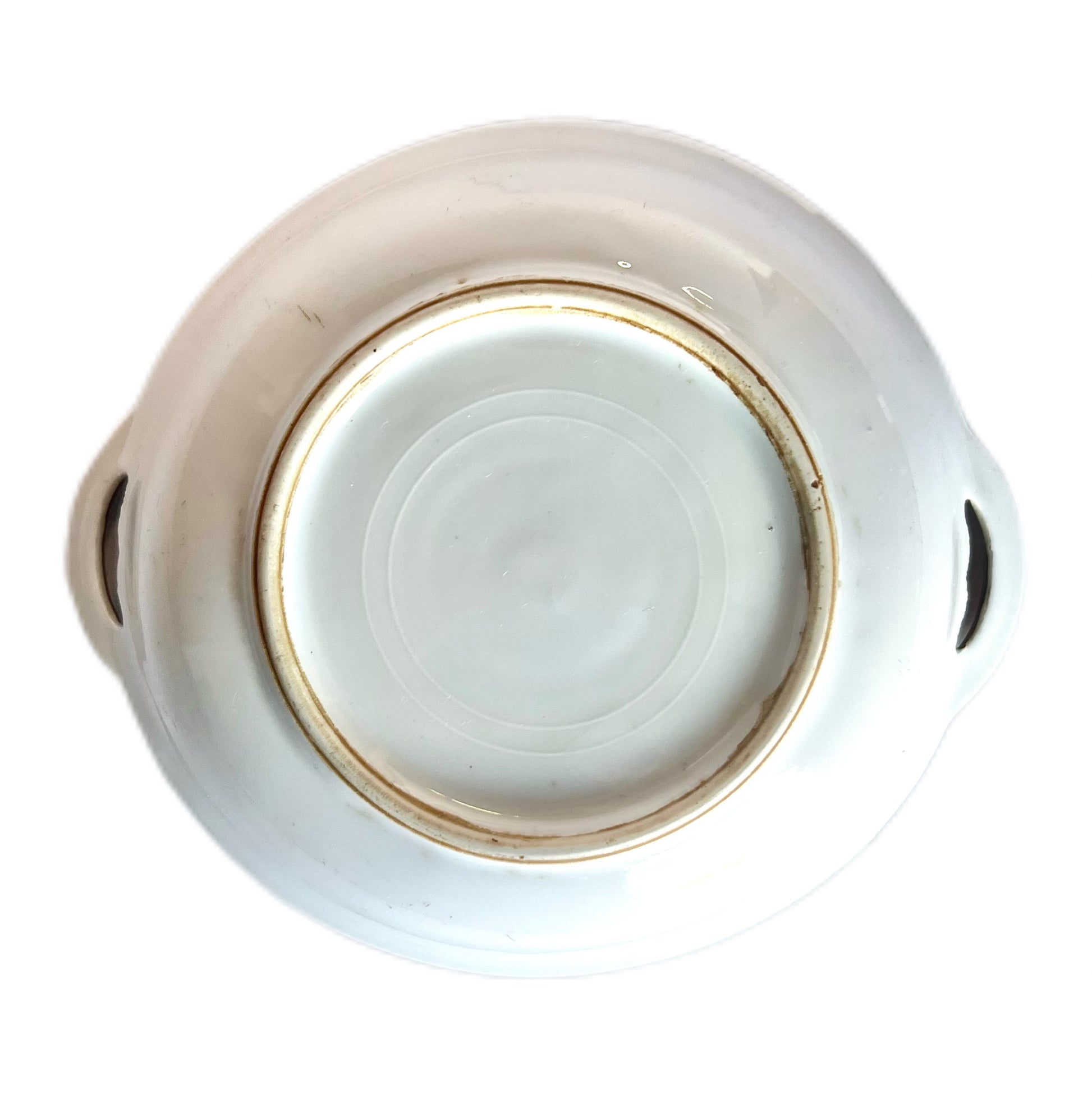 A beautiful antique Noritake cobalt and gold nappy dish, circa 1910 to 1920. Beautifully hand-painted with gilt and cobalt details. Secessionist-inspired details such as the handles indicate the quality and modern outlook, particularly at the time, that Noritake is known for.