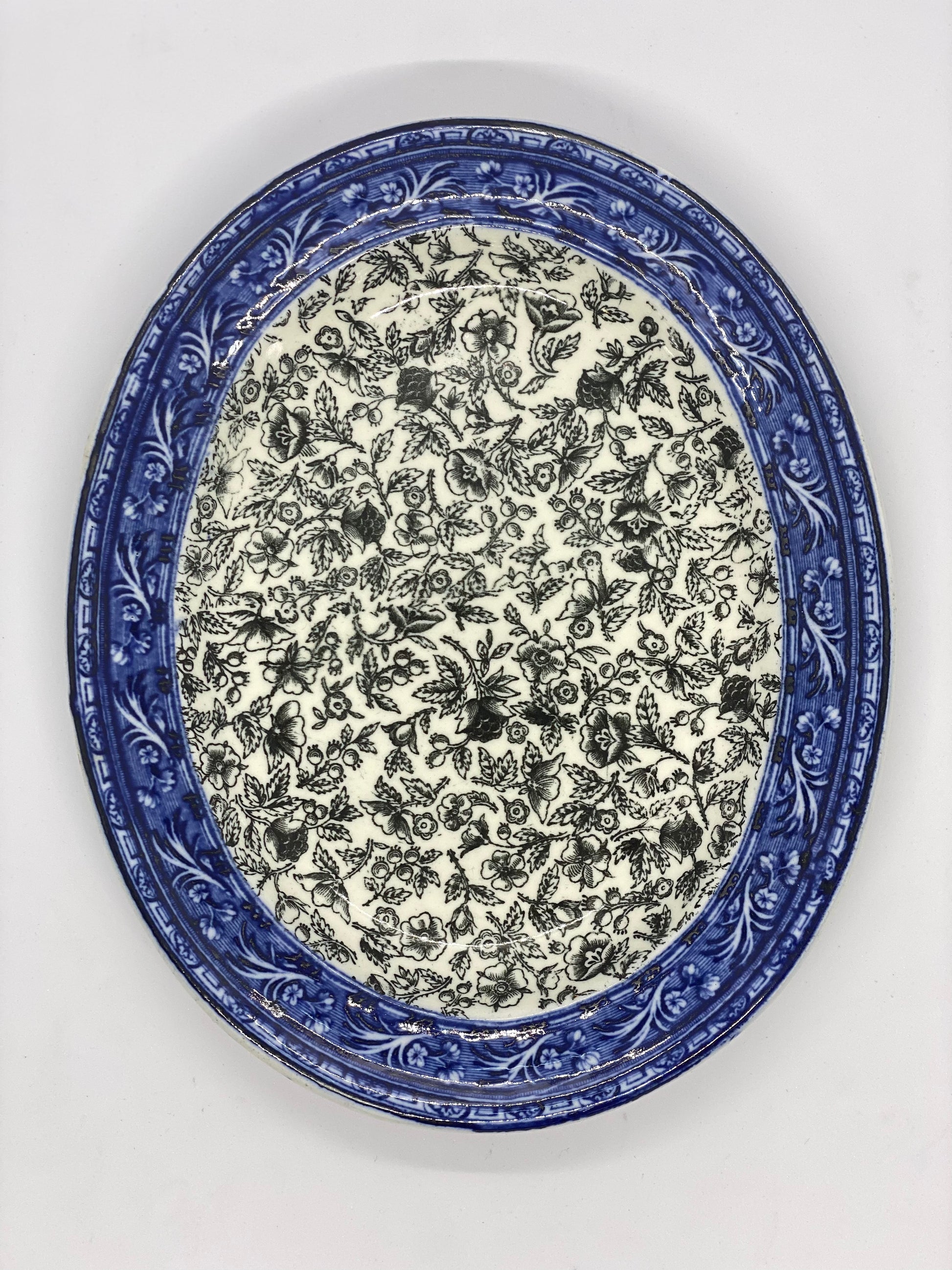 #1 - Bandeja antigua Wedgwood con un inusual estampado de cachemira índigo y negro