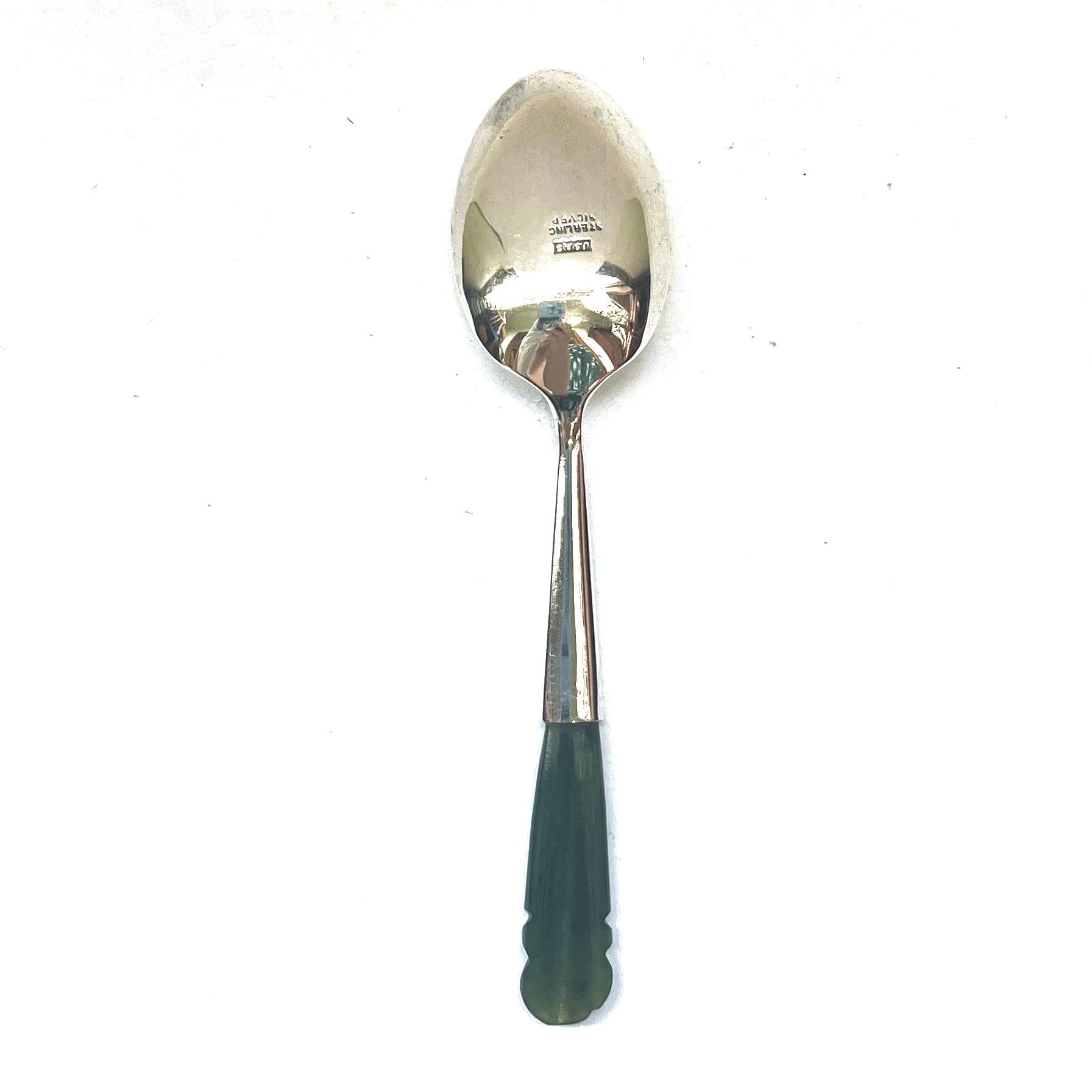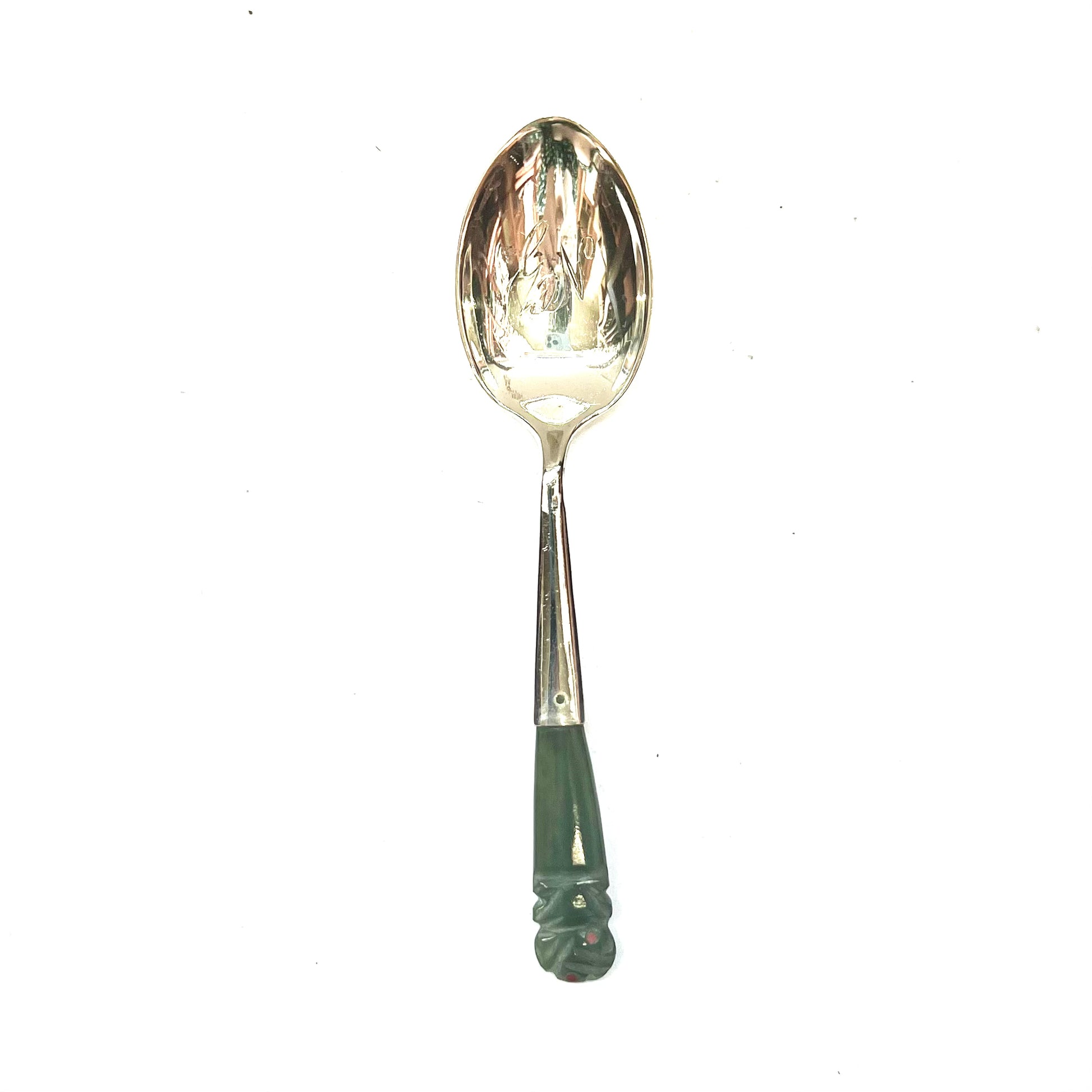 Cuchara de recuerdo antigua de Nueva Zelanda en plata esterlina y jade nefrita, Joseph Swindell & Son, Christchurch