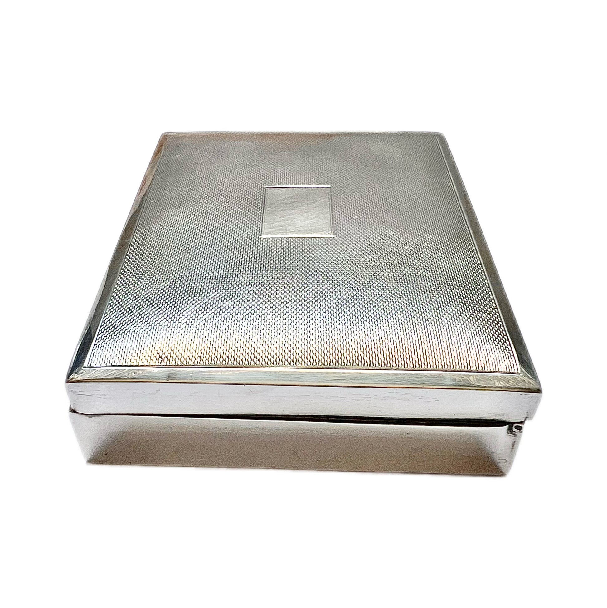Caja de cigarrillos Hardy Bros de mediados de siglo con revestimiento de madera y plata esterlina