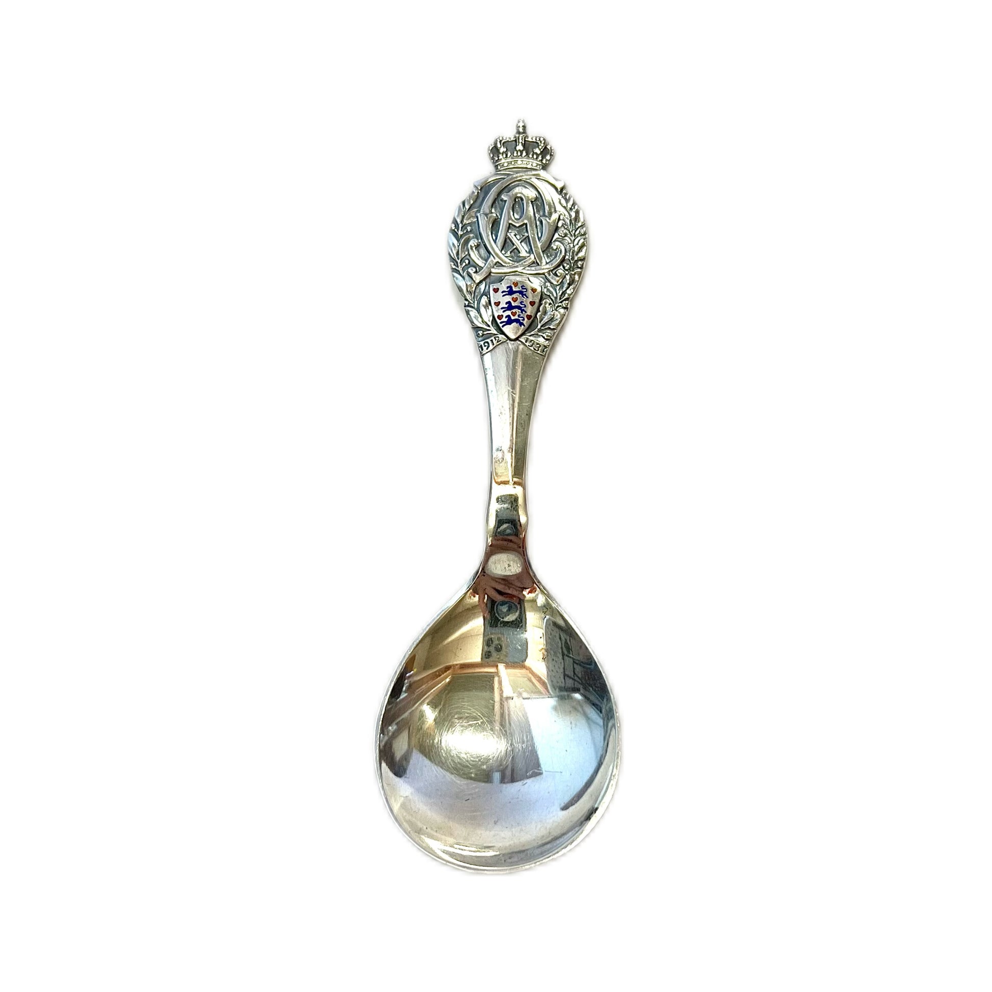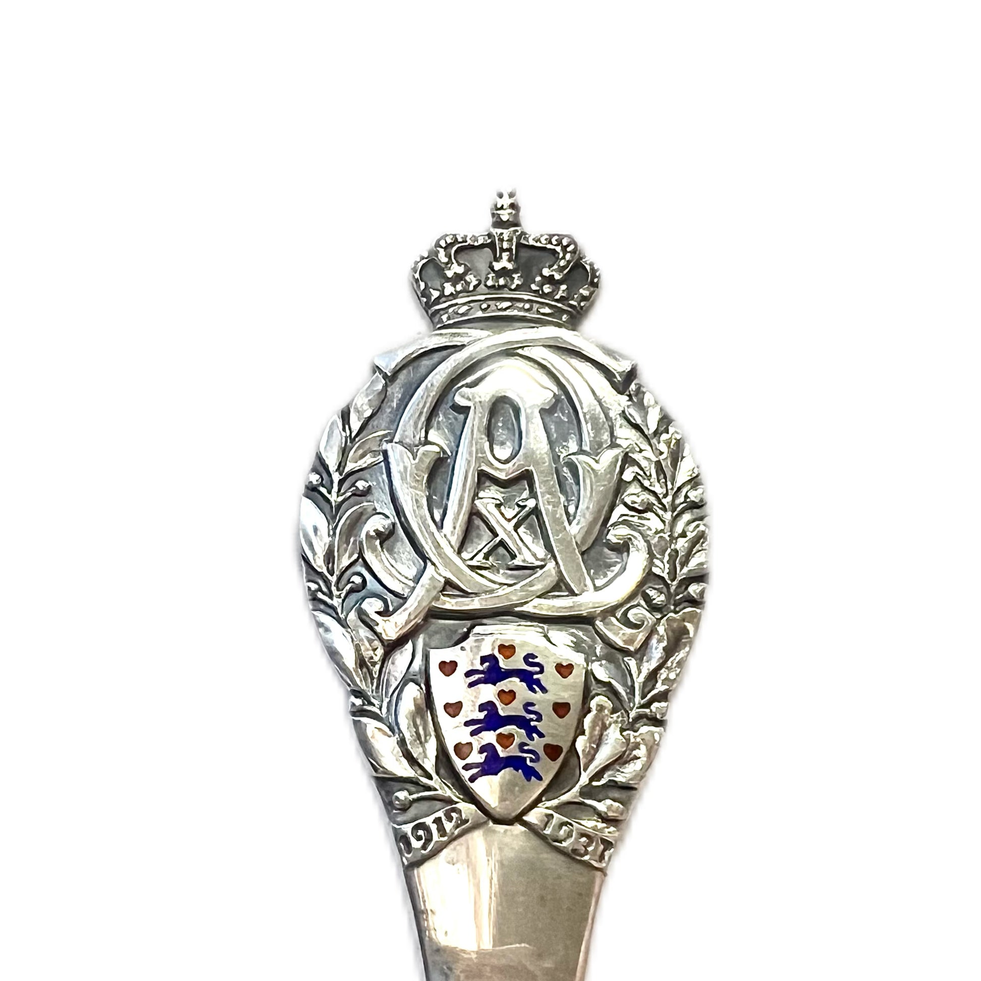 Vintage Danish King Christian X Silver Jubilee teaspoon, .830 silver and enamel