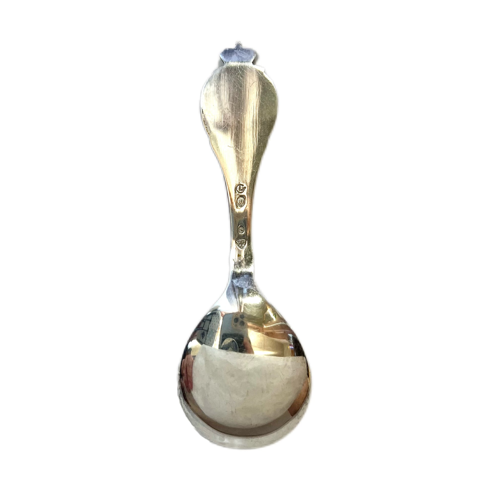 Vintage Danish King Christian X Silver Jubilee Spoon, with marks for Copenhagen, 1937, .830 silver purity, maker Johannes Siggaard who was active form 1932 to 1960.  Beautifully made with enameled motif of the Danish royal coat of arms.