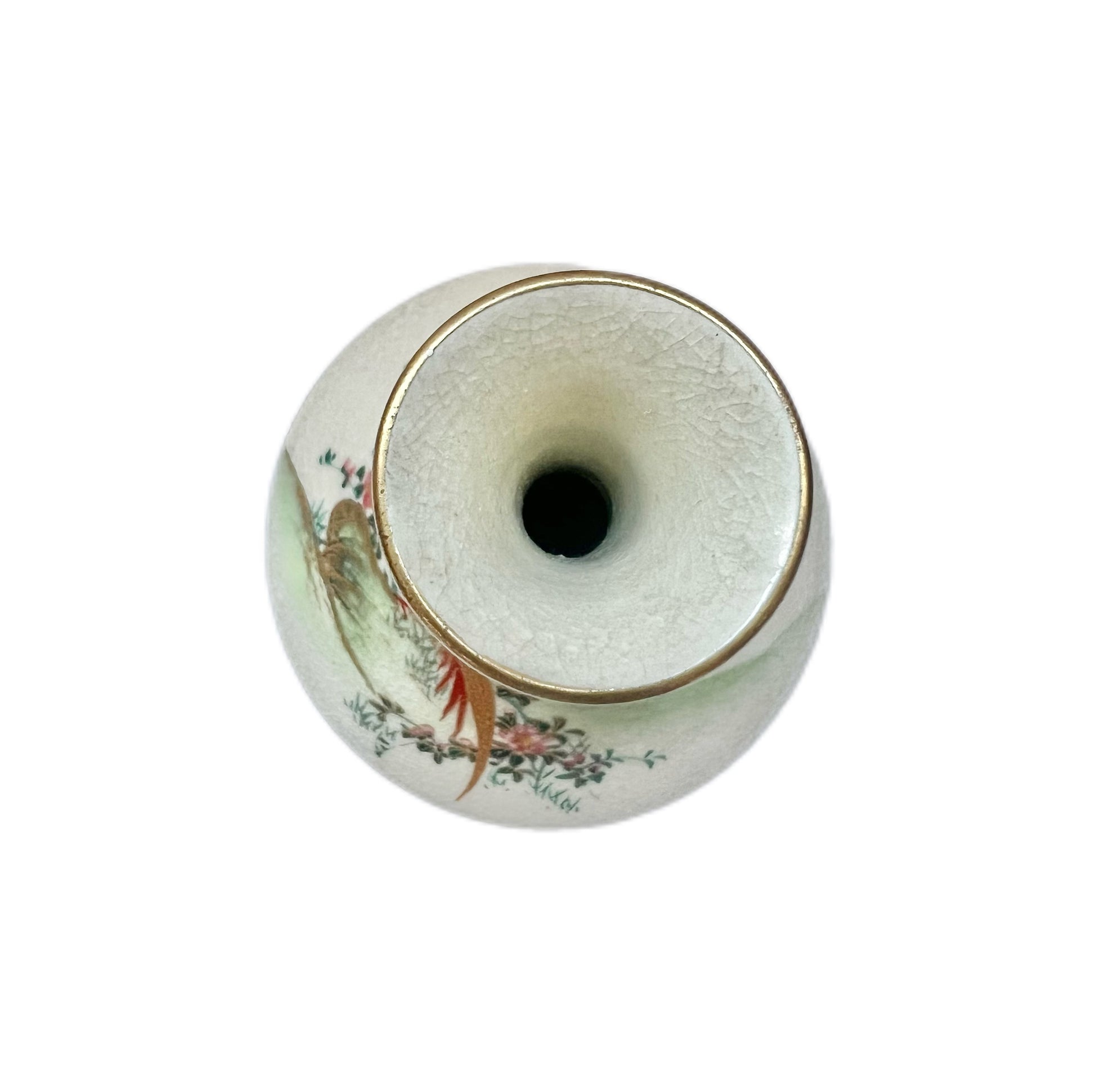Vintage Japanese Satsuma vase handpainted with pheasant and wisteria motifs by Soko China of Kobe
