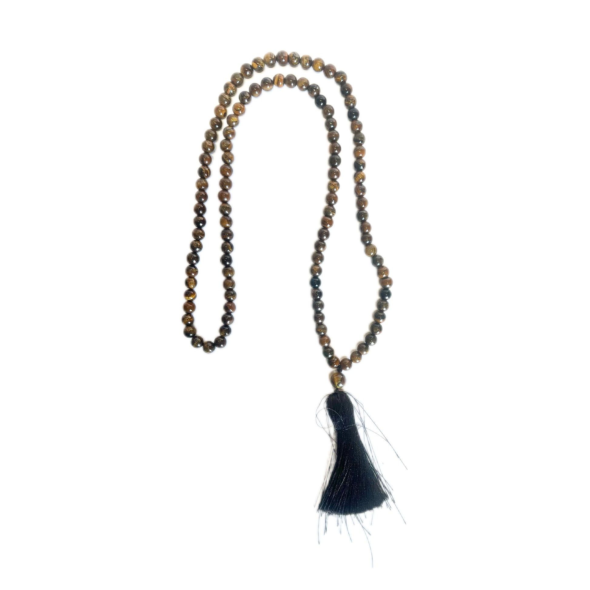 Vintage jasper and tiger’s eye mala necklace with silk tassel