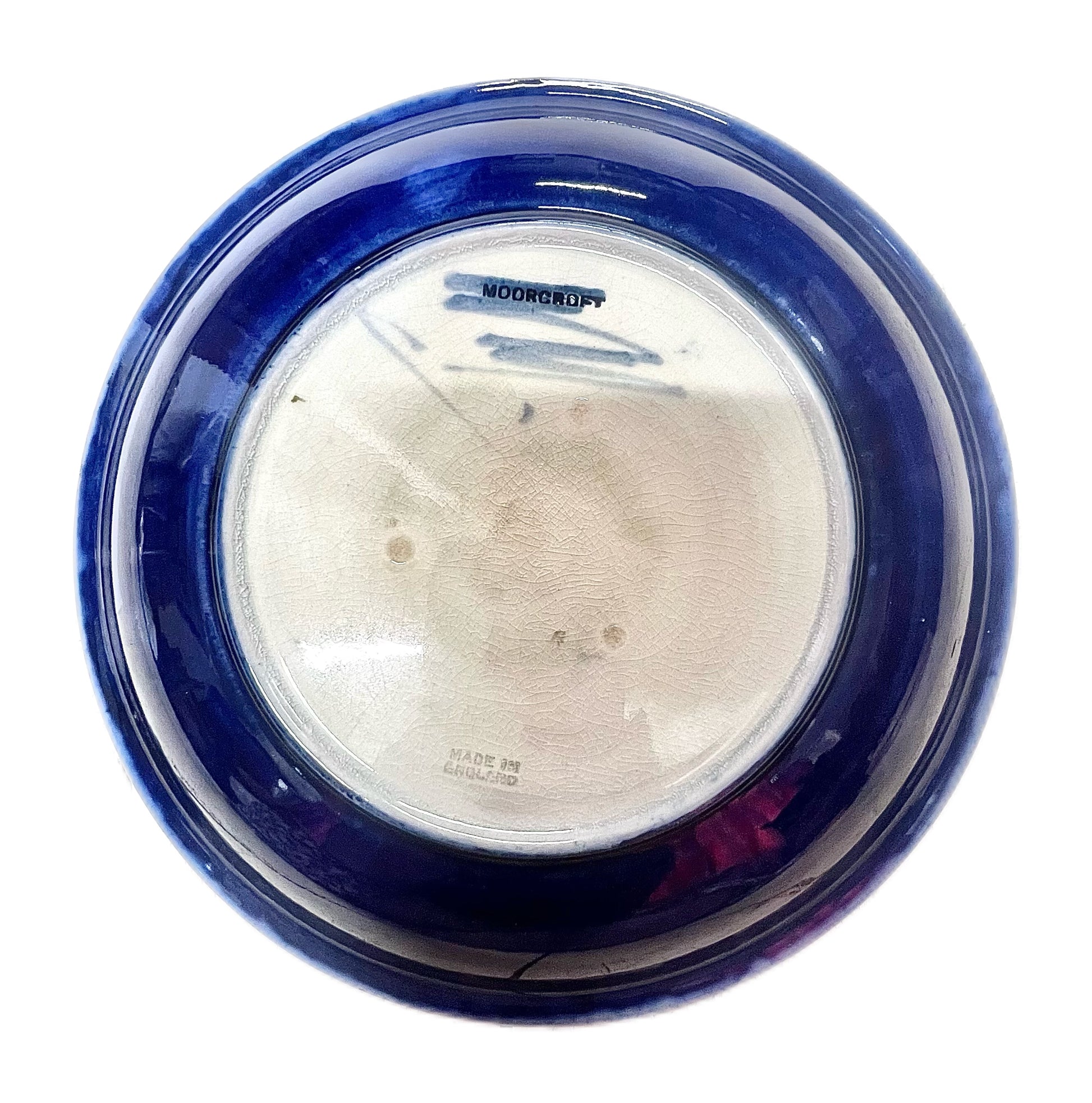 In 1912 he left to establish his own pottery backed by Liberty & Co, which sold many of his products, and which was later succeeded by his son Walter. This plate is in the Moorcroft signature Pomegranate pattern, and is a lovely example of Moorcroft, and displaying a beautiful range of colours signature to Moorcroft with 2 open pomegranates.