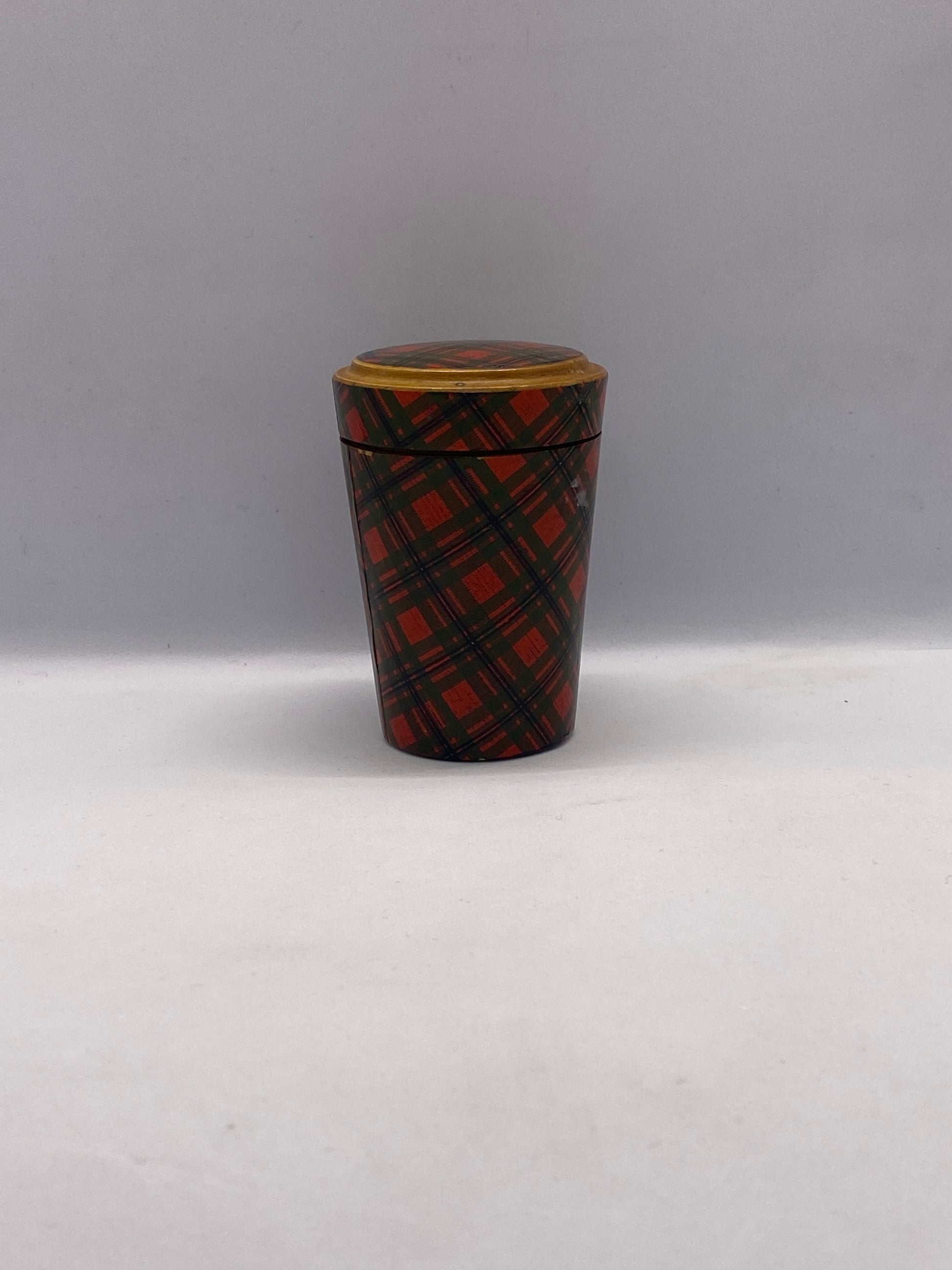 Caja de tartán victoriana del siglo XIX para vaso de whisky