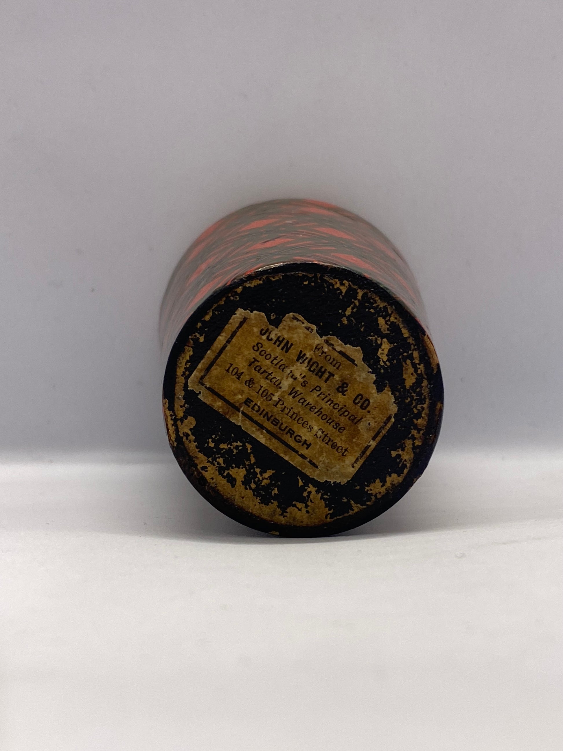 ¿Y qué mejor manera de guardar tu copa de whisky que en esta preciosa caja de tartán? Esta caja de tartán de finales del siglo XIX habría sido un recuerdo encantador y práctico en su época. Además, tiene un estampado distintivo, aunque el nombre del tartán no está claro. Perfecta para guardar recuerdos. Fue producida por John Wight & Co., los principales fabricantes de tartán de Escocia.