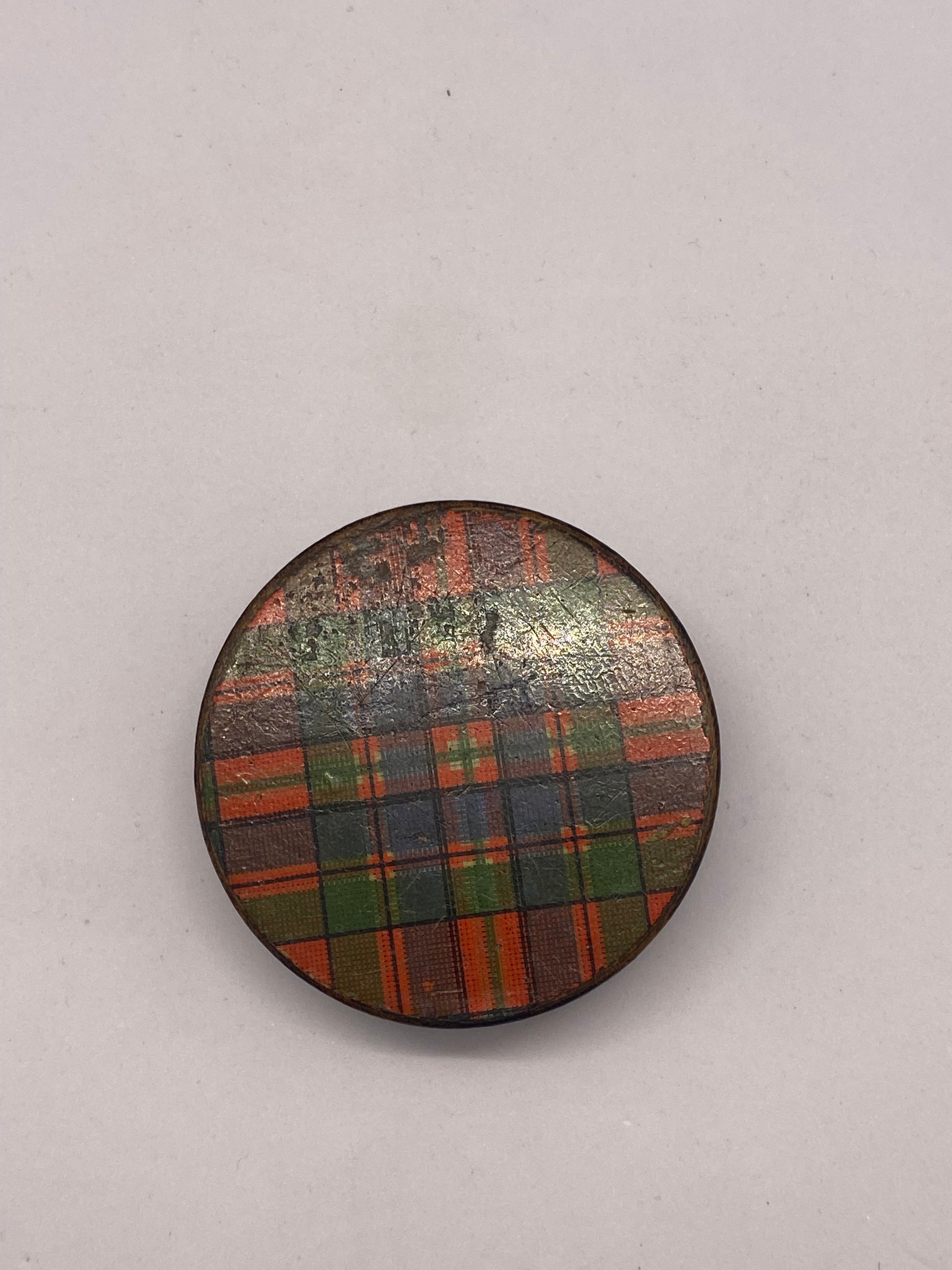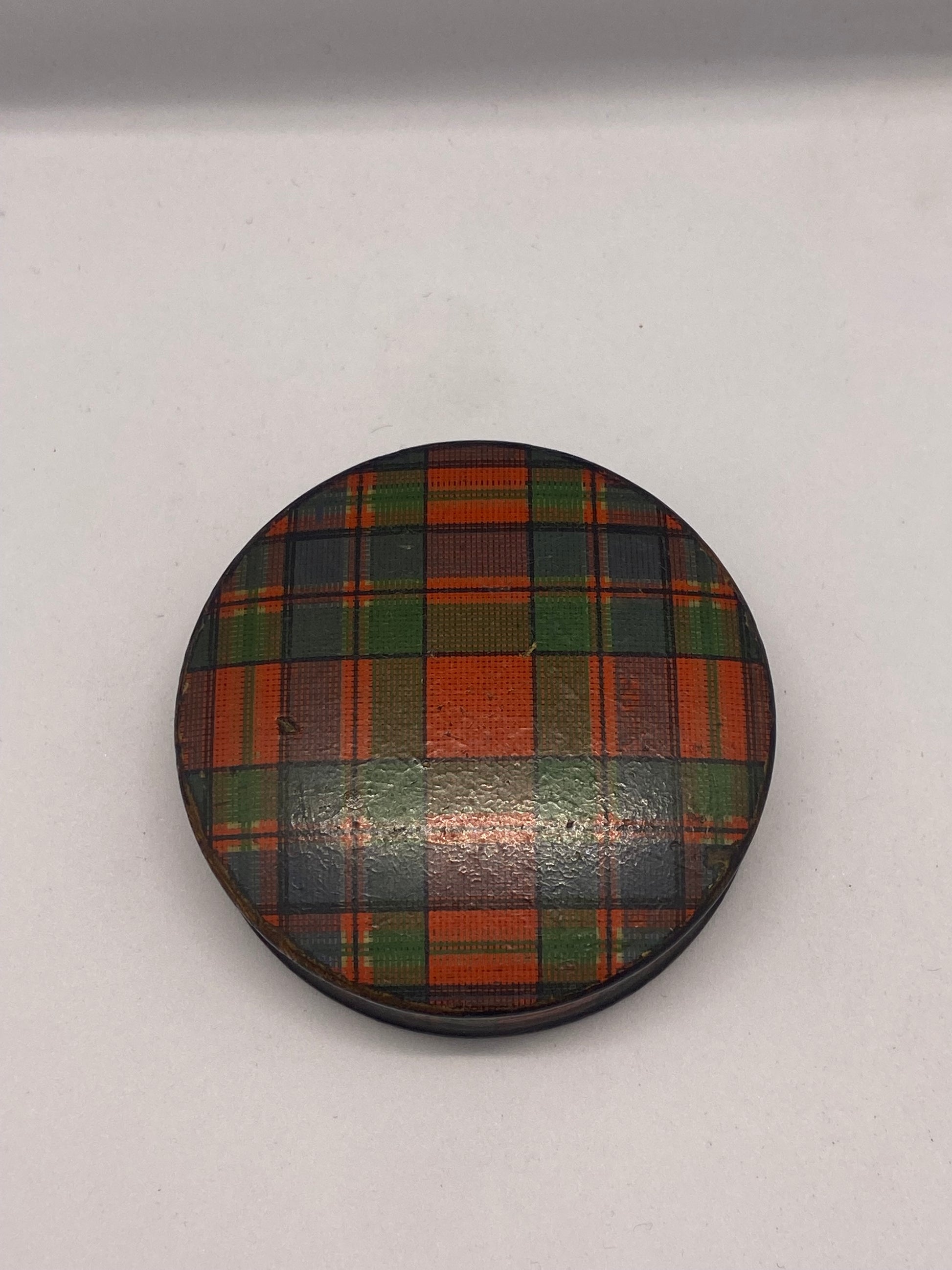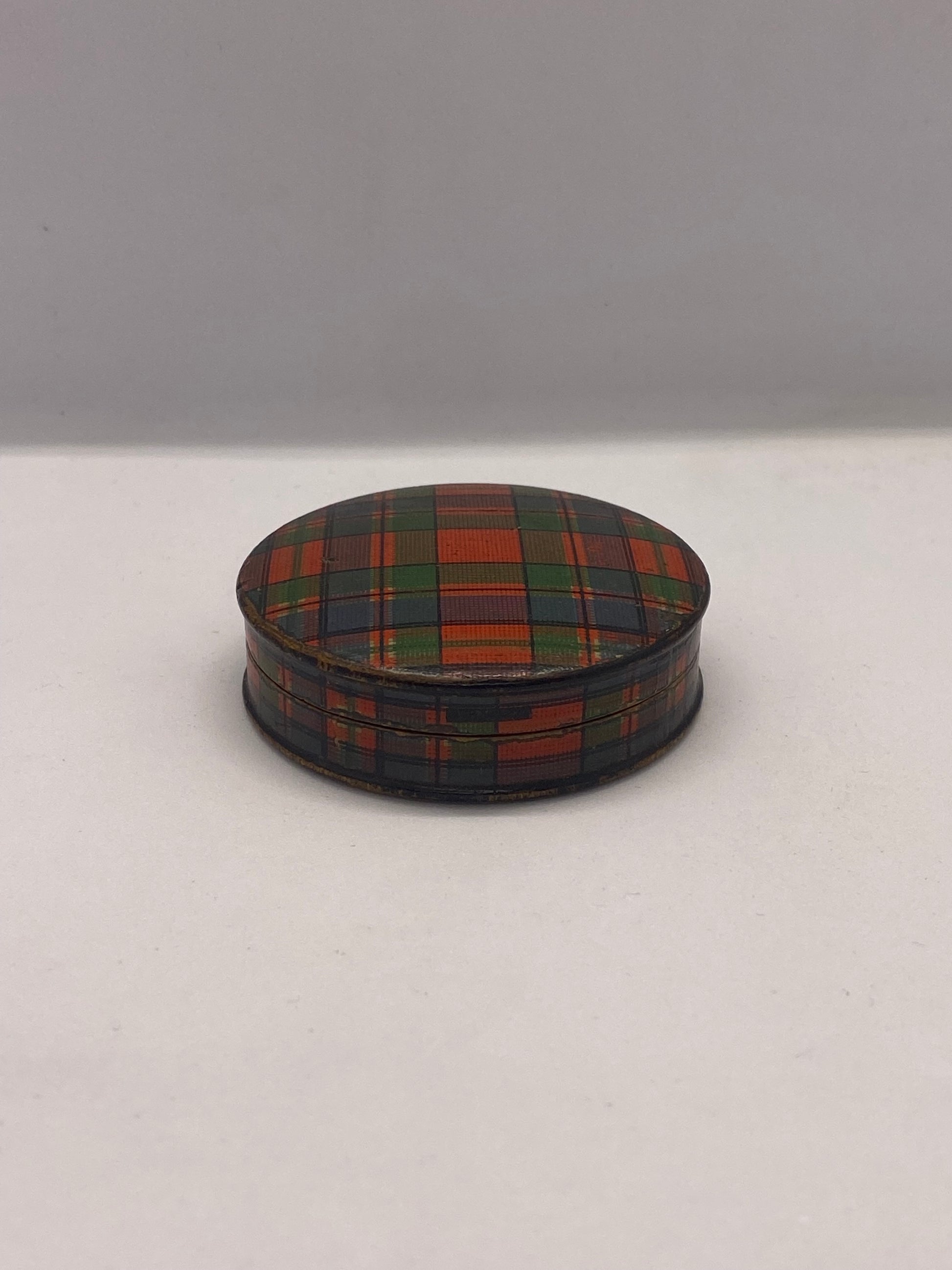 A Caja de tartán de finales del siglo XIX, posiblemente inicialmente para guardar sellos. Perfecta para pequeños objetos o recuerdos. La marquetería está en buen estado. El nombre del diseño no está claro.