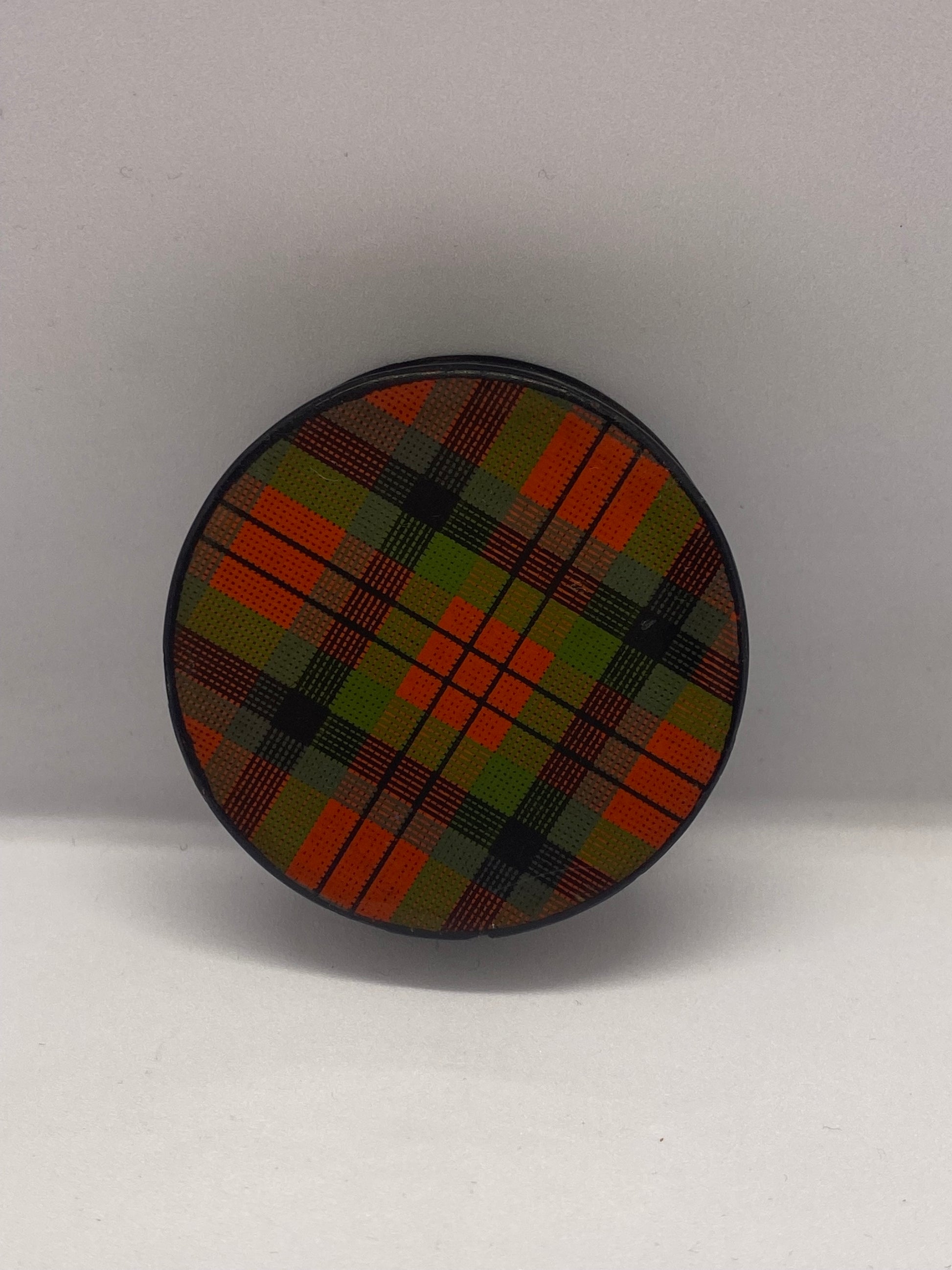 Caja de tartán victoriana del siglo XIX con decoupage y sello rojo Penny