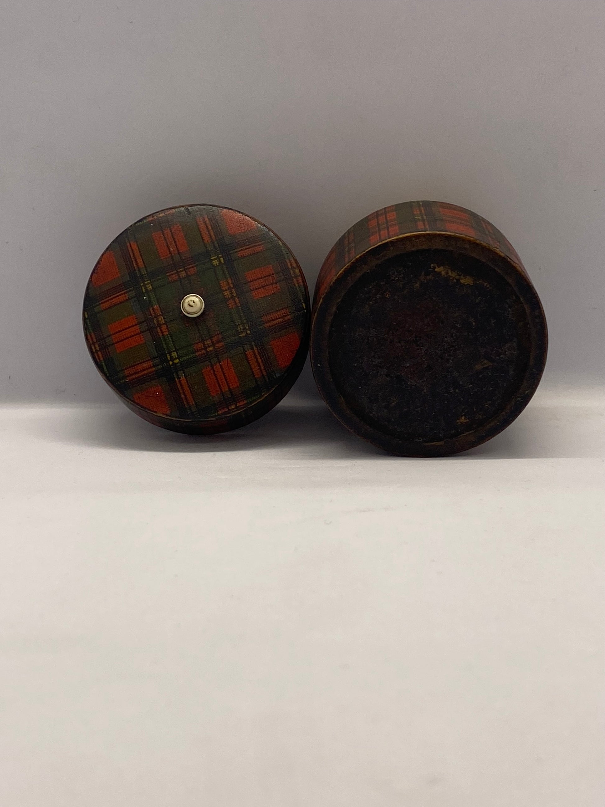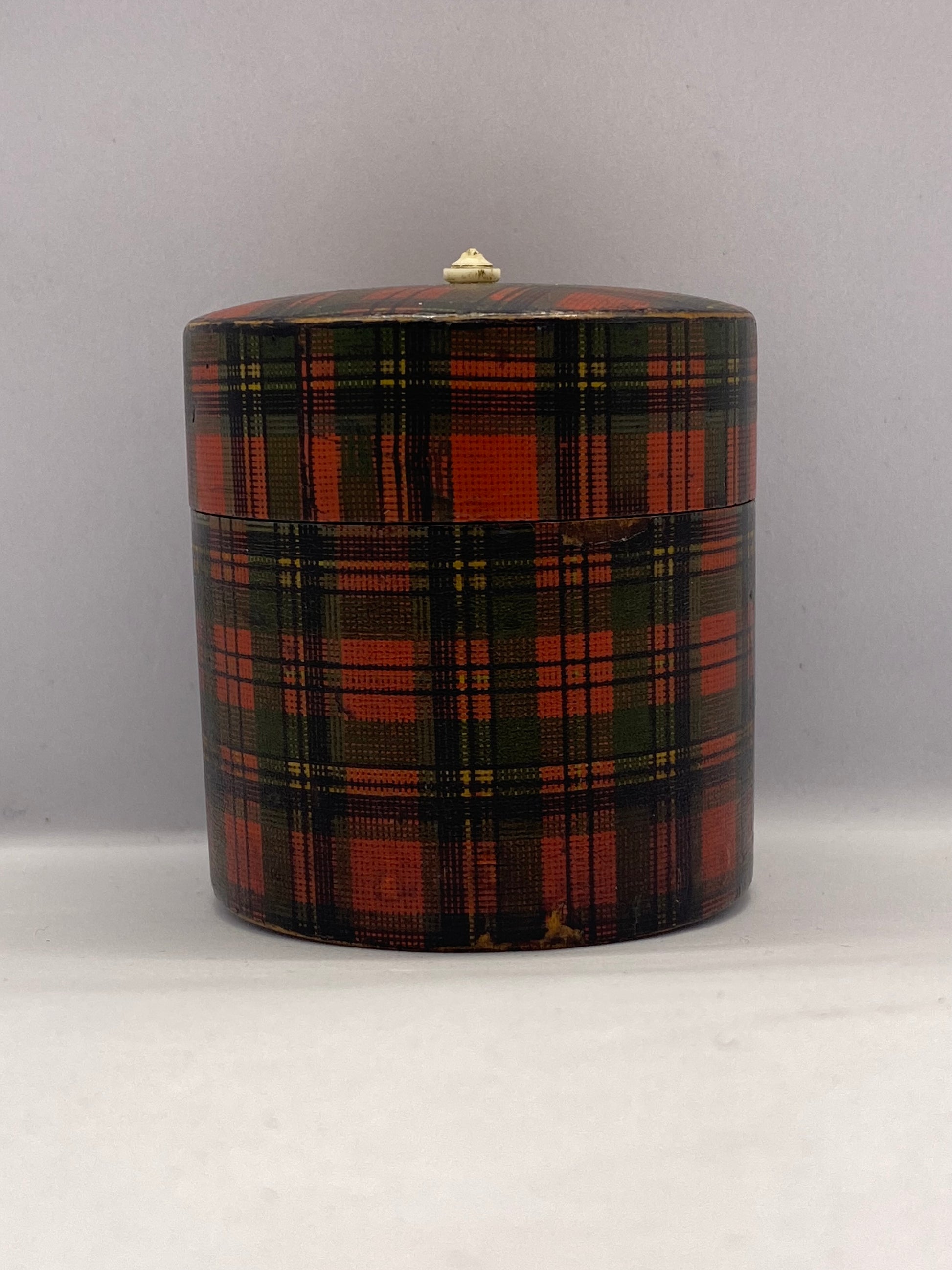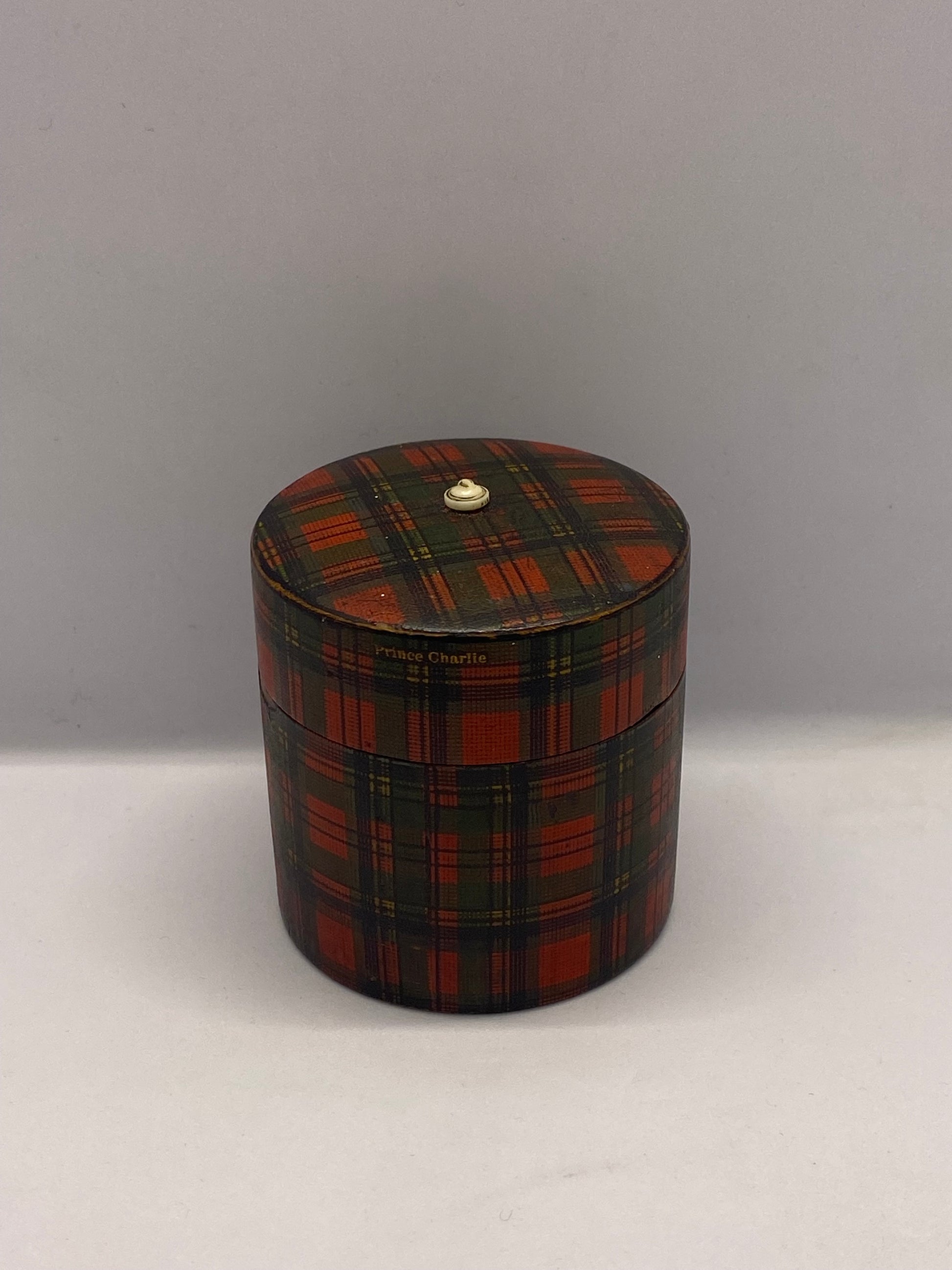 Caja con tapa para guardar cerillas y artículos para dormir de tartán victoriano del siglo XIX, diseño Príncipe Charlie