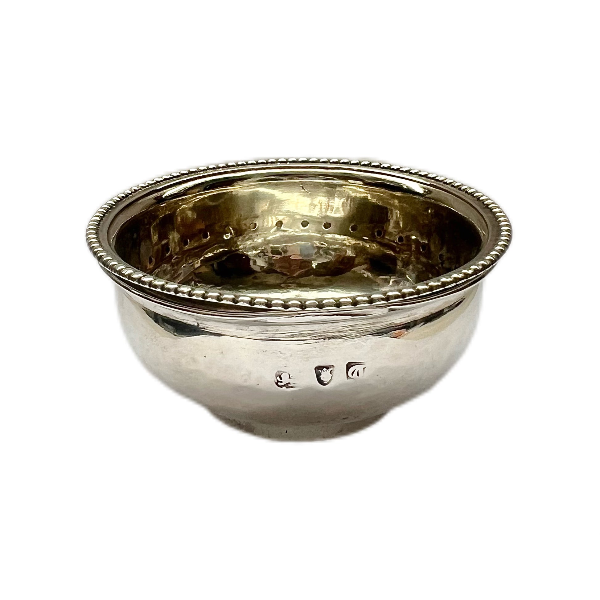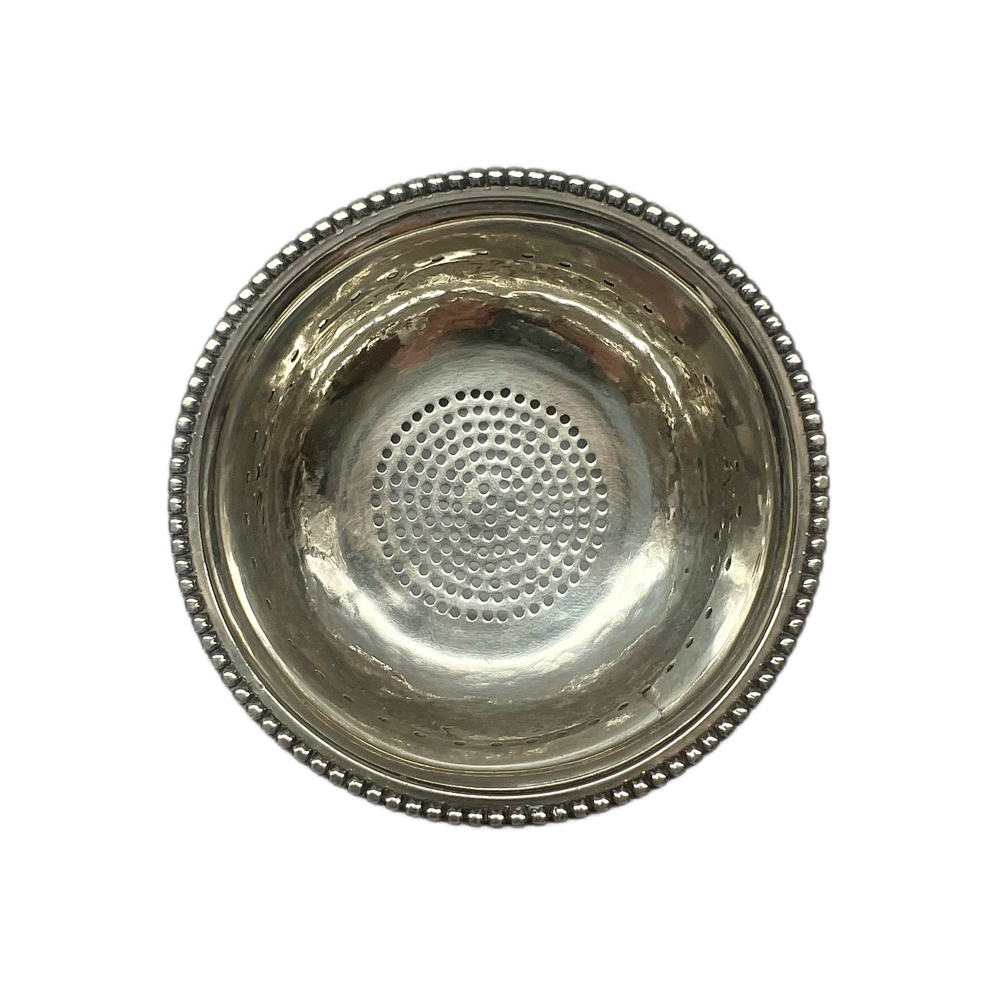 Antique George III hand-raised sterling silver wine strainer, London 1762