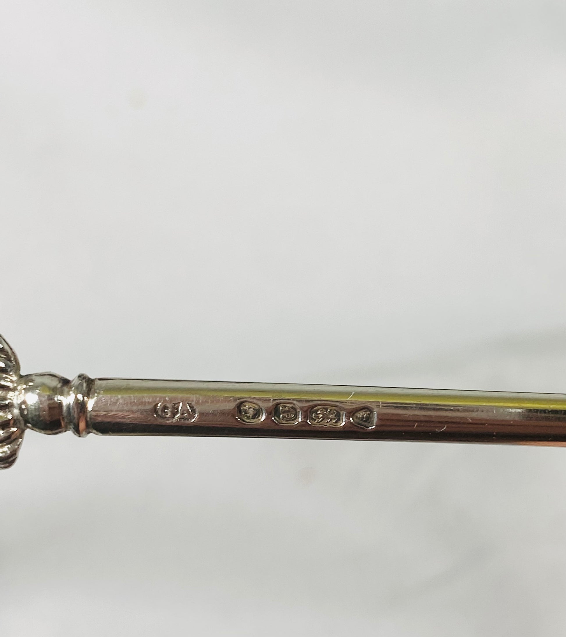 Juego antiguo de 4 brochetas de cóctel de la época victoriana, Chawner & Co., época de George Adams