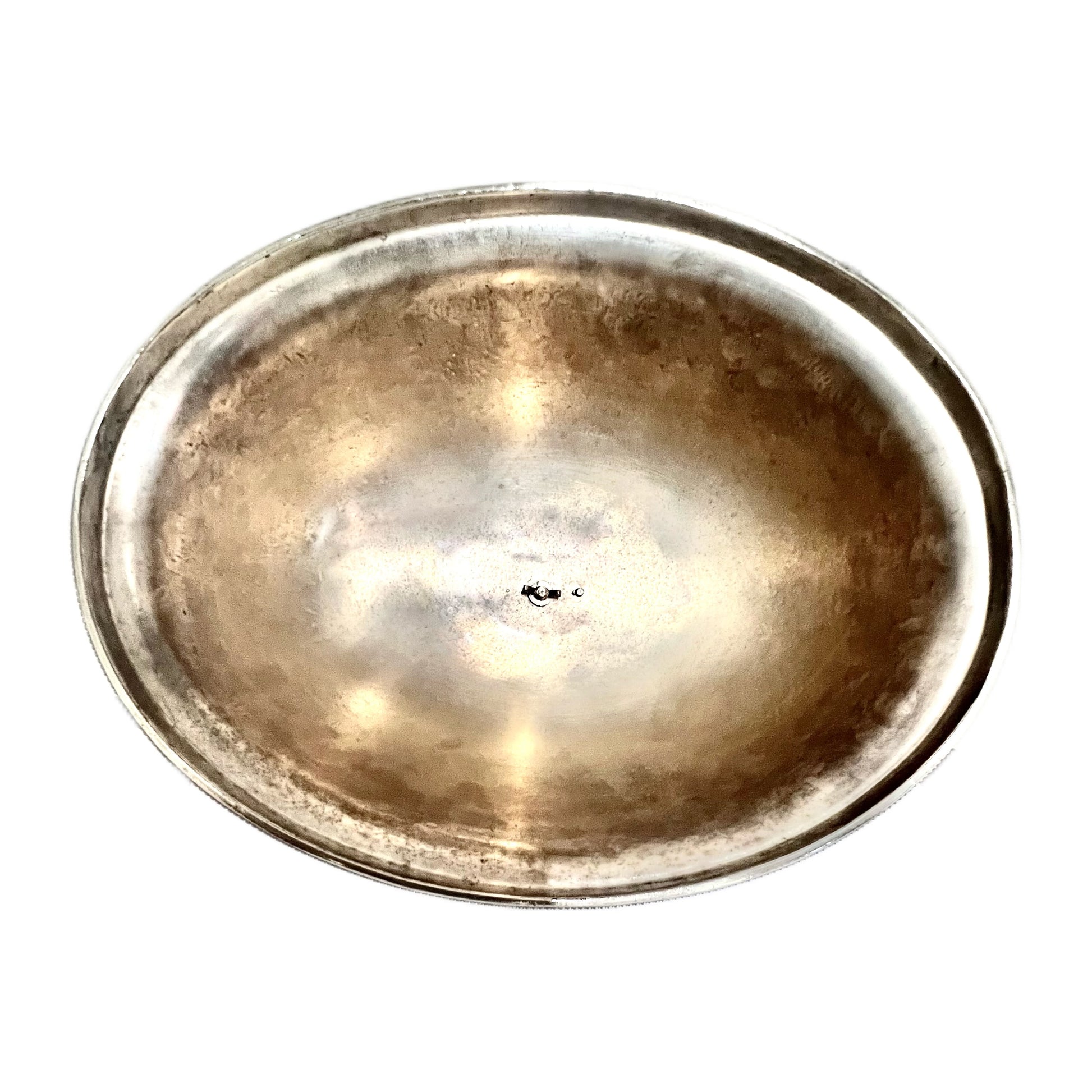 Fair antique condition- stag’s antlers have been removed, cloche has been previously replated, ivy and fern engraving rubbed throughout. Wear to exterior and interior commensurate with age including moderate blemishes to exterior.