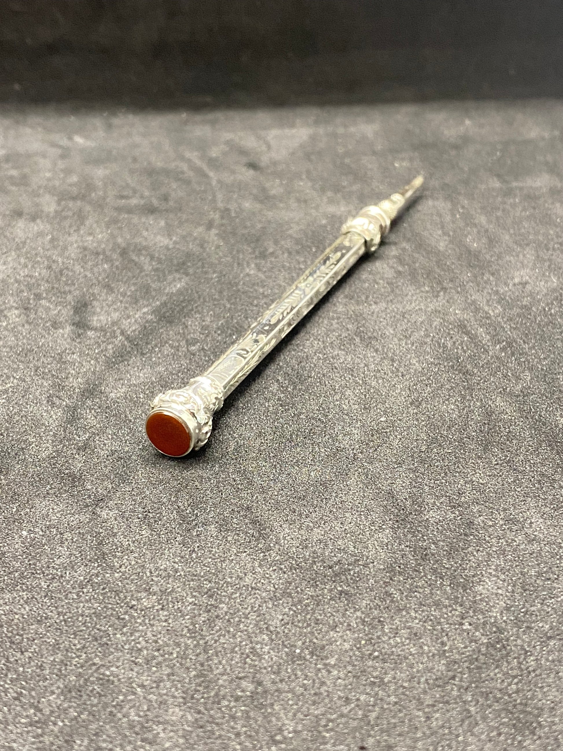 Lápiz propulsor antiguo de plata esterlina con tapa con sello de cornalina