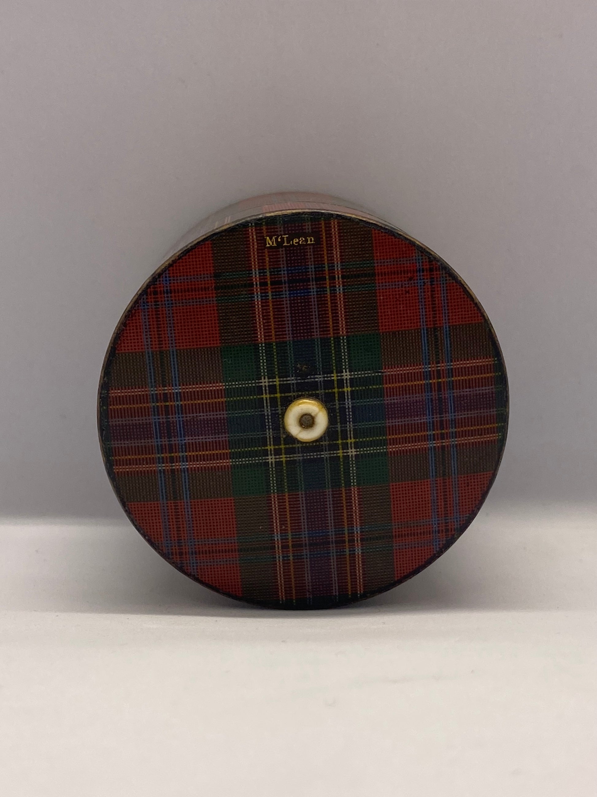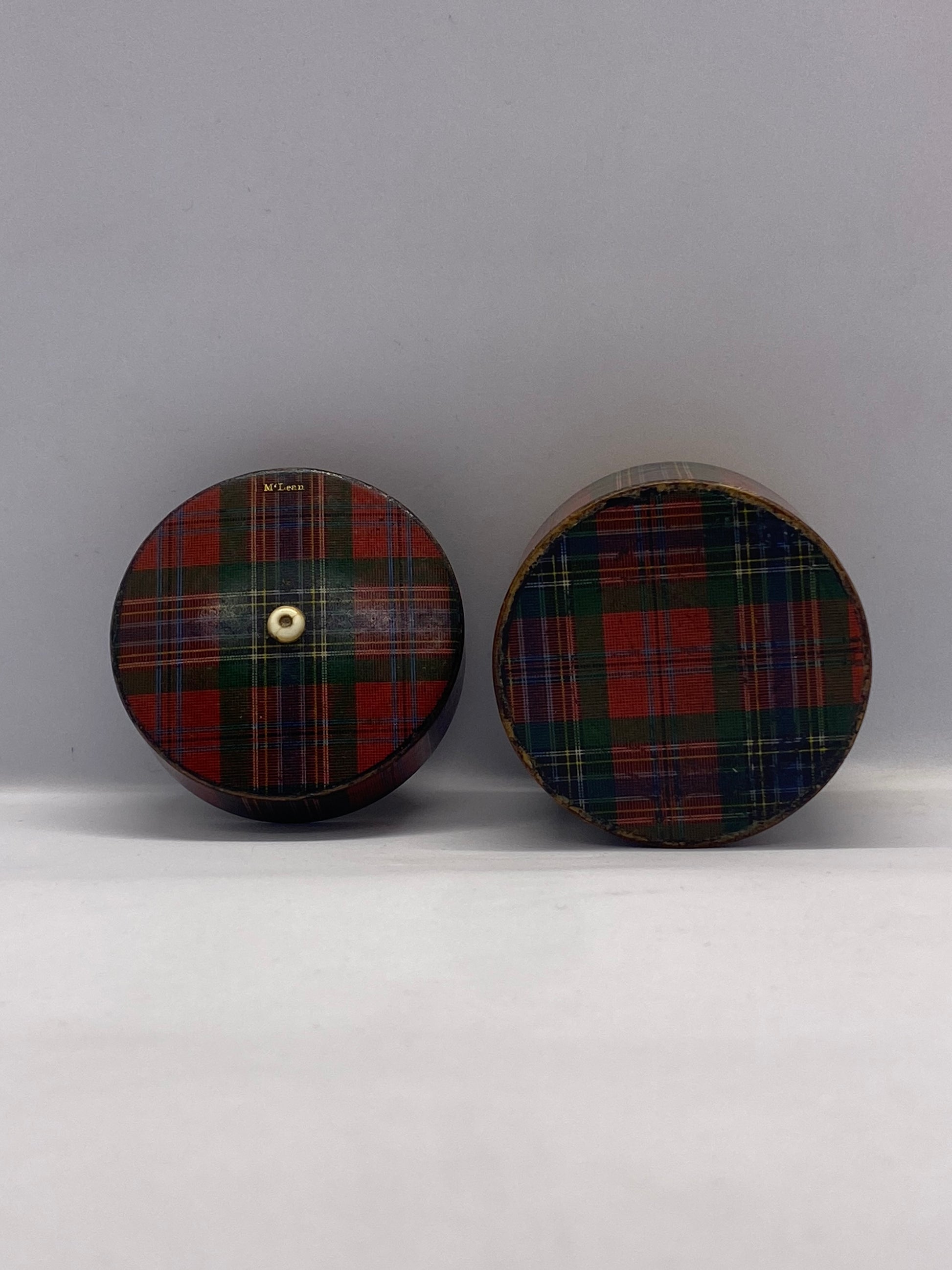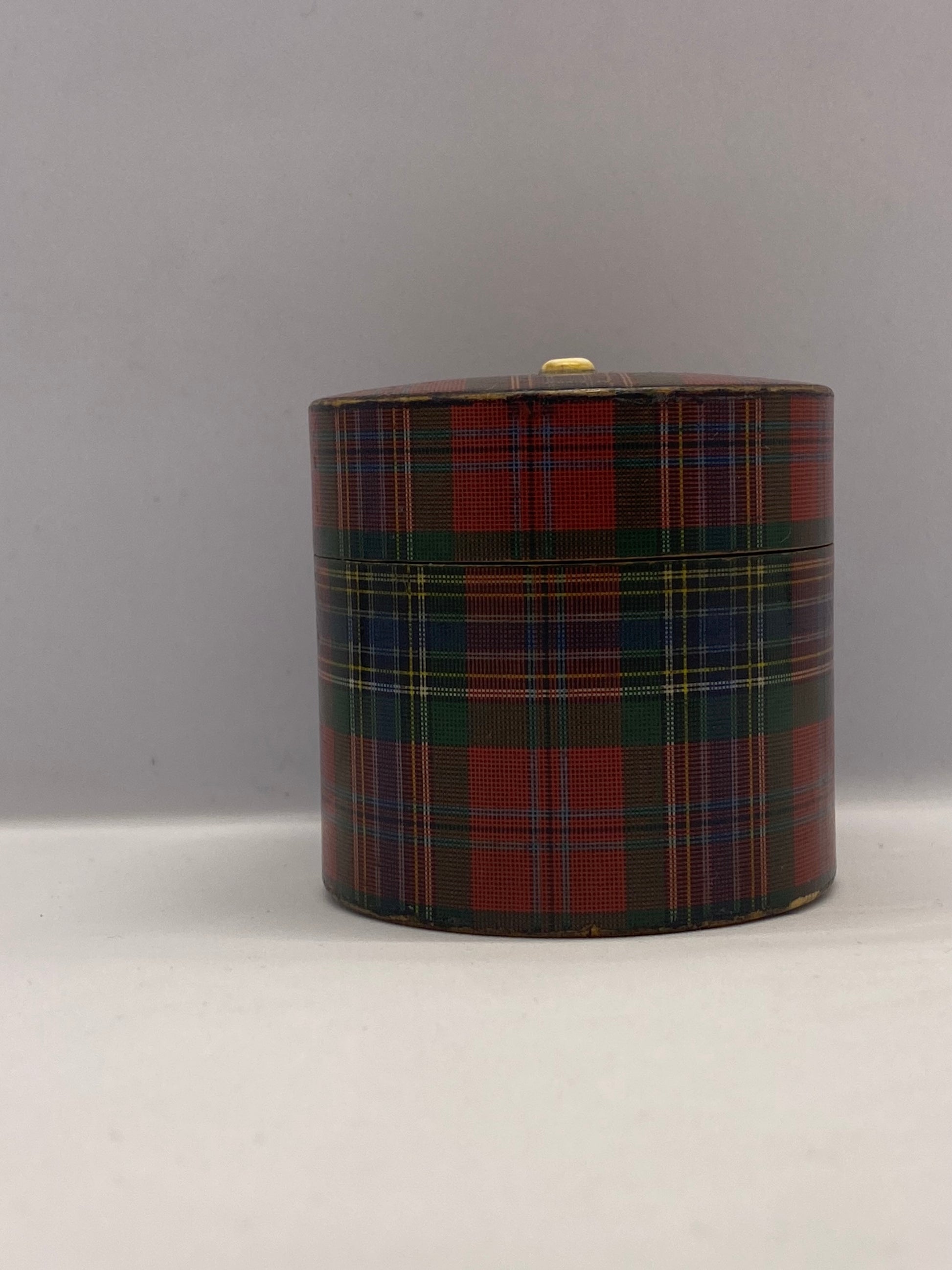Caja con tapa para guardar cerillas y artículos para dormir de tartán victoriano del siglo XIX, diseño McLean