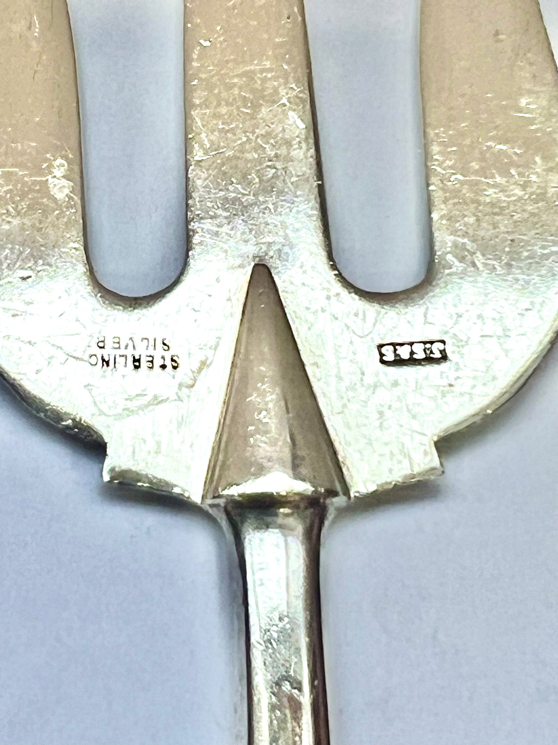 Tenedor antiguo para verduras de plata de ley neozelandesa y jade nefrita. Joseph Swindell & Son, Christchurch.