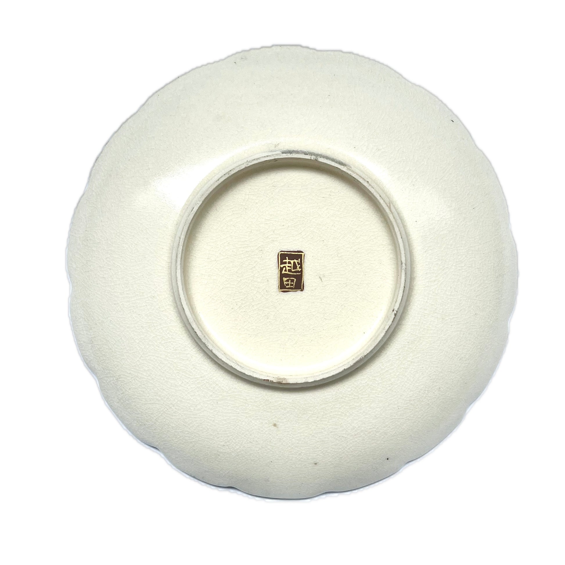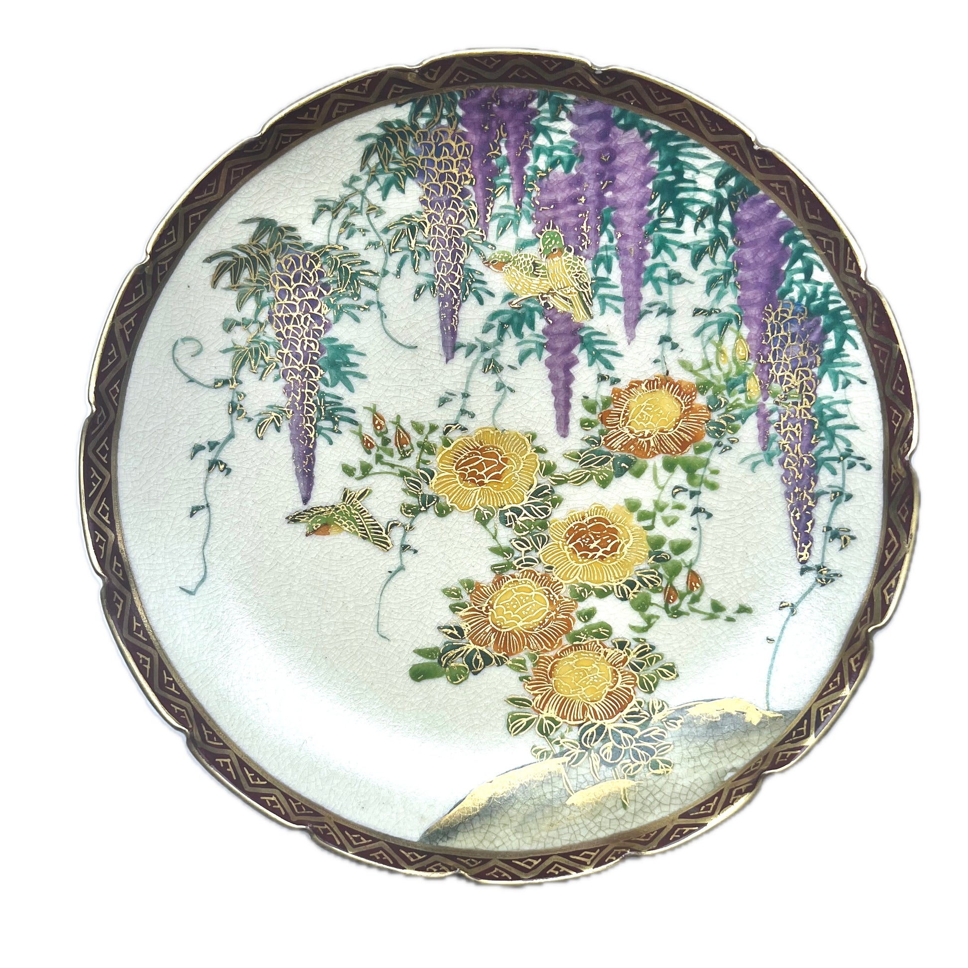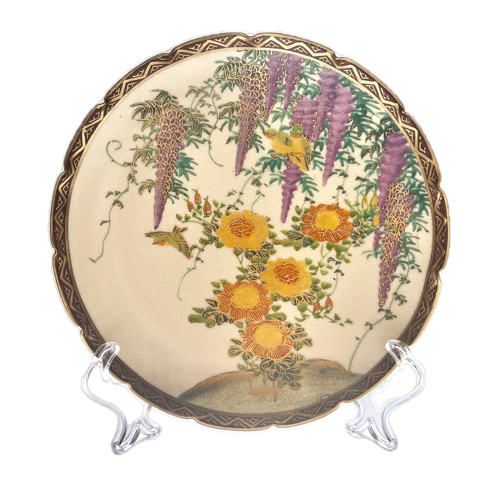 Plato con flores de glicina Satsuma de principios del siglo XX del reconocido fabricante Koshida 越田, período Taisho
