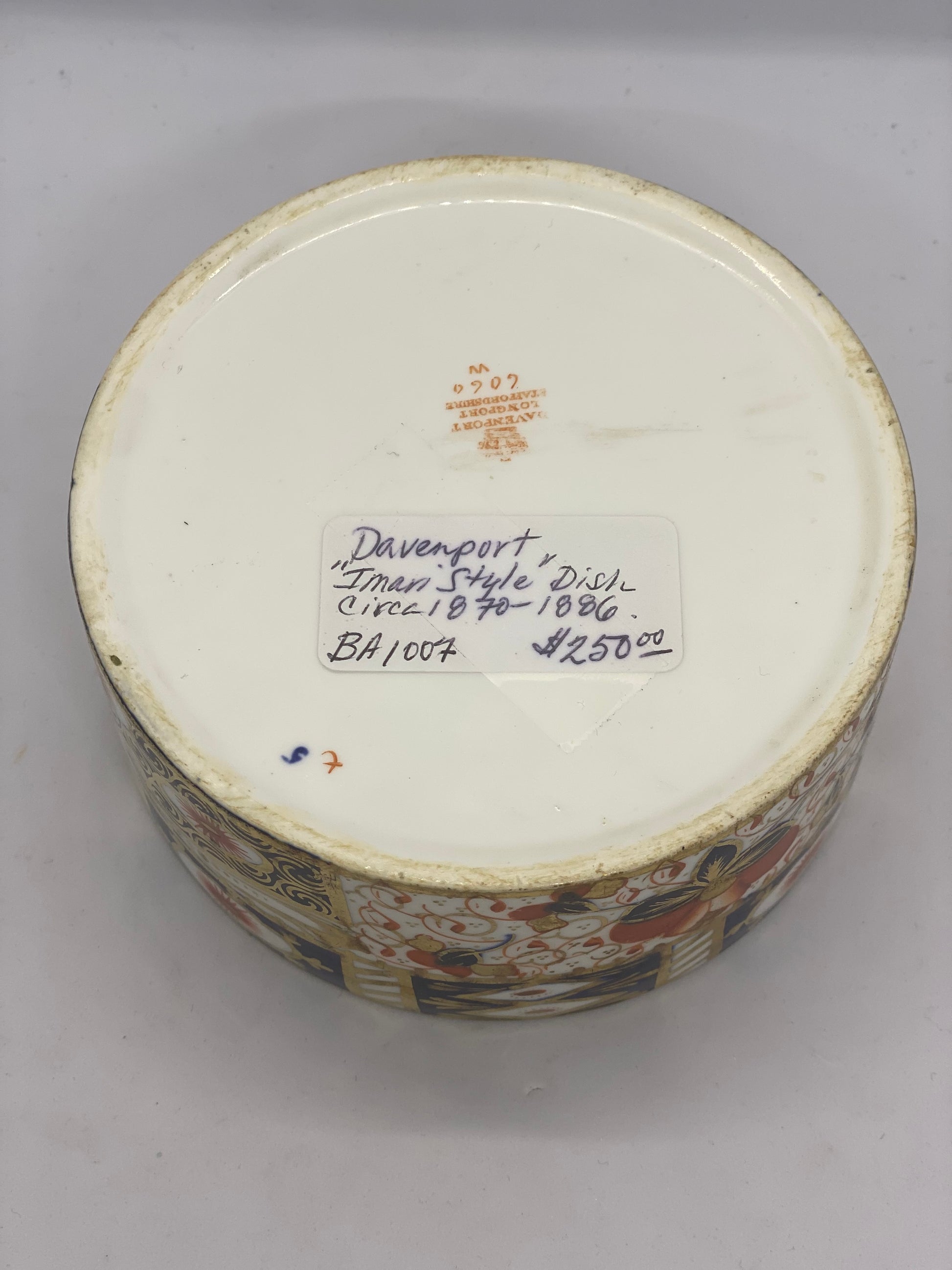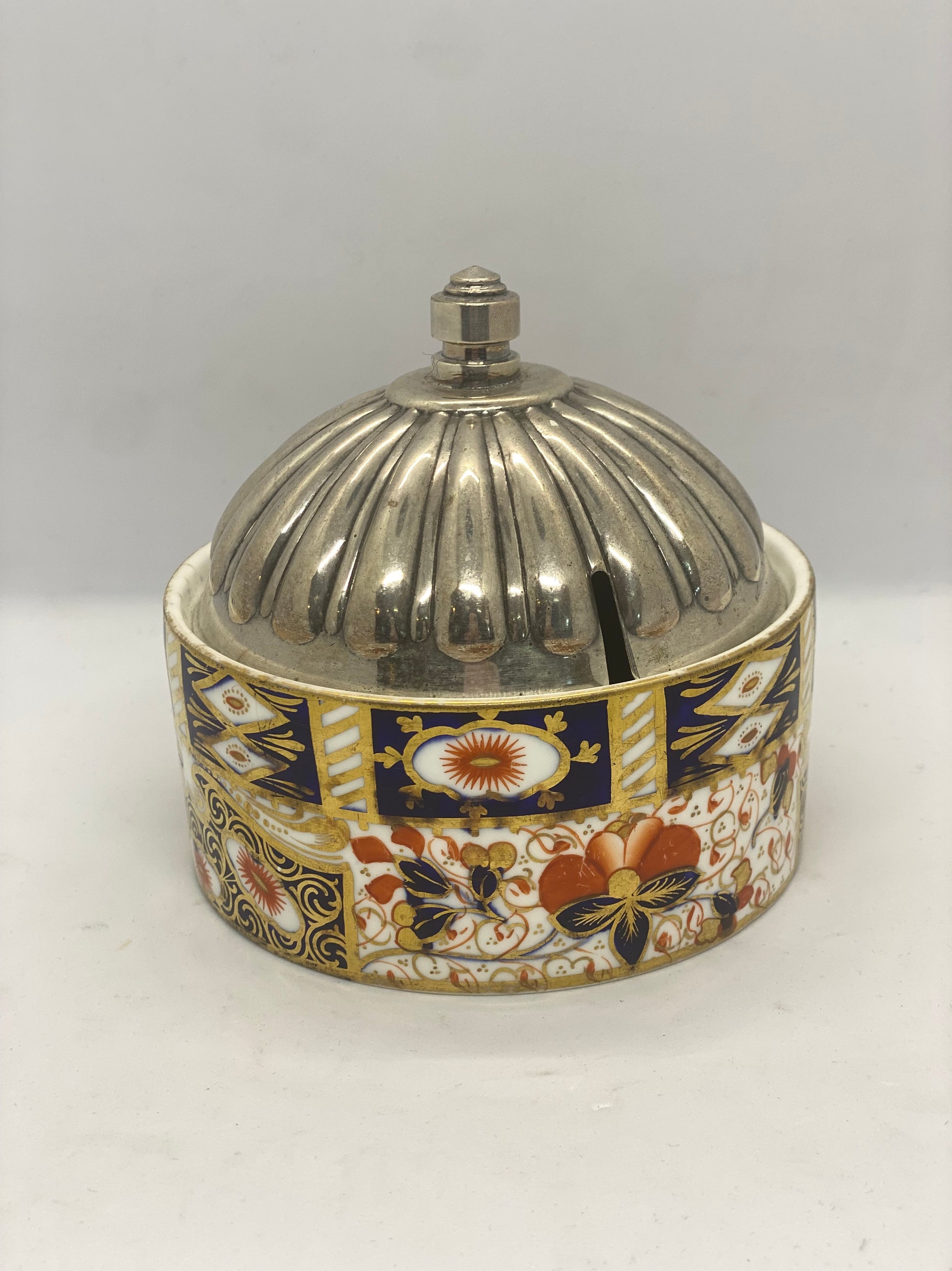 Precioso plato estilo Imari de Davenport con tapa plateada, circa 1870 a 1886. Un diseño encantador y una pieza práctica para el uso diario o para cócteles.