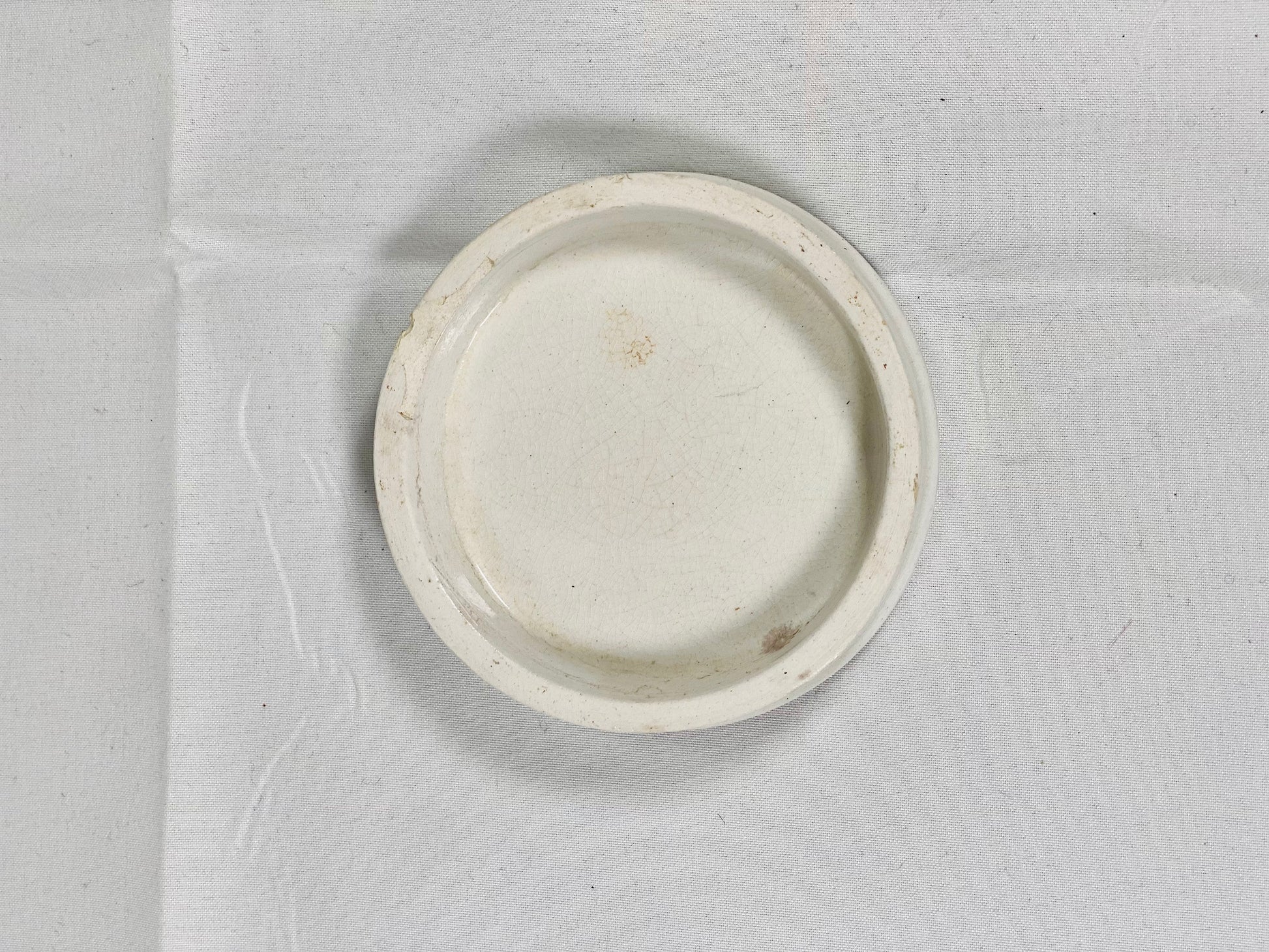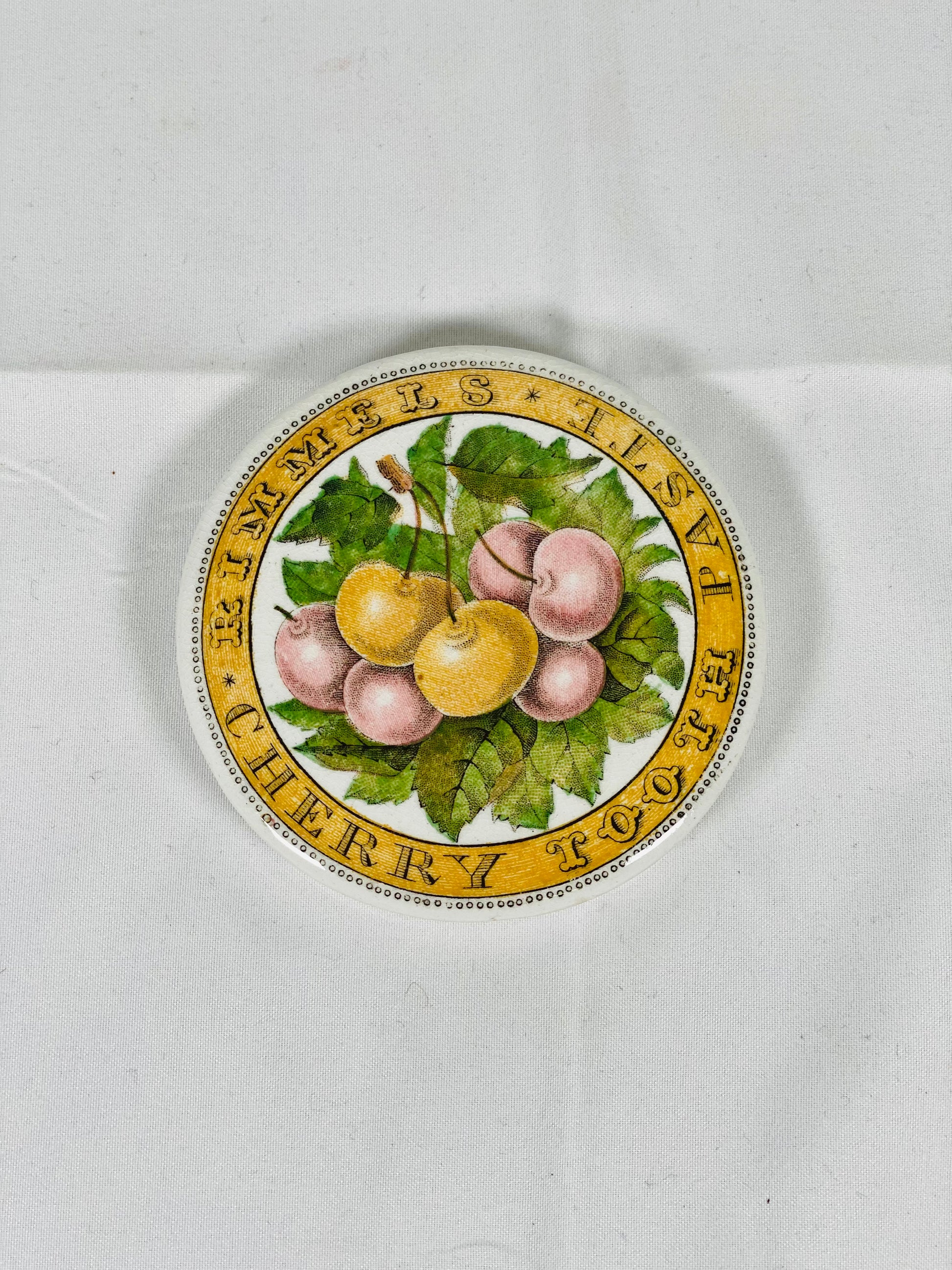 Esta increíblemente rara tapa de bote de pasta de dientes color cereza de Rimmel es uno de los mejores ejemplos de cerámica de transferencia del siglo XIX que hemos visto.