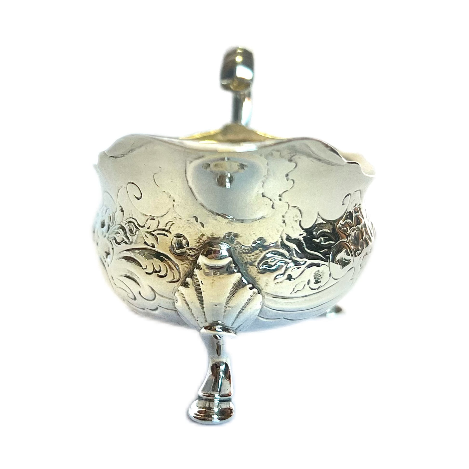 John Pollock was an exceptional silversmith specialising in smaller items of holloware, especially cast milk jugs. A very rare and desirable piece.