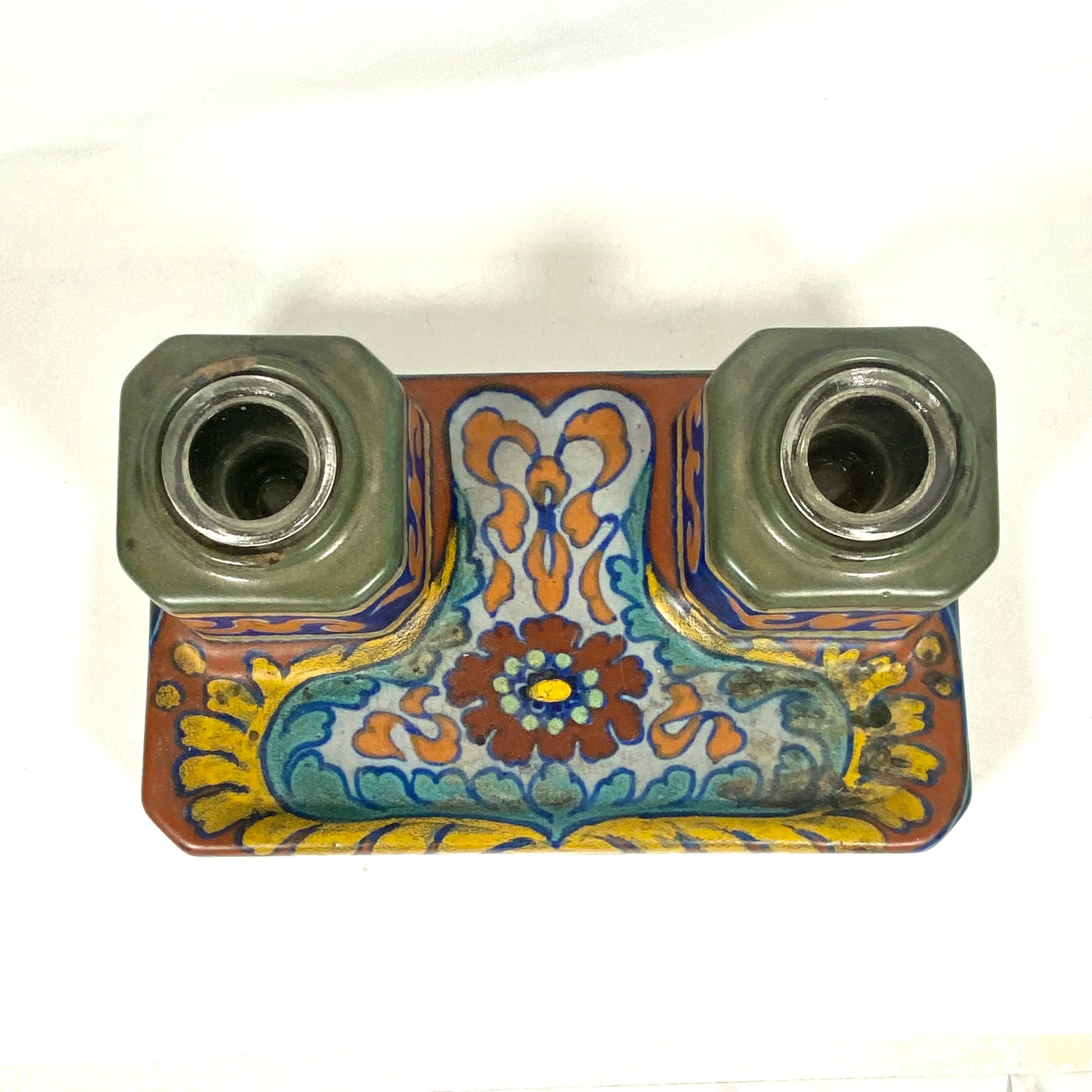 Juego de tintero de escritorio de cerámica artística holandesa Gouda, circa 1920, RARO