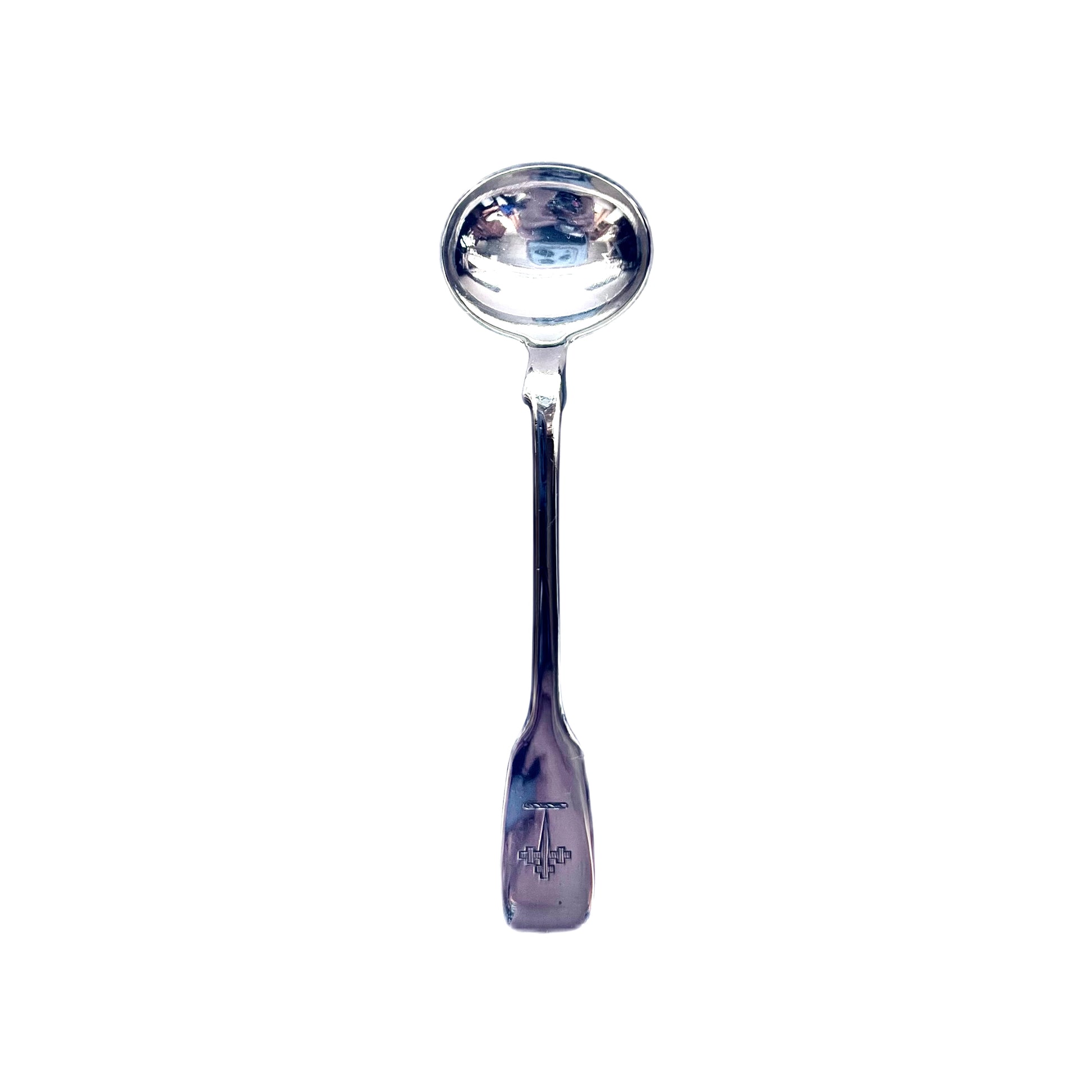Cuchara para mostaza de plata provincial con cresta victoriana alta, con marcas de Exeter, 1852, Josiah Williams & Co. Crestada con una cruz encajada gu, que pertenece a la familia Abernethy, un clan escocés de gran nobleza y linaje que data del siglo XIII.