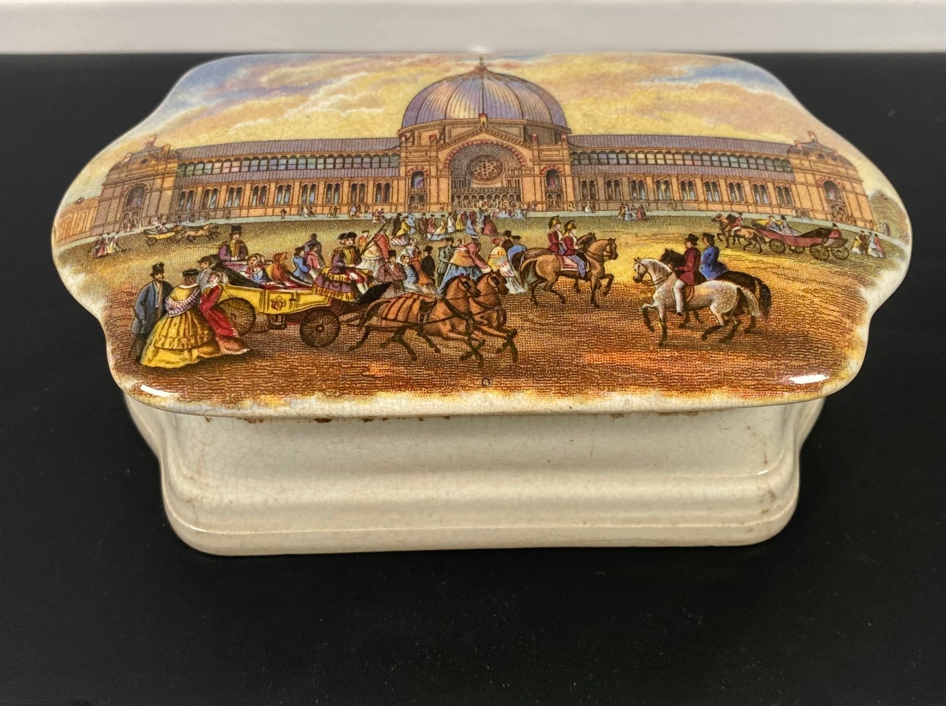 Tapa y base de olla Prattware "Alexandra Palace" de finales del siglo XIX