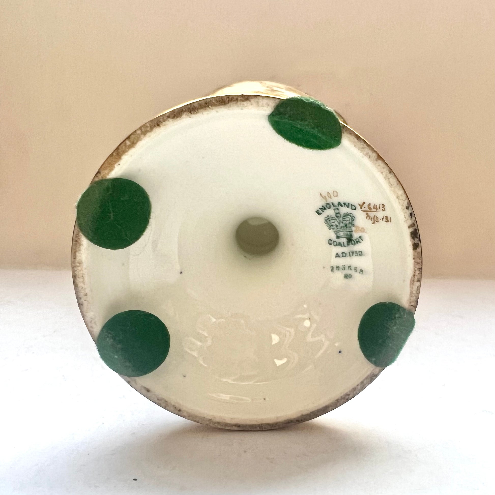 Para ver fotos completas, consulte el listado de nuestro sitio web. Esta urna de porcelana Coalport con tapa de finales del siglo XIX, bellamente pintada a mano y dorada, es una oportunidad emocionante para un coleccionista nuevo en la porcelana inglesa. Su marca de registro (225665), estampada en la base, data de 1894-1896, lo que la sitúa aproximadamente a finales de la década de 1890. Coalport se fundó a finales del siglo XVIII y rápidamente se hizo famosa por la calidad de su porcelana y su hermosa decoración. Para la década de 1820, se habían consolidado como uno de los mejores fabricantes de porcelana inglesa, rivalizando con otros fabricantes como Minton. Las piezas Coalport del siglo XIX siguen siendo muy codiciadas, y una pieza como esta, finamente dorada y bien decorada, suele alcanzar precios elevados. Sin embargo, cabe destacar que en algún momento esta pieza sufrió una caída. Si bien ha sido meticulosamente reparada, el remate está astillado y presenta grietas en todo el cuerpo. Sin embargo, para alguien que busca una hermosa y verdadera pieza antigua de la historia de la cerámica inglesa, esta sigue siendo una excelente oportunidad de comprar una pieza antigua de Coalport a un precio excelente.