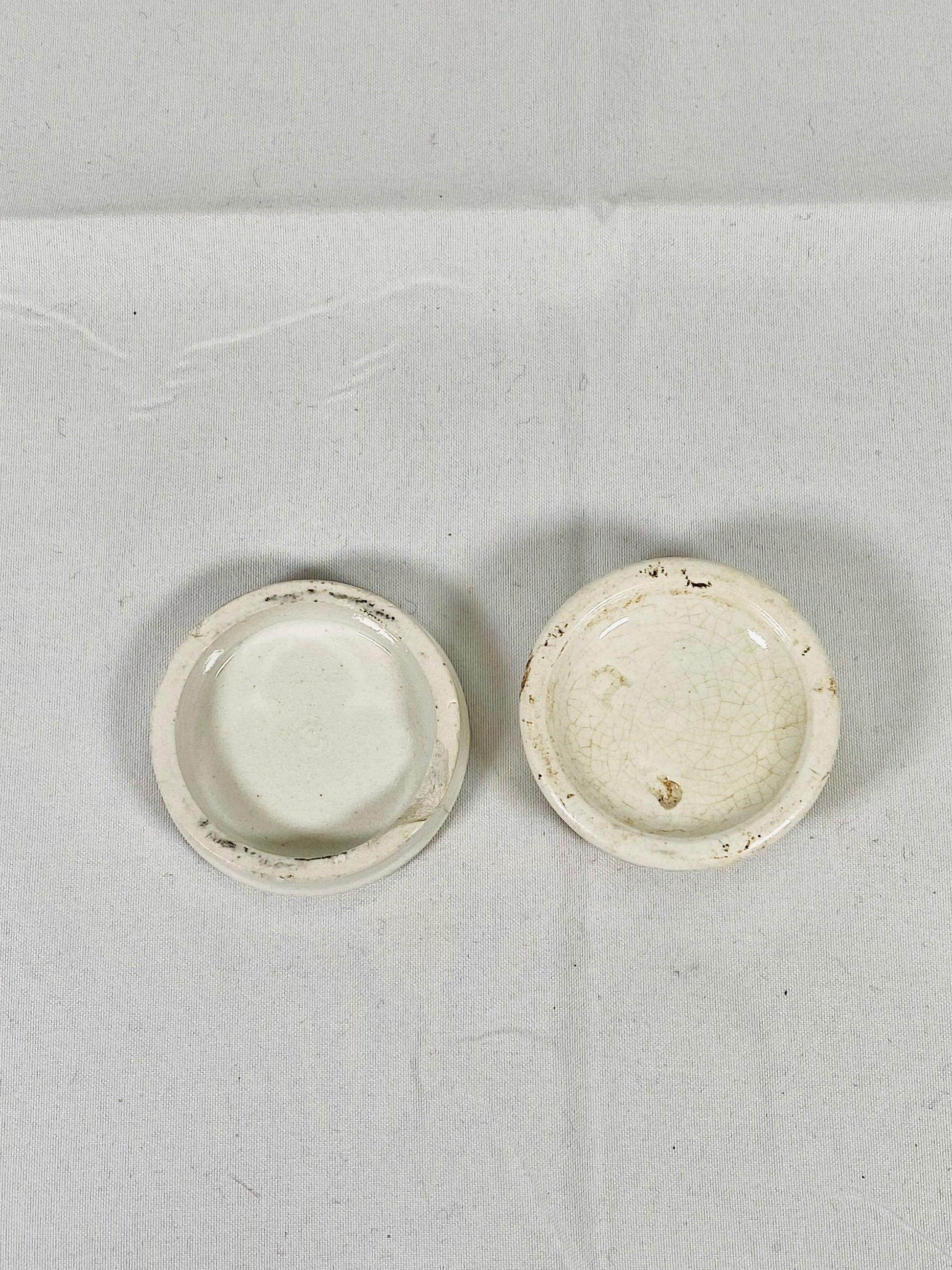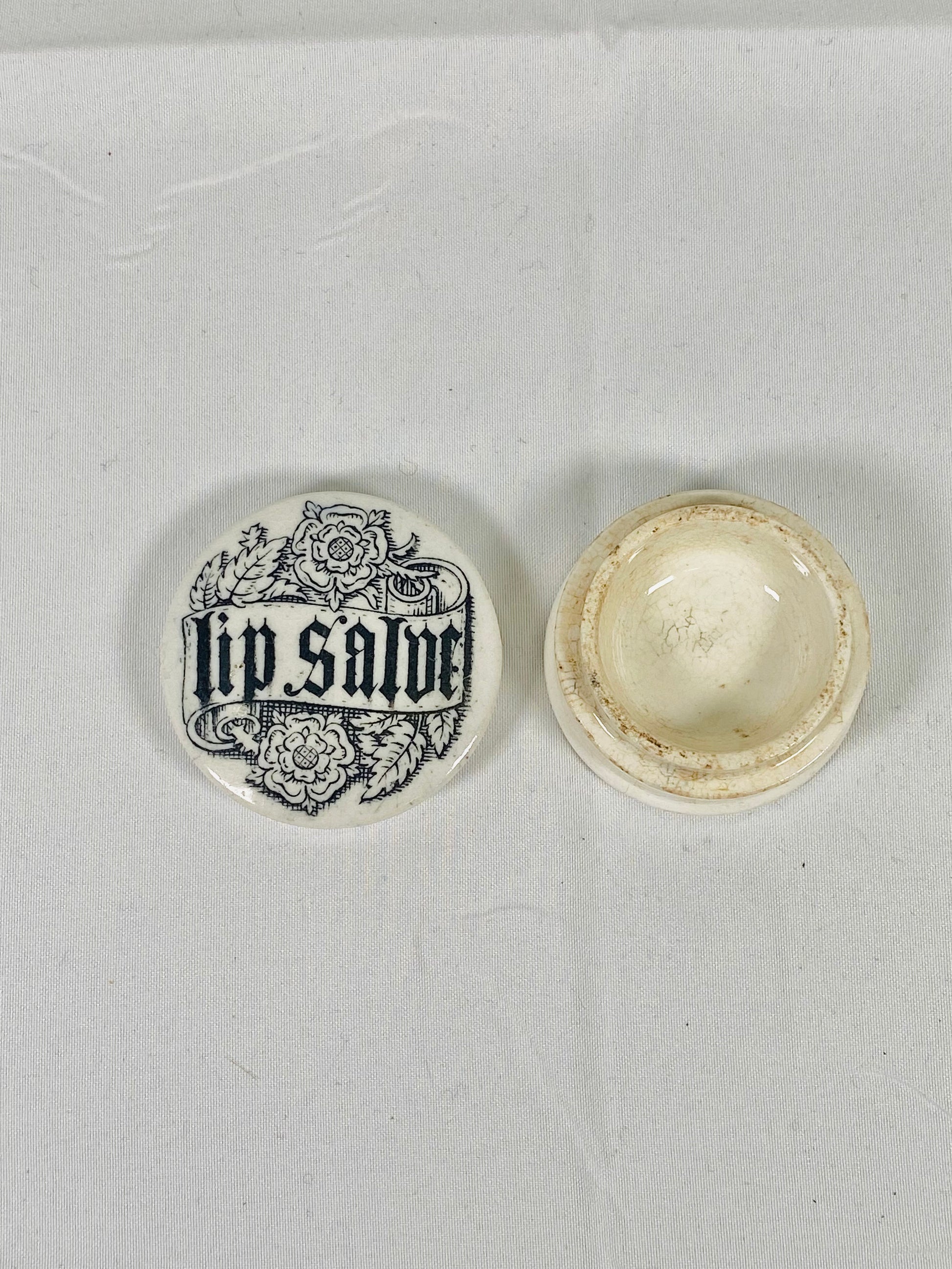 Tarro de bálsamo labial de loza victoriana de finales del siglo XIX