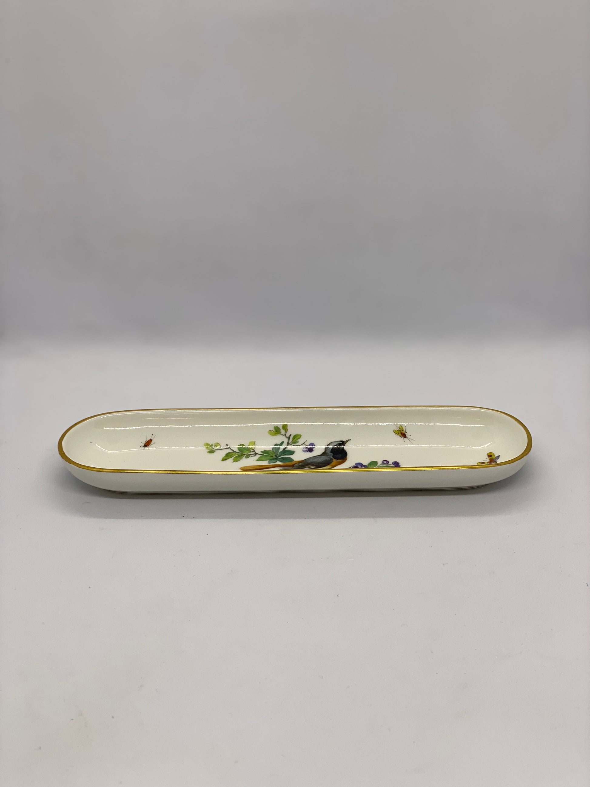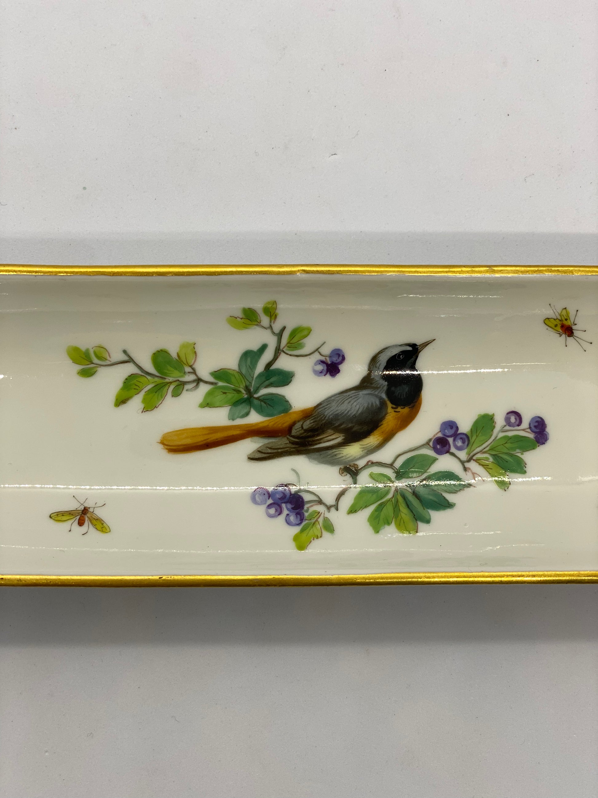 Con la magnífica calidad que caracteriza a Meissen, pintado hábilmente a mano, el motivo central del pájaro con motivos de insectos a su alrededor es un fantástico ejemplo del naturalismo victoriano en su máxima expresión.