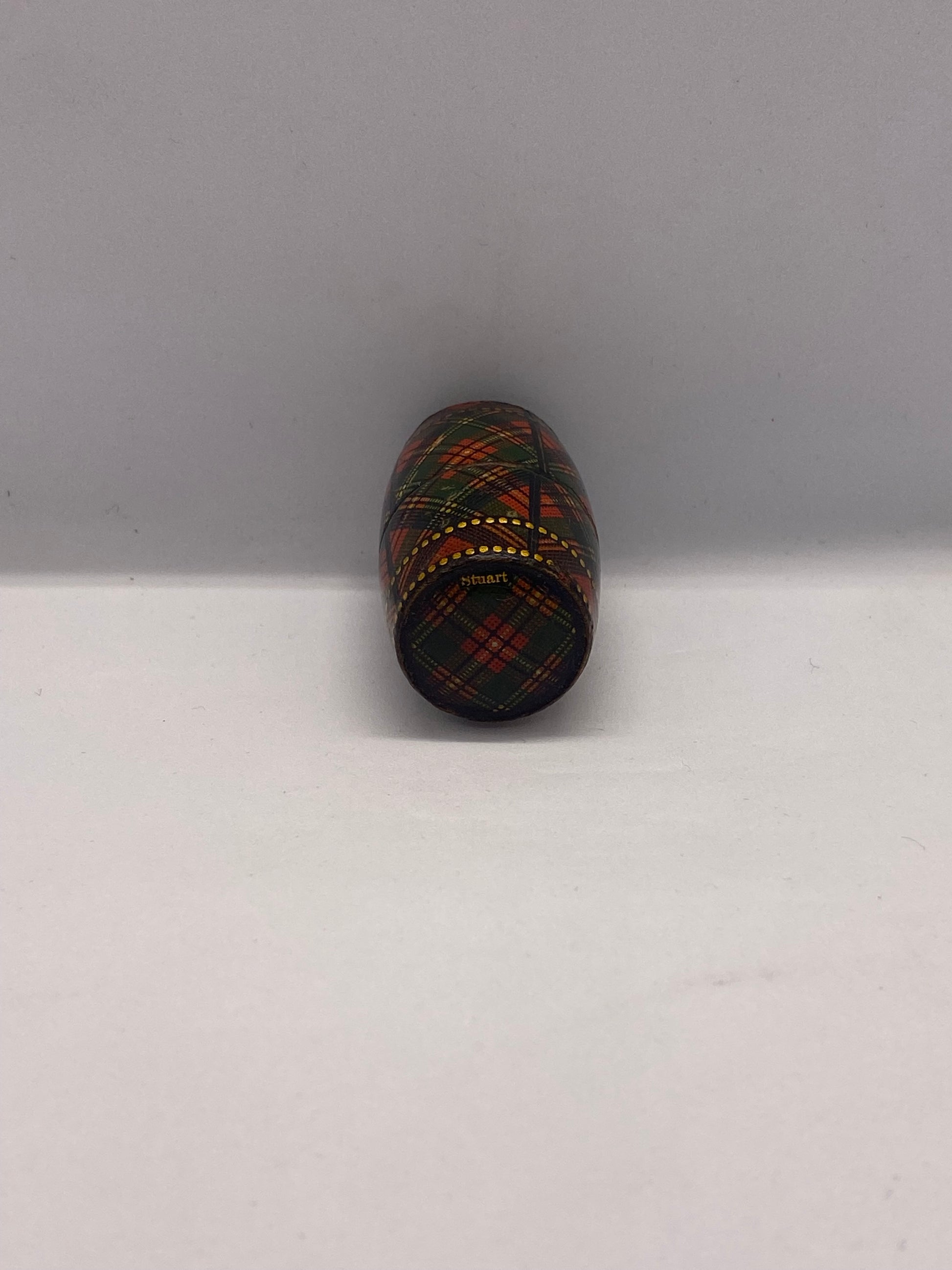 Precioso estuche de costura/portaagujas de tartán victoriano, patrón Stuart