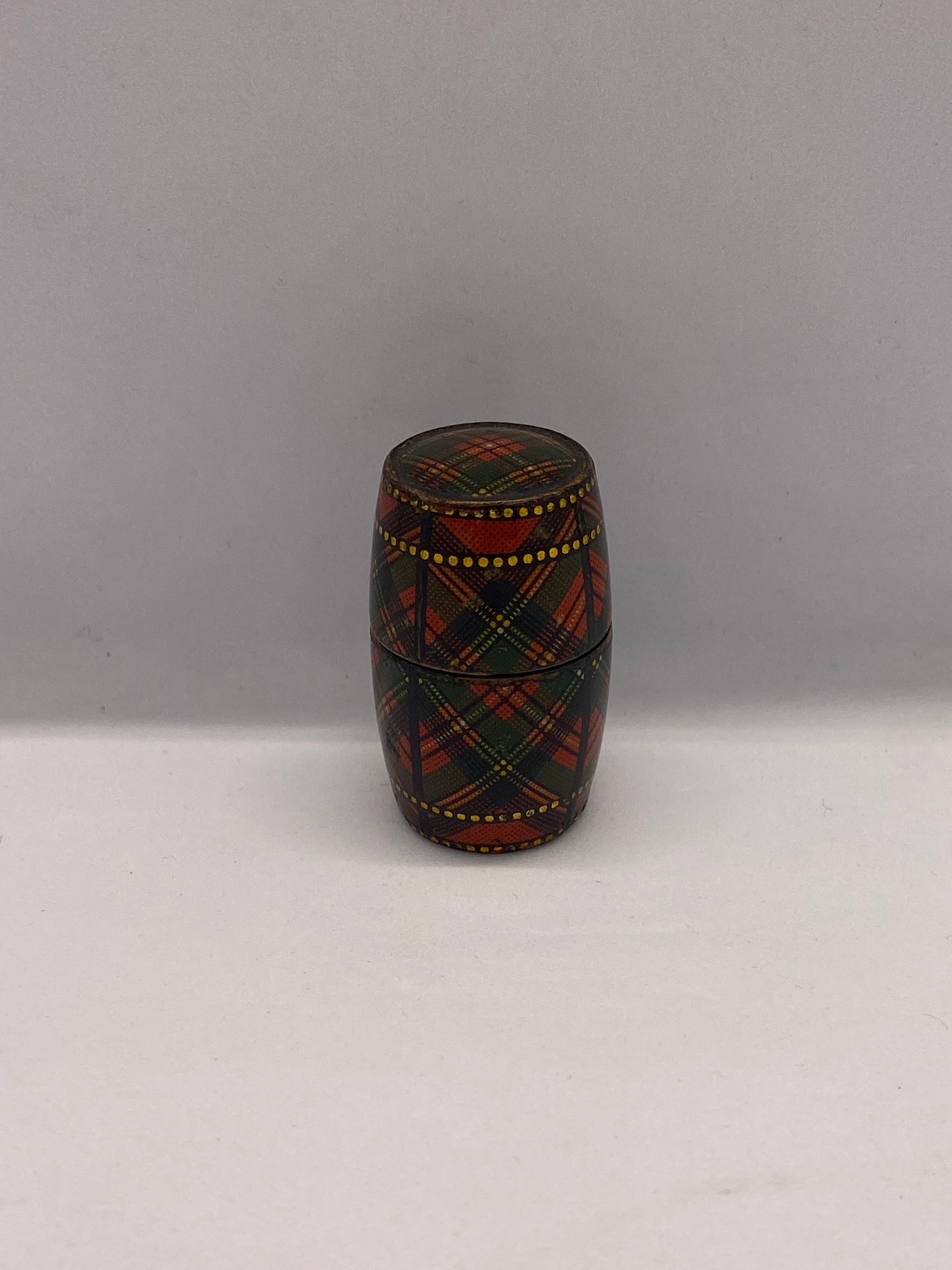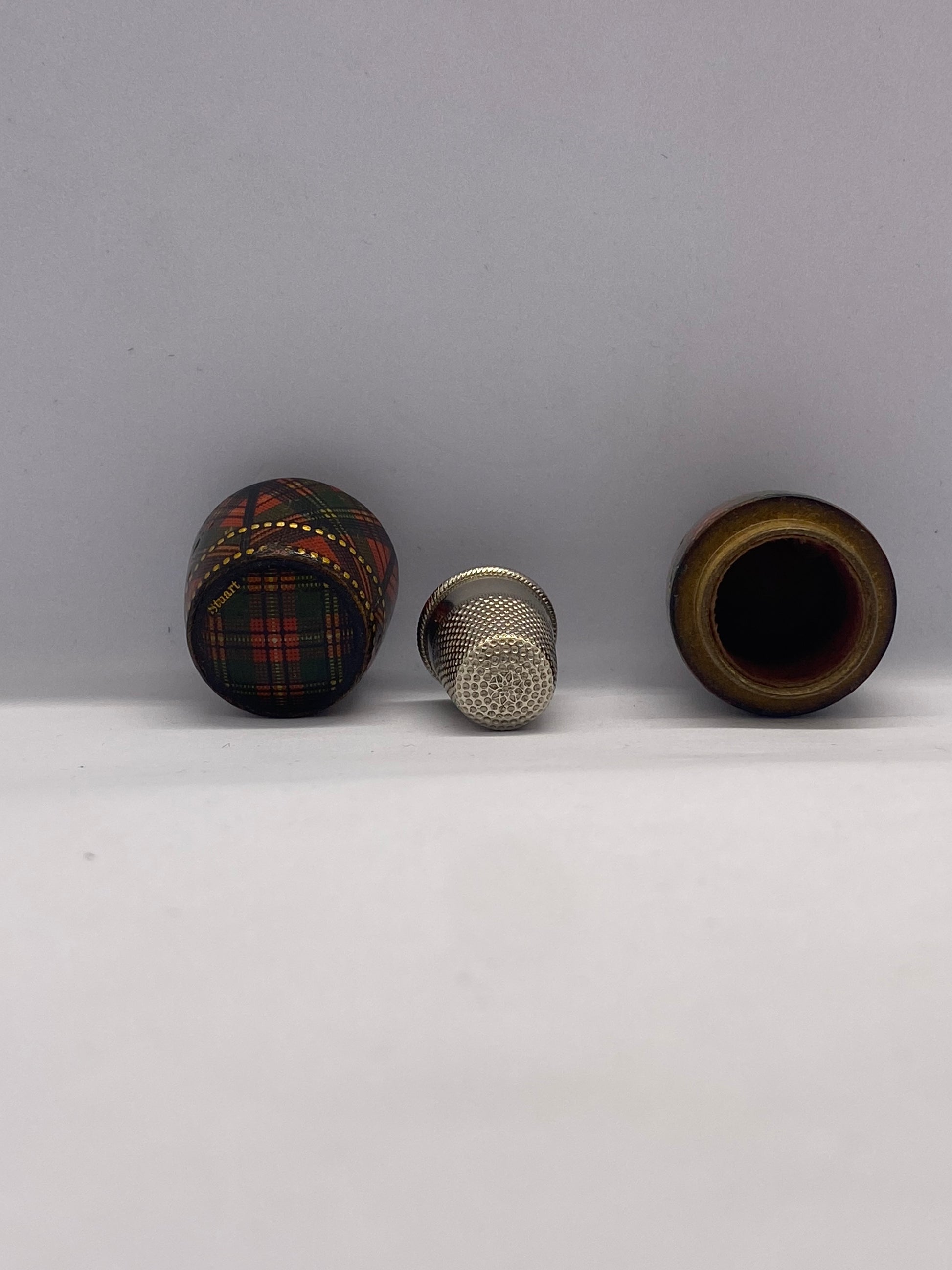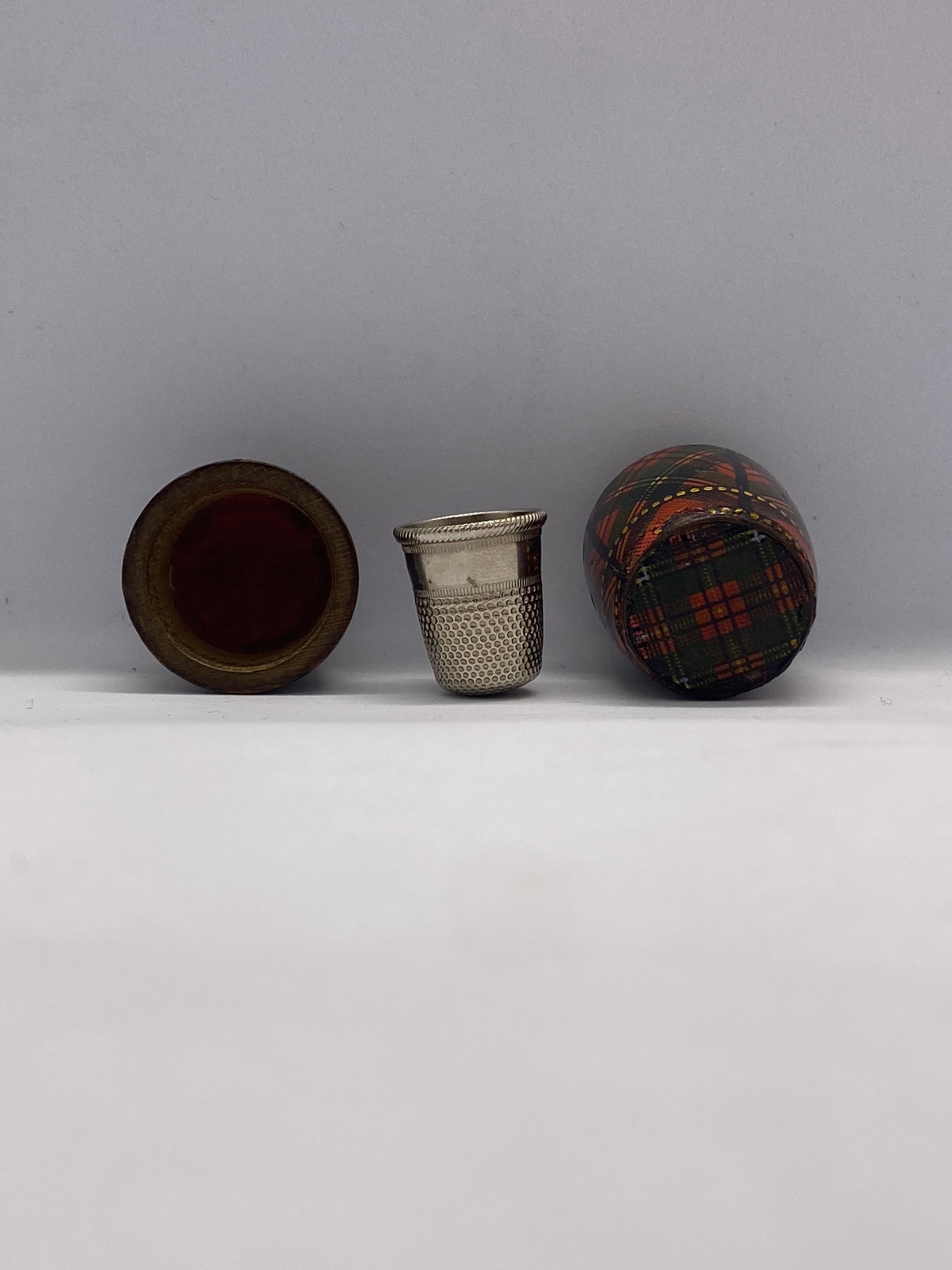 Este estuche de tartán de finales del siglo XIX es una pieza bastante especial. Si bien el tartán es un objeto muy codiciado, y los artículos de costura en particular, este es un ejemplo encantador con un dedal en la base.