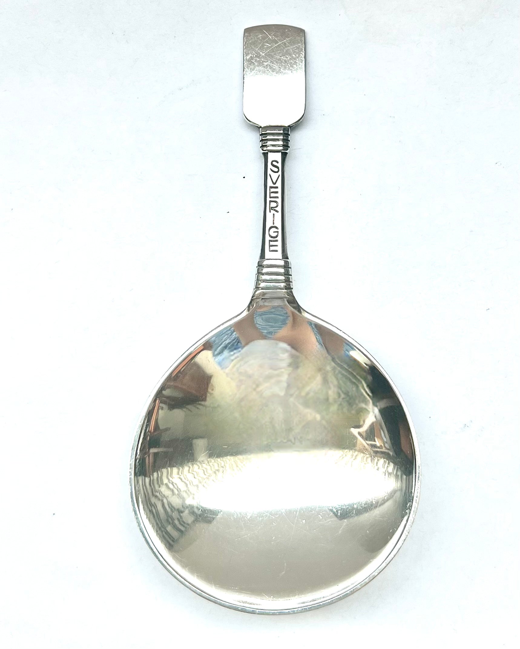 La platería de Hallberg sigue siendo muy coleccionable, y este es un excelente ejemplo de su trabajo, elegantemente elaborado con la palabra Sverige (plata) grabada en el tallo.