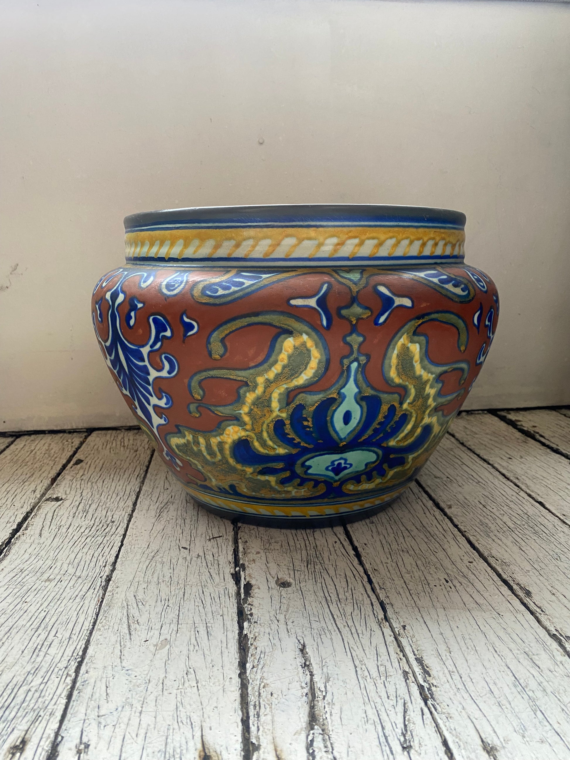 Esta antigua jardinera Art Decó de Gouda es uno de los mejores ejemplos que hemos visto de esta reconocida fábrica de cerámica artística holandesa.