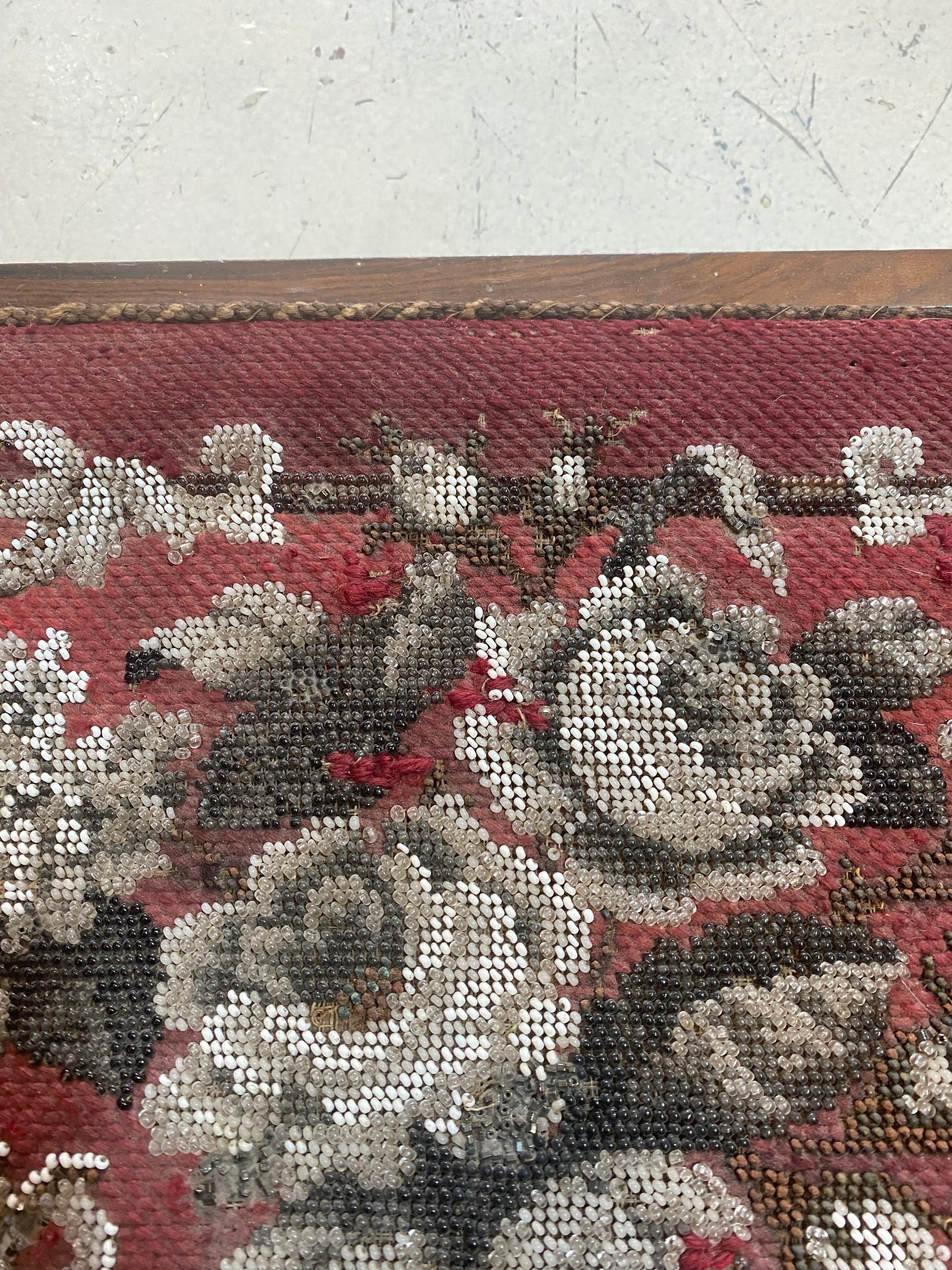Reposapiés antiguo con cuentas y rosas rojas y grises, inglés, taburete para arrodillarse, victoriano, circa 1860